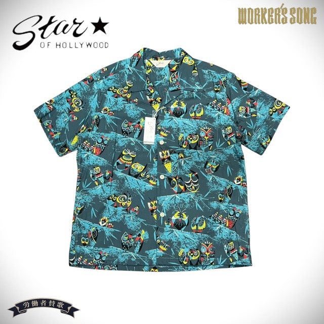 スター オブ ハリウッド コットン オープンシャツ OWL フクロウ ミミズク アメカジ SH39494 125)ブルー