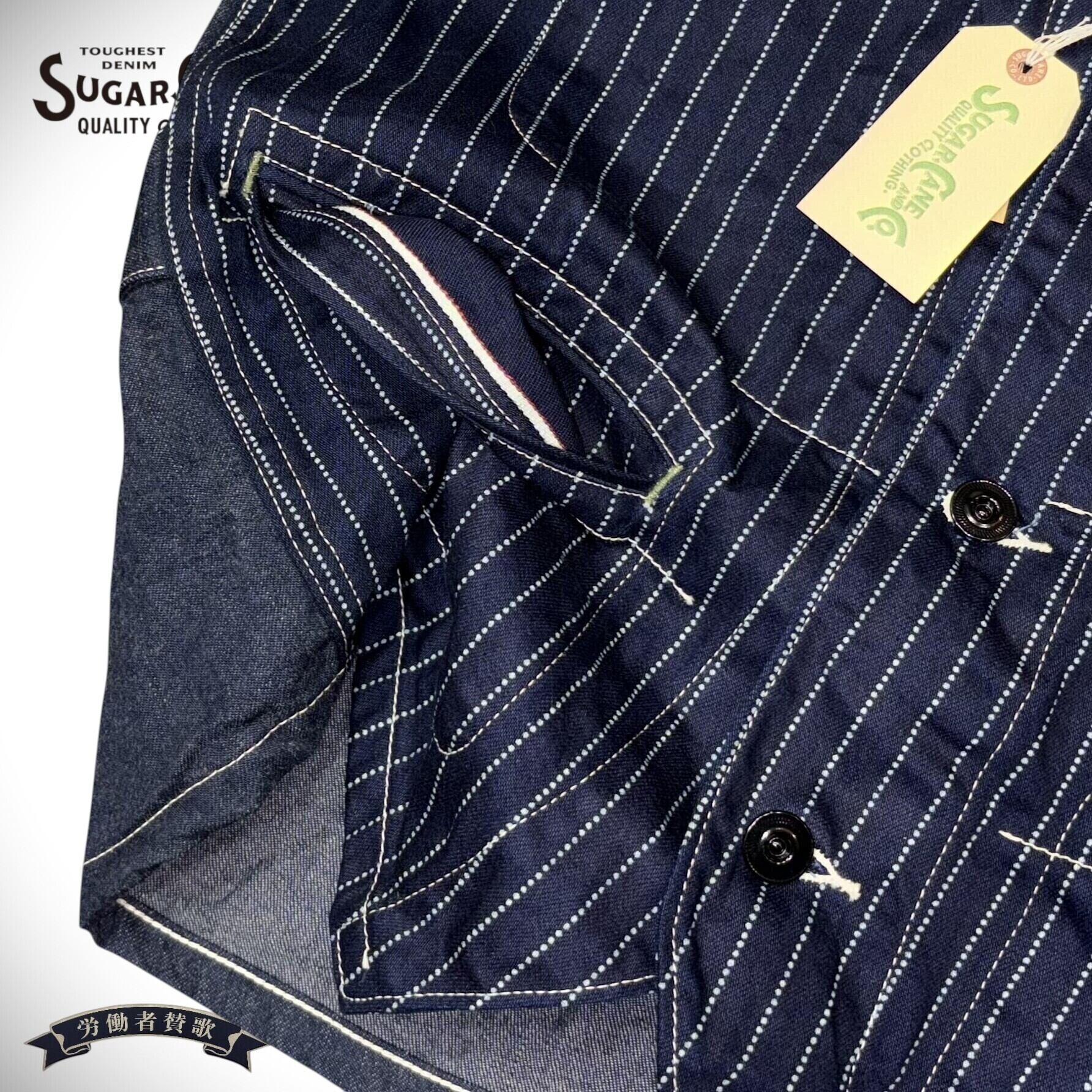 シュガーケーン ウォバッシュストライプ ワークベスト アメカジ SC12654 421A)ネイビー