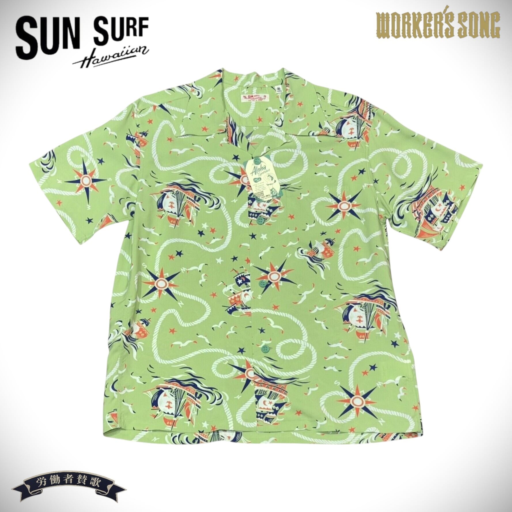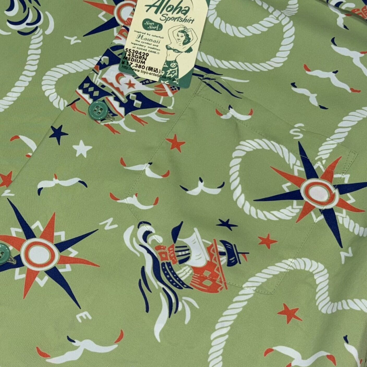 サンサーフ アロハシャツ エイジ オブ ディスカバリー アメカジ ハワイアン SS39429 145)グリーン