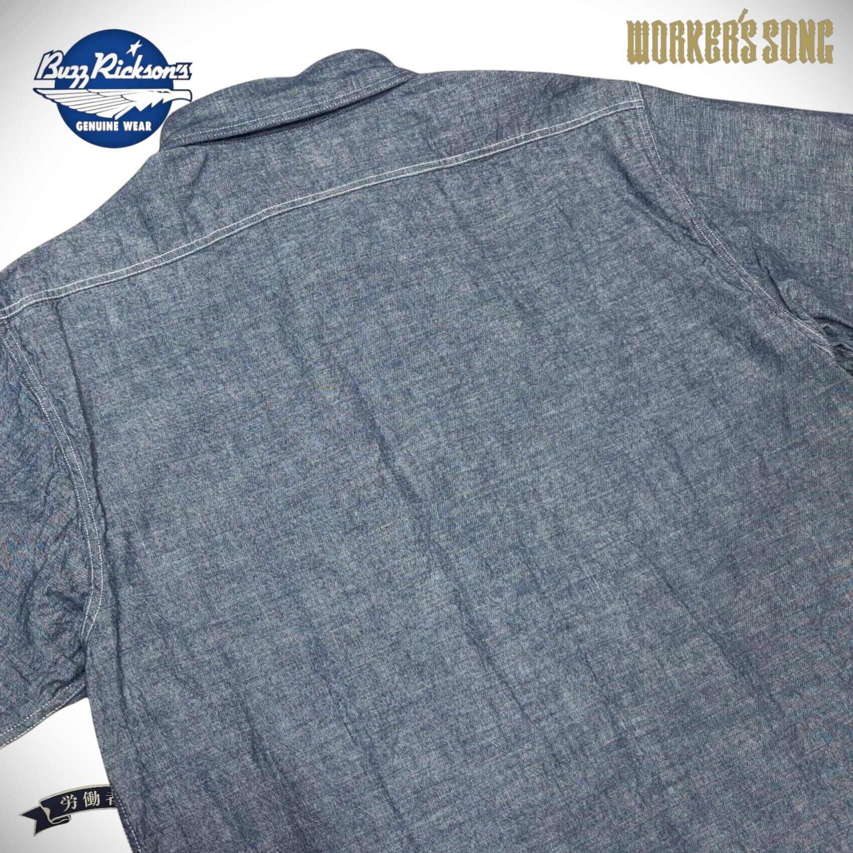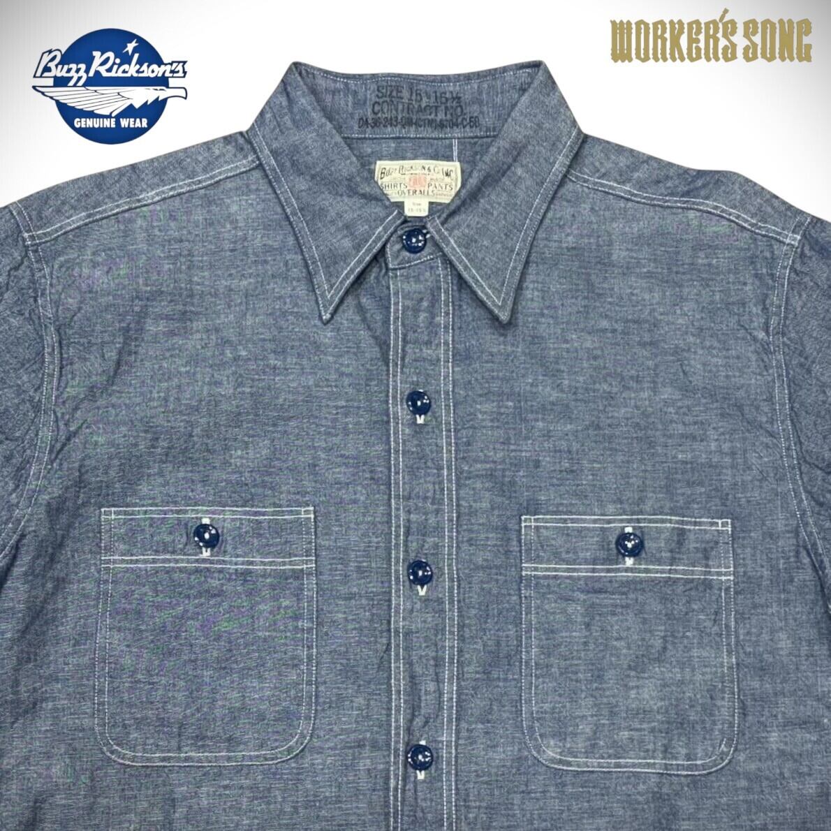 バズリクソンズ ブルー シャンブレー S/S ワークシャツ アメカジ ミリタリー 軍物 BR35856 125)ブルー