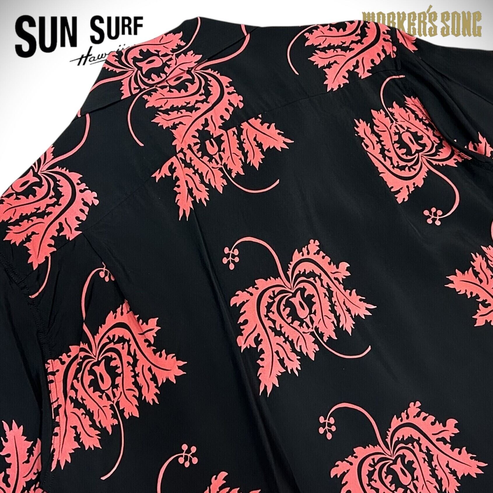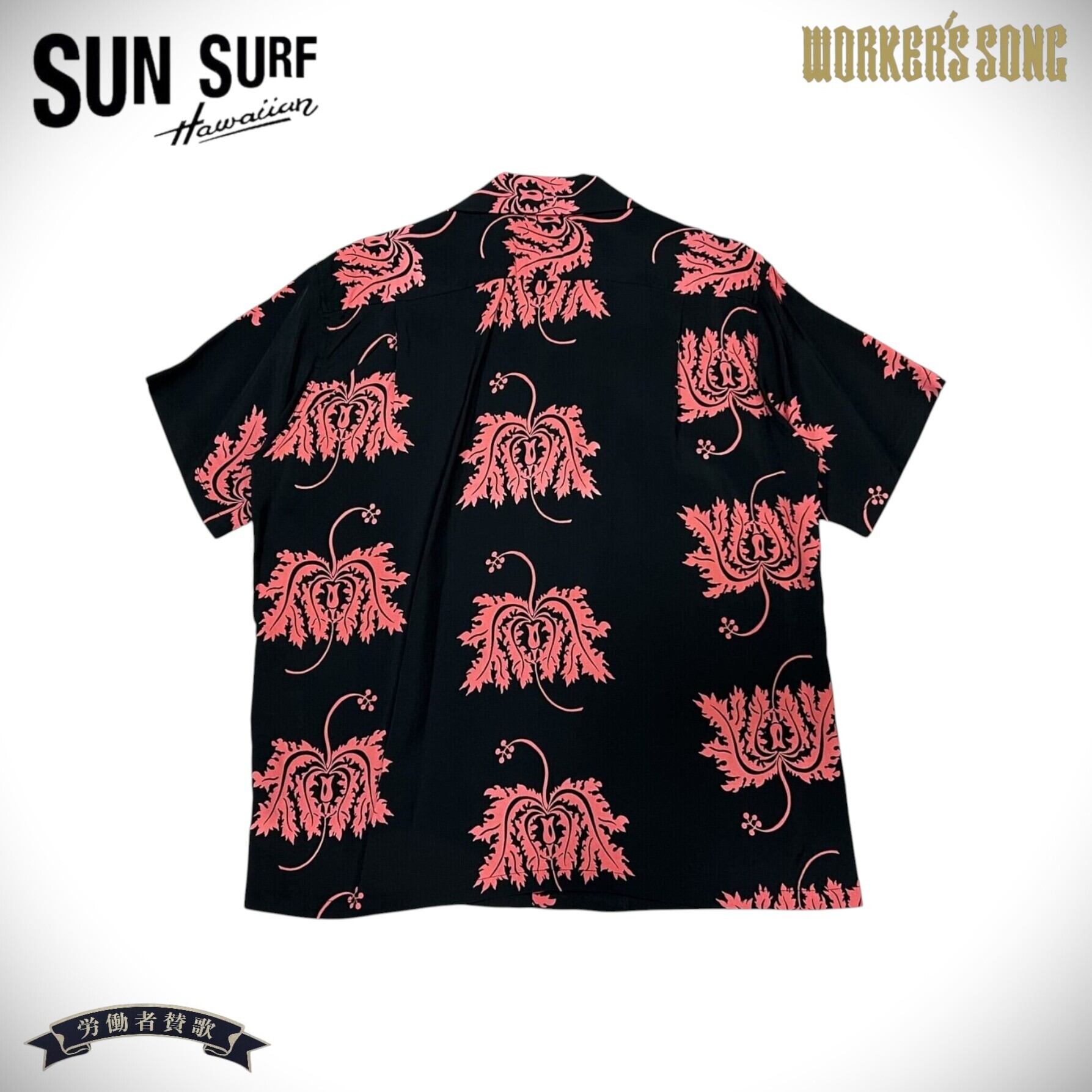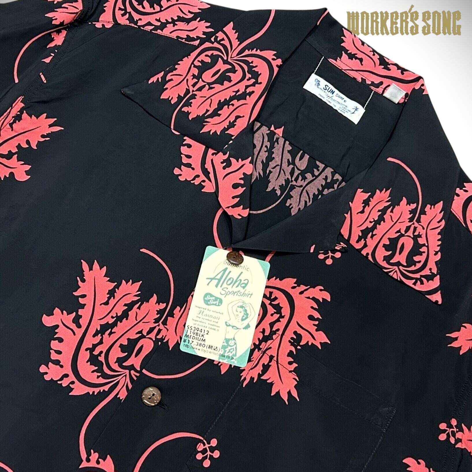 サンサーフ アロハシャツ コーラル ハイビスカス アメカジ ハワイアン SS39412 119)ブラック Mサイズ