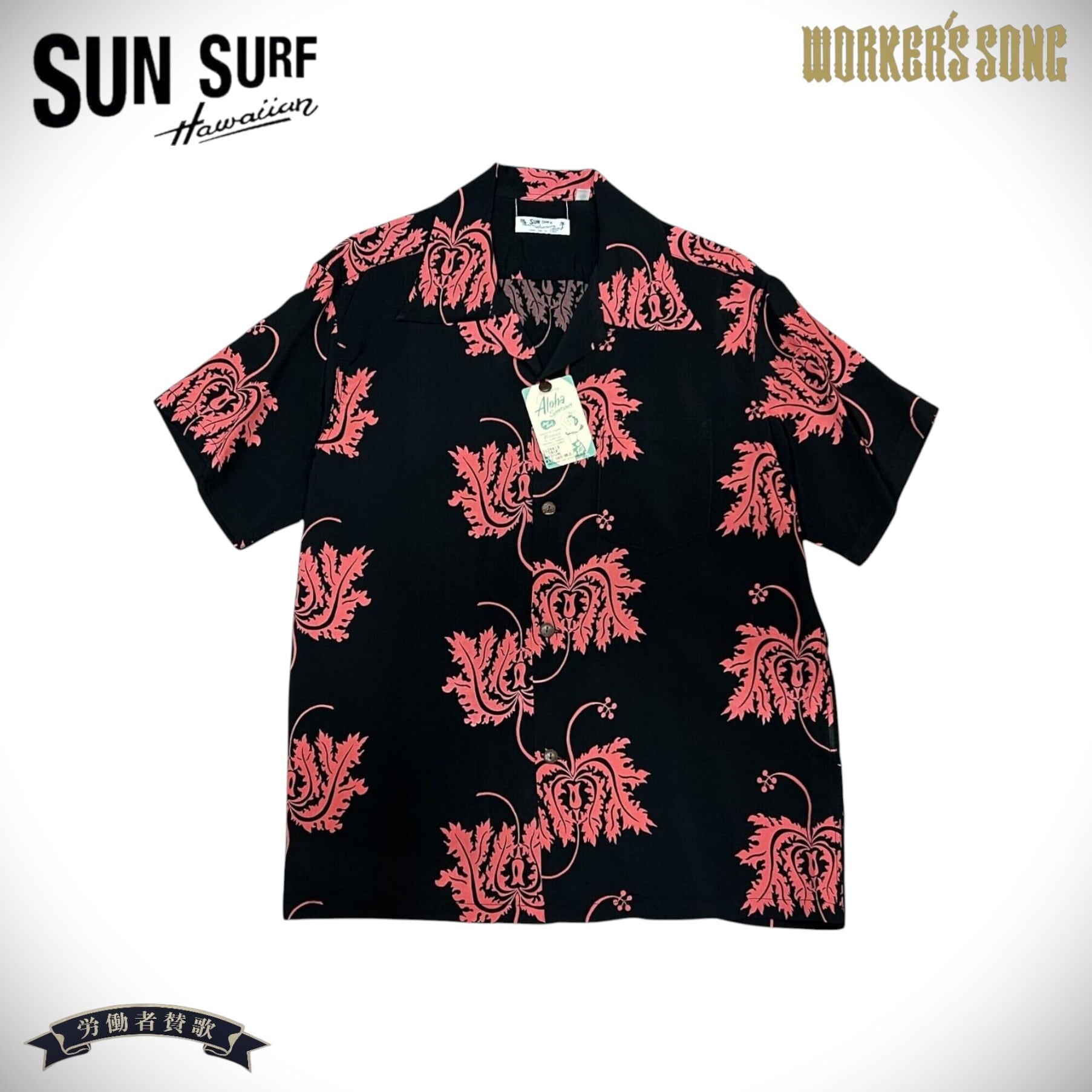 SUN SURF(サンサーフ)はアロハシャツの黄金期とされる1930年代から1950年代にかけて作られた、いわゆる「ヴィンテージ」と呼ばれるレーヨン製アロハシャツを中心に展開するブランド。1970年代に誕生し、創業から資料として収集し続けた数千着にも及ぶヴィンテージのアロハシャツを分析。「アートを着る」と言ってもいいほどプリントのデザインが主役となるアロハシャツにおいて、最大の特徴である鮮やかな発色と深みのある色合いを表現するため、抜染(ばっせん)やオーバープリントといった当時の捺染手法を再現。いまや貴重で入手困難なヴィンテージアロハシャツの魅力をより多くの人々に楽しんでいただけるよう、サンサーフでは各部のディテールにこだわり、数多くの名作を現代に甦らせている。