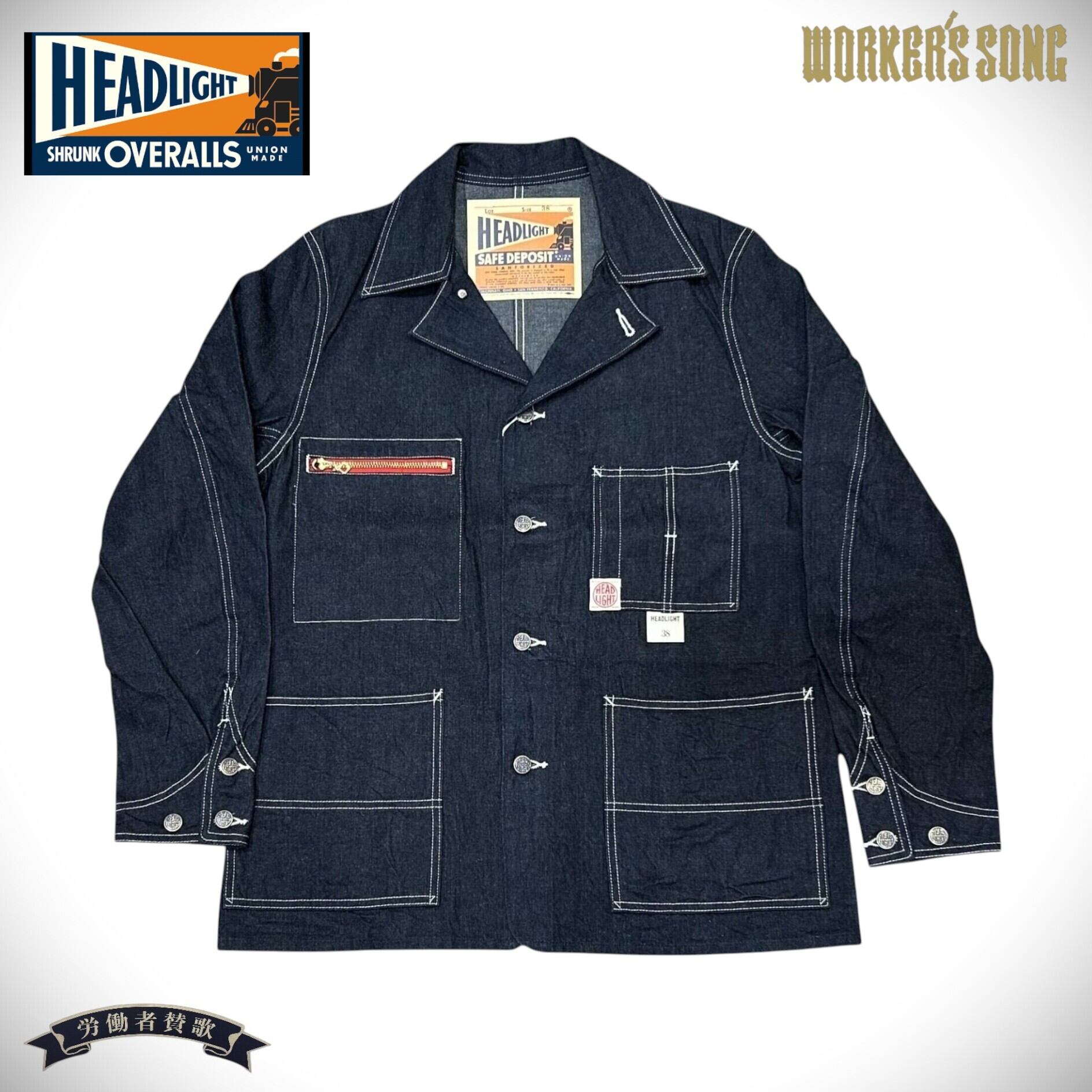 ヘッドライト 11oz.ブルー デニム ワークコート カバーオール アメカジ 鉄道員 HD15711 421)ネイビー