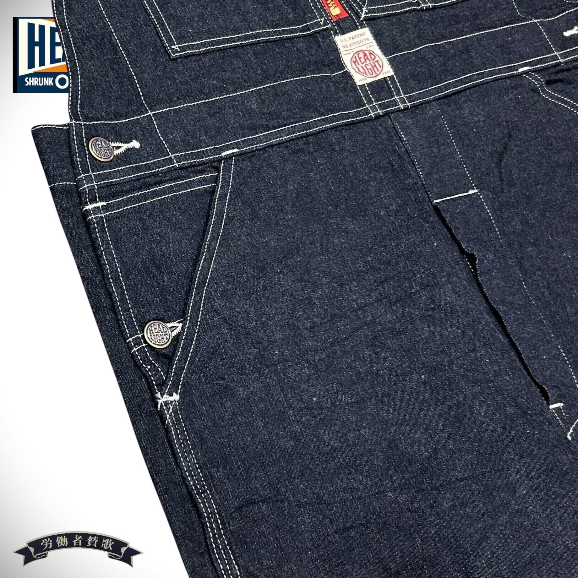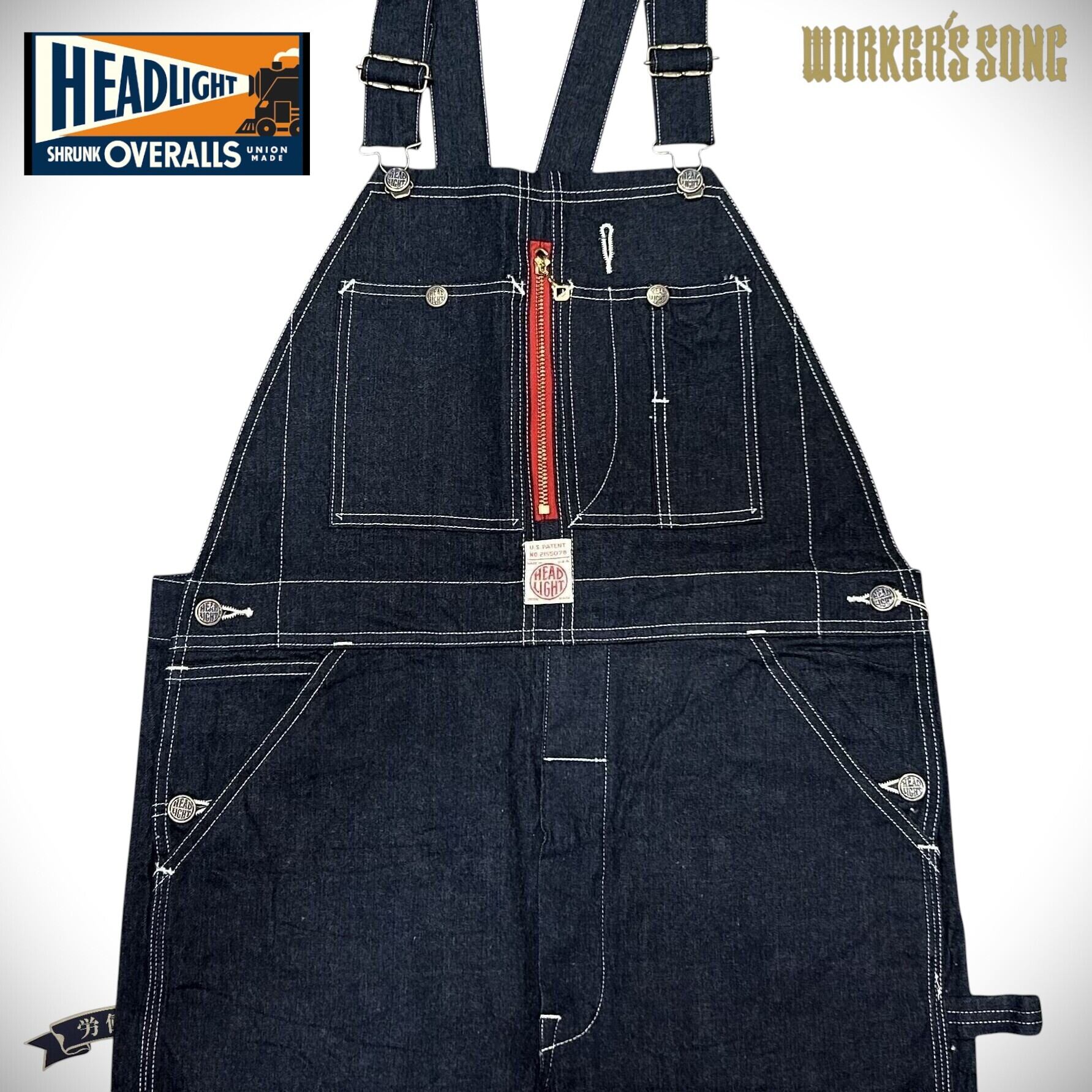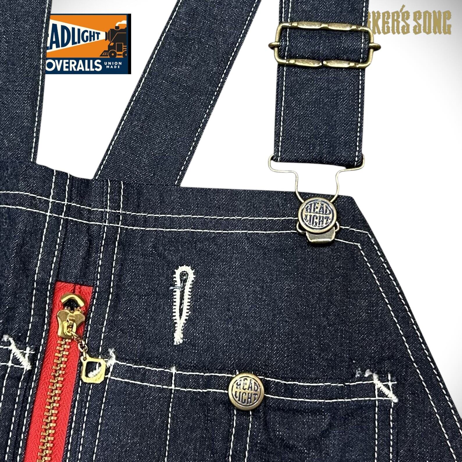 ヘッドライト 11oz.ブルー デニム ローバック オーバーオール アメカジ 鉄道員 HD42554 421)ネイビー