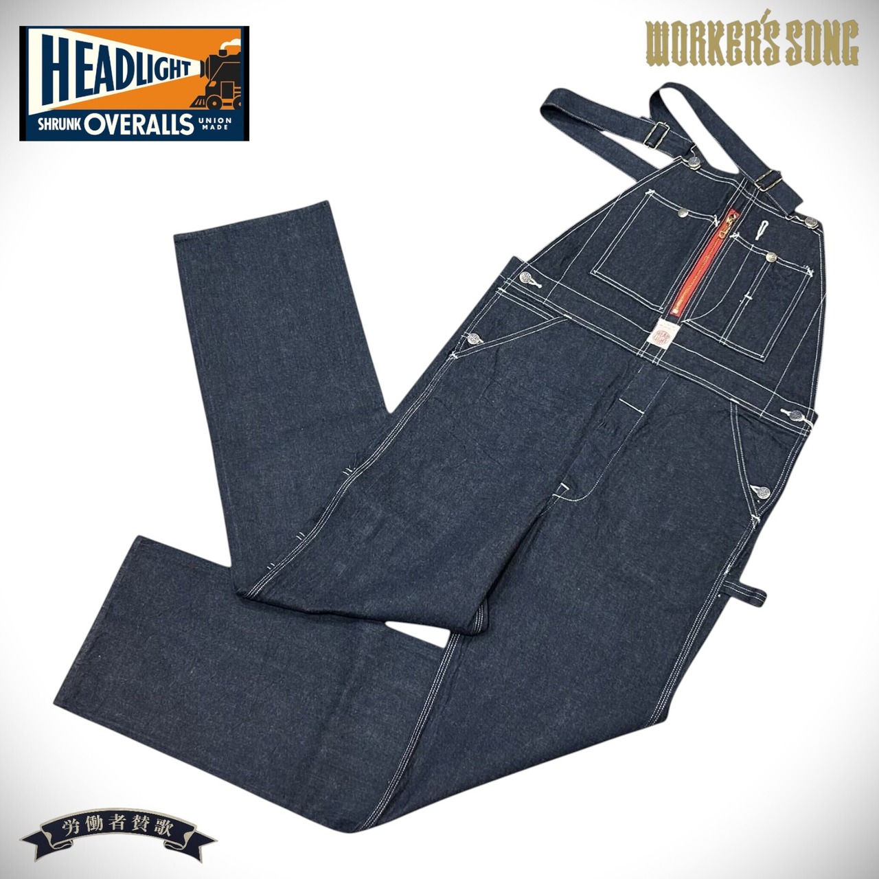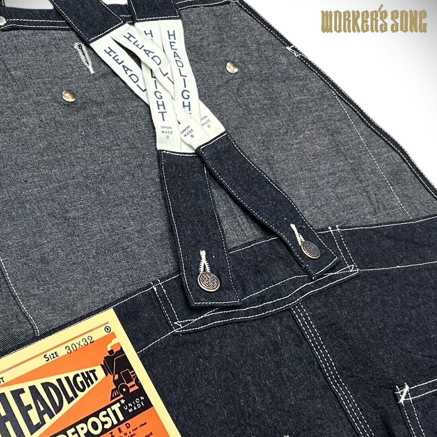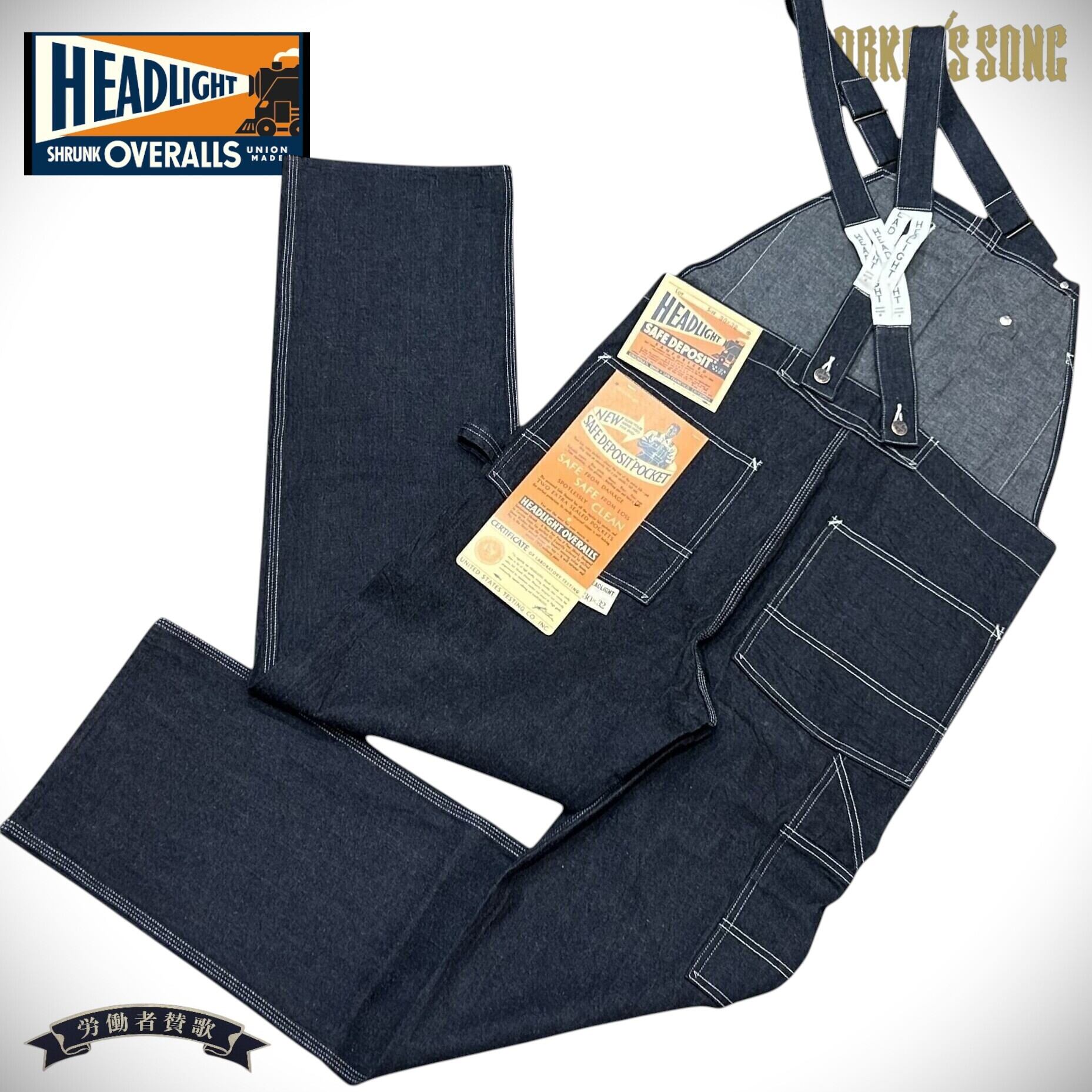 ヘッドライト 11oz.ブルー デニム ローバック オーバーオール アメカジ 鉄道員 HD42554 421)ネイビー