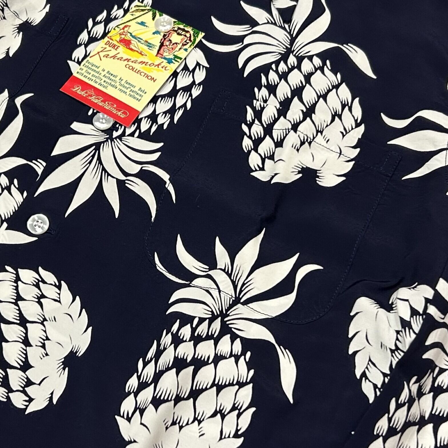 デューク カハナモク スペシャル アロハシャツ デュークス パイナップル アメカジ ハワイアン DK26793 128)ネイビー