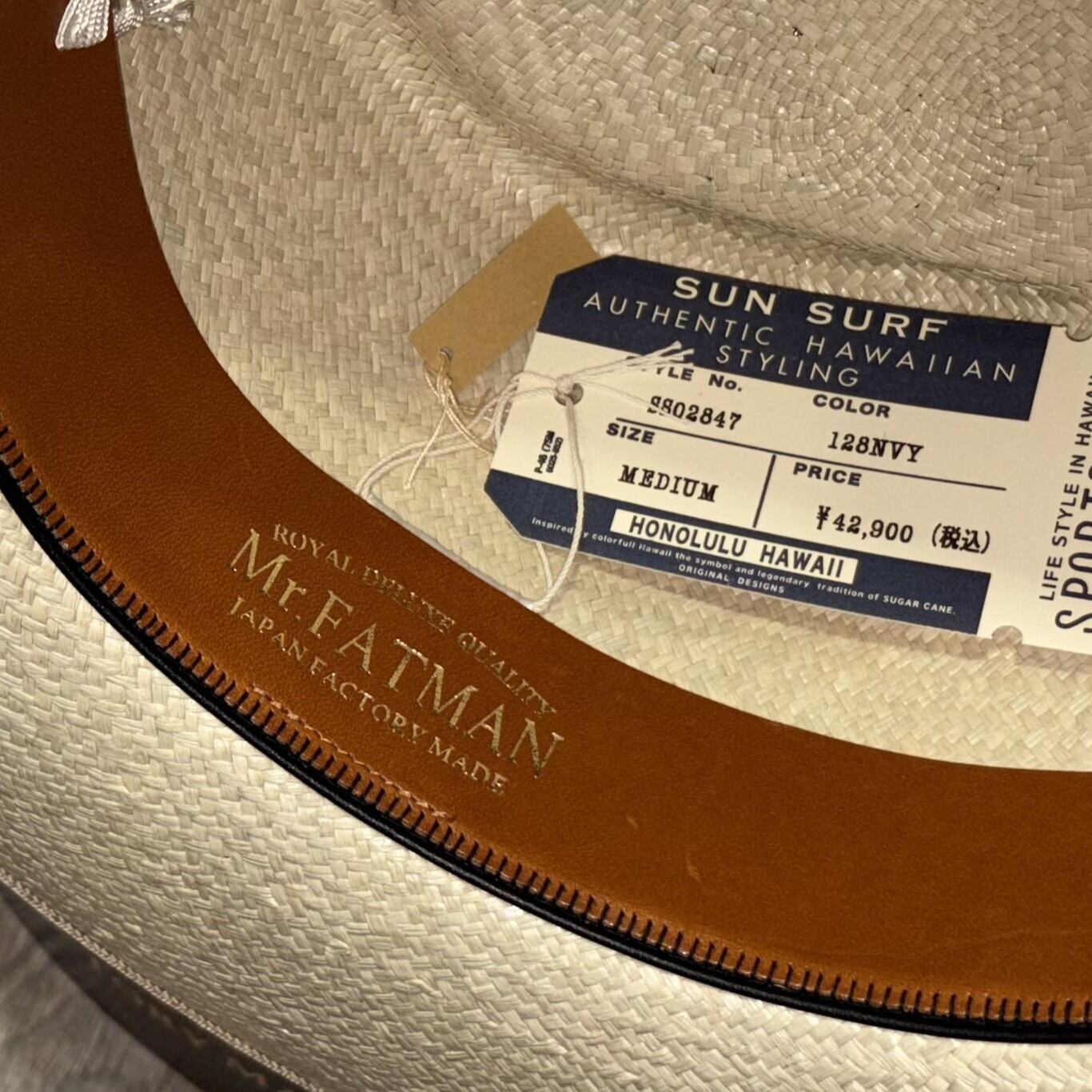 今回、SUNSURFがハットを手掛けるにあたり、製作を依頼したのがTHE FAT HATTER率いる「Mr.FATMAN」。ハットの黄金期である1950年代のカルチャーを軸に beyond ready made、既製品を超えるプロダクトを世に送り出しているブランドであり、50年代に造詣の深い者同士のコラボレーションであるからこそ、アロハシャツに最も似合うハットを表現できた。厳選した部材や成形の技術のみならず、革製のスベリの縫製に使われている「Iステッチ」など、両ブランドのこだわりが細部にまで現れている。