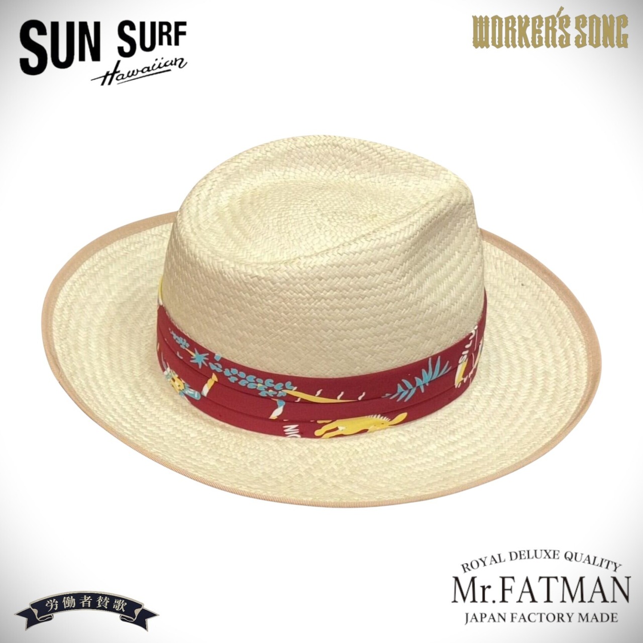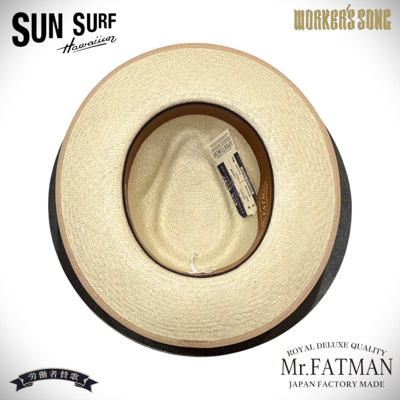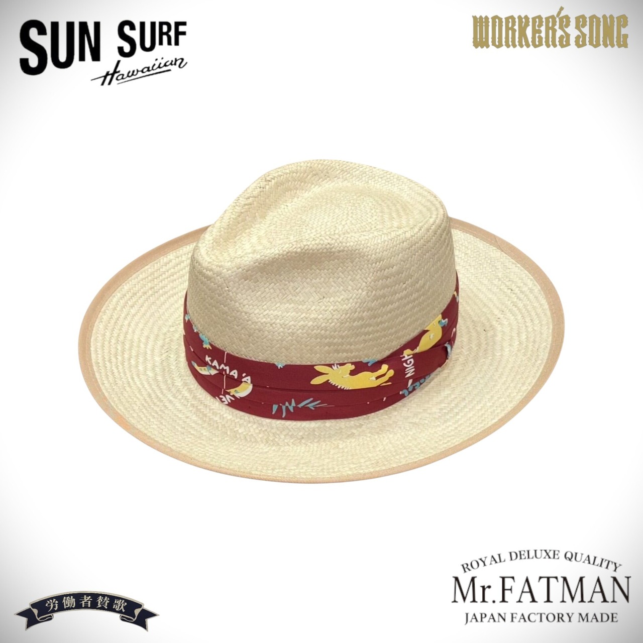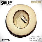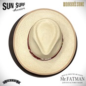 今回、SUNSURFがハットを手掛けるにあたり、製作を依頼したのがTHE FAT HATTER率いる「Mr.FATMAN」。ハットの黄金期である1950年代のカルチャーを軸に beyond ready made、既製品を超えるプロダクトを世に送り出しているブランドであり、50年代に造詣の深い者同士のコラボレーションであるからこそ、アロハシャツに最も似合うハットを表現できた。厳選した部材や成形の技術のみならず、革製のスベリの縫製に使われている「Iステッチ」など、両ブランドのこだわりが細部にまで現れている。
