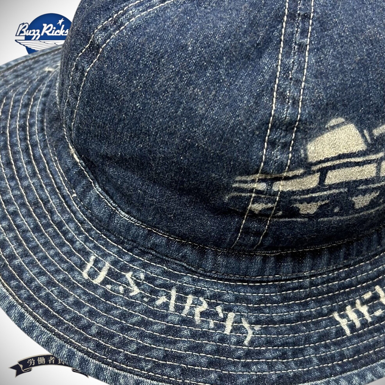 バズリクソンズ デニム ハット ヴィンテージウォッシュ ステンシル ミリタリー アメカジ 軍物 帽子 BR02850 429)ネイビー