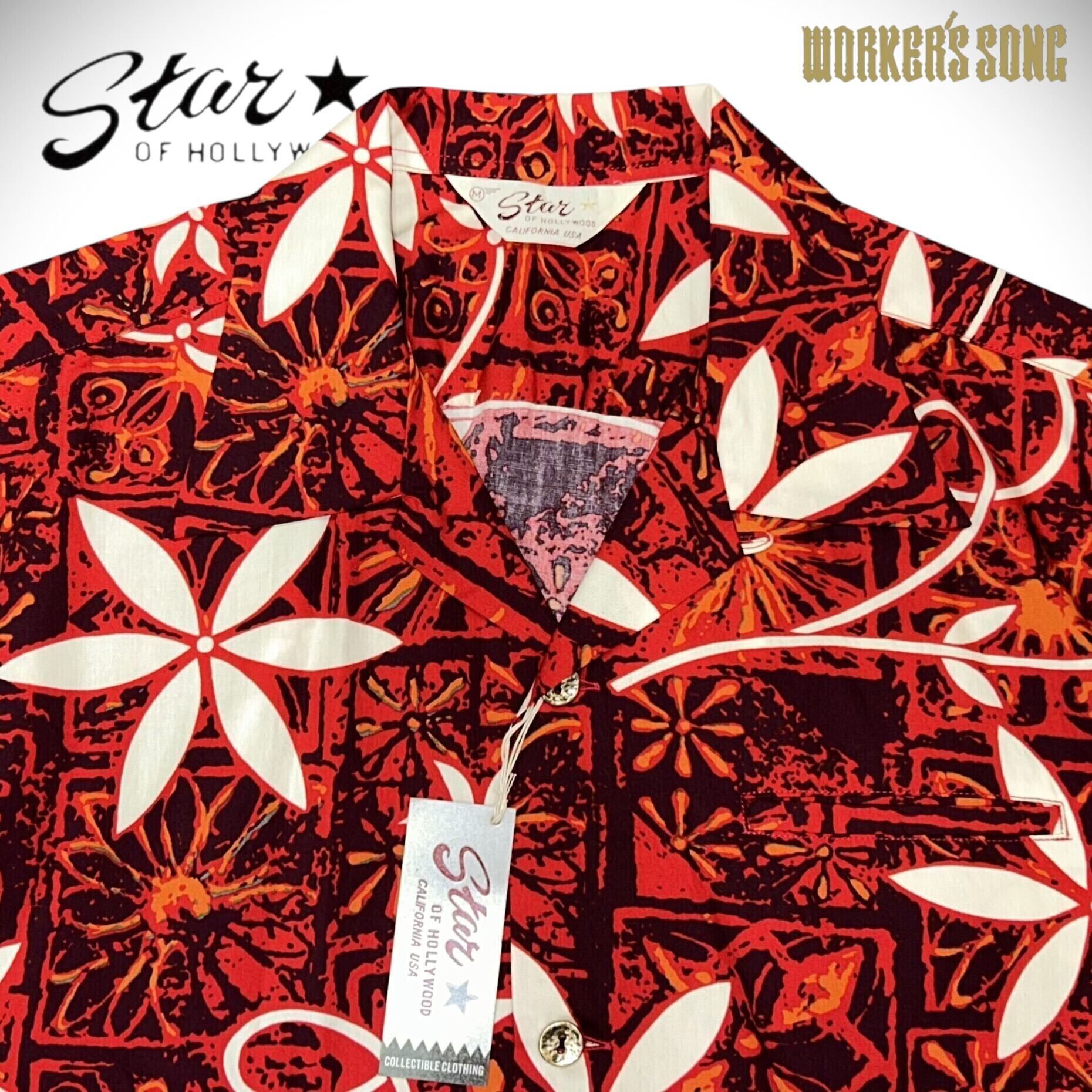 スター オブ ハリウッド コットン オープンシャツ ブルーハワイ エルヴィス アメカジ ハワイアン SH39493 165)レッド