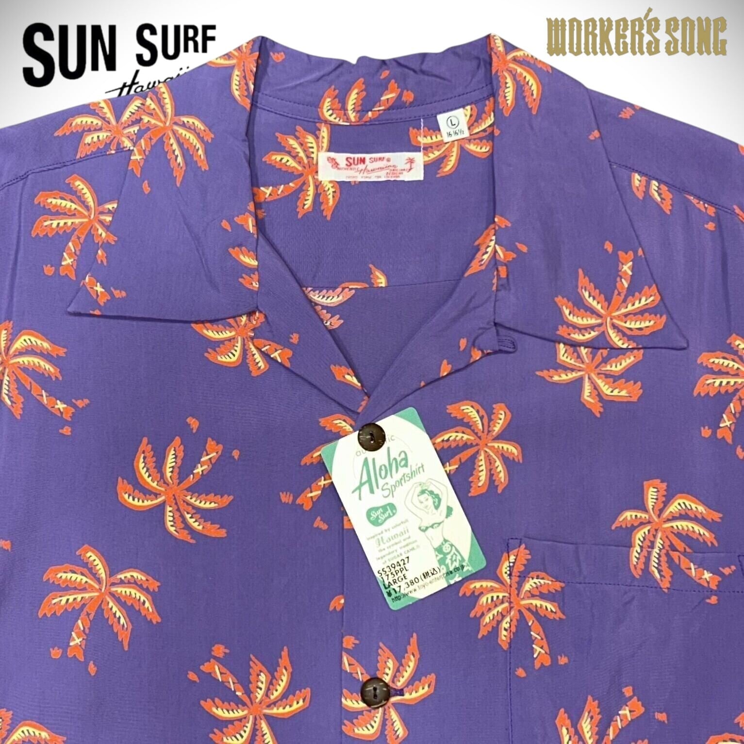 サンサーフ アロハシャツ 散らばった パームツリー アメカジ ハワイアン SS39427 175)パープル
