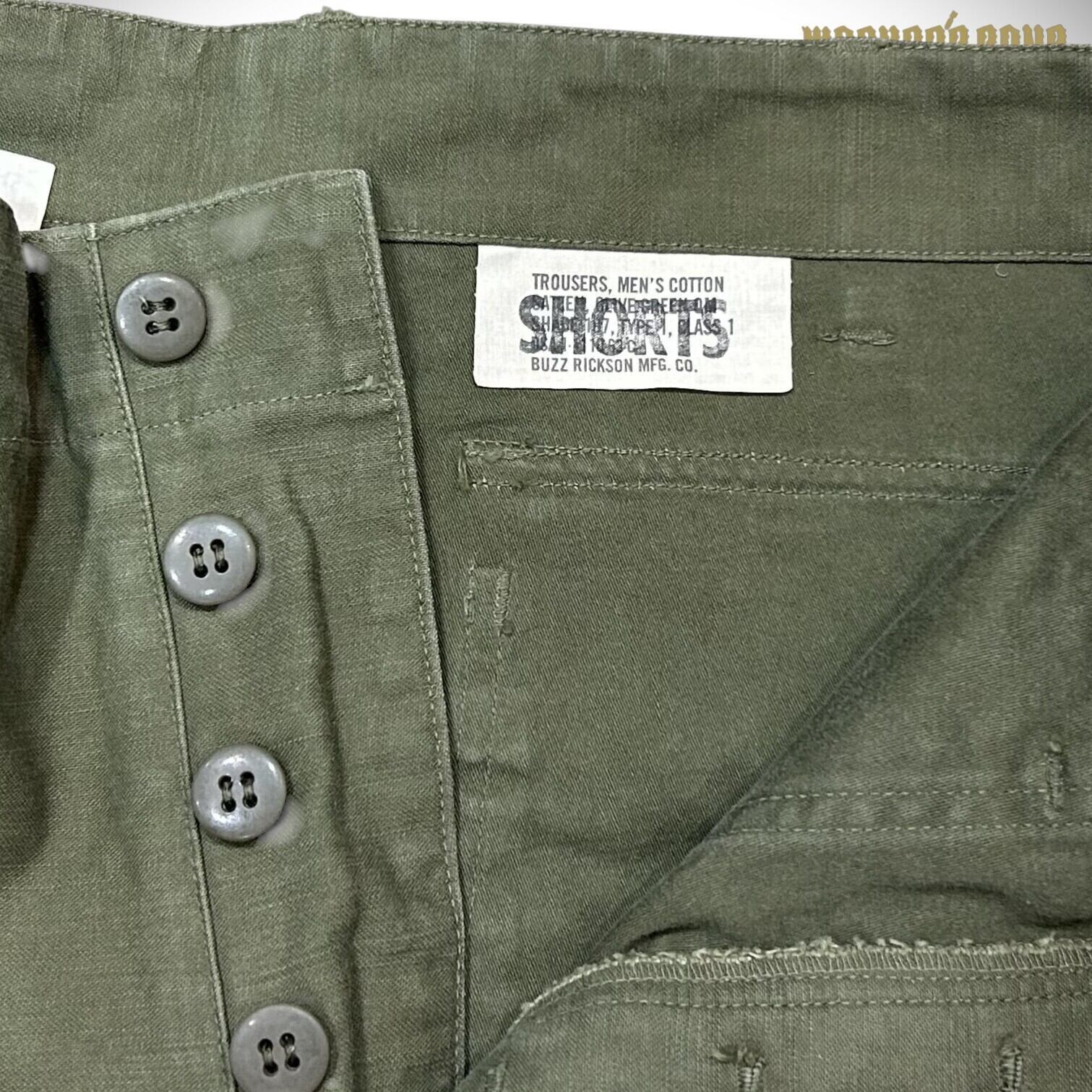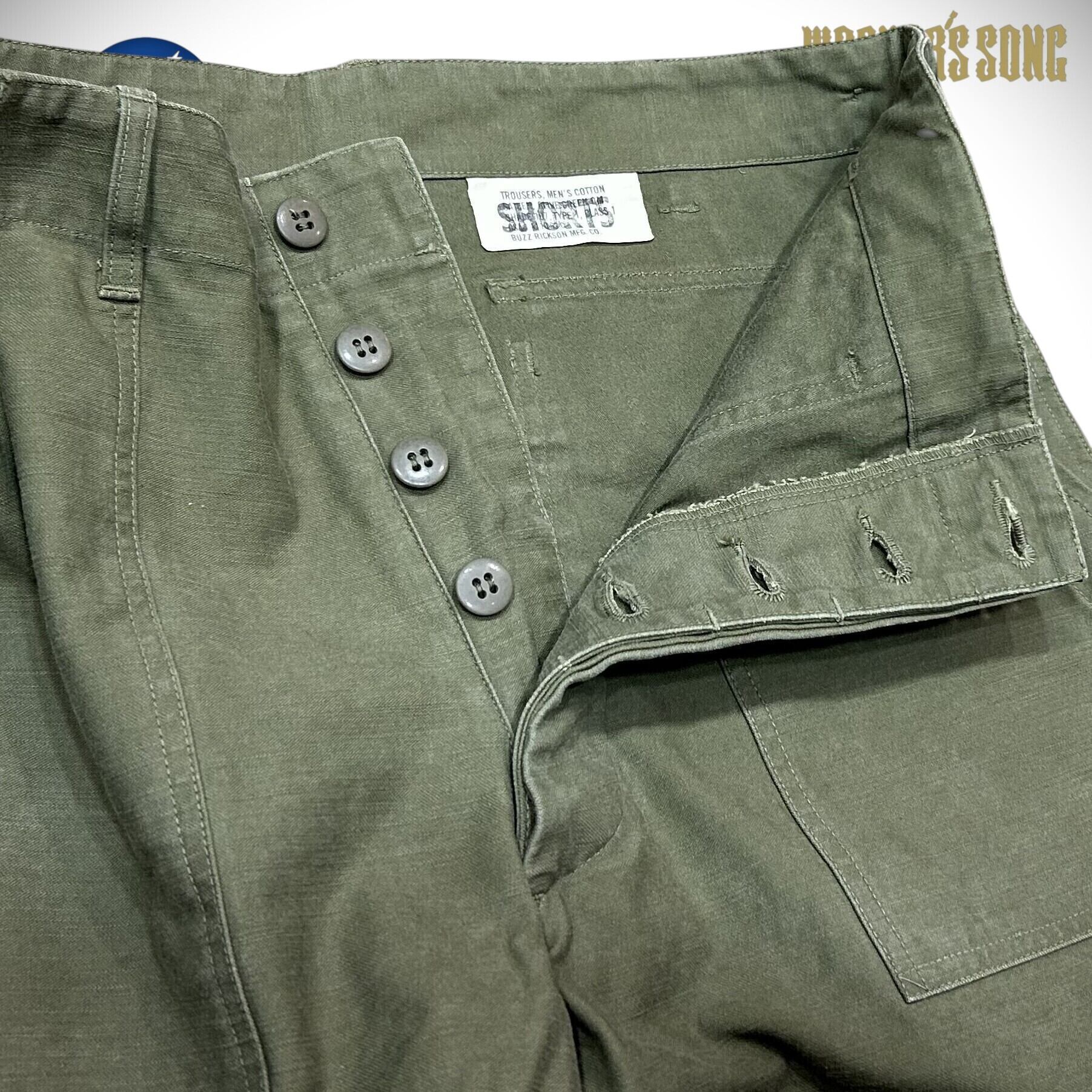 BR51735 / TROUSERS, MEN'S, COTTON SATEEN OLIVE GREEN QM SHADE 107, TYPE Ⅰ, CLASS SHORTS