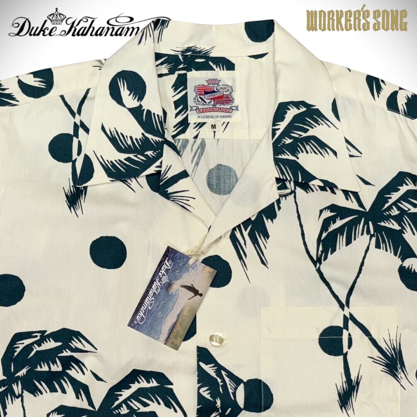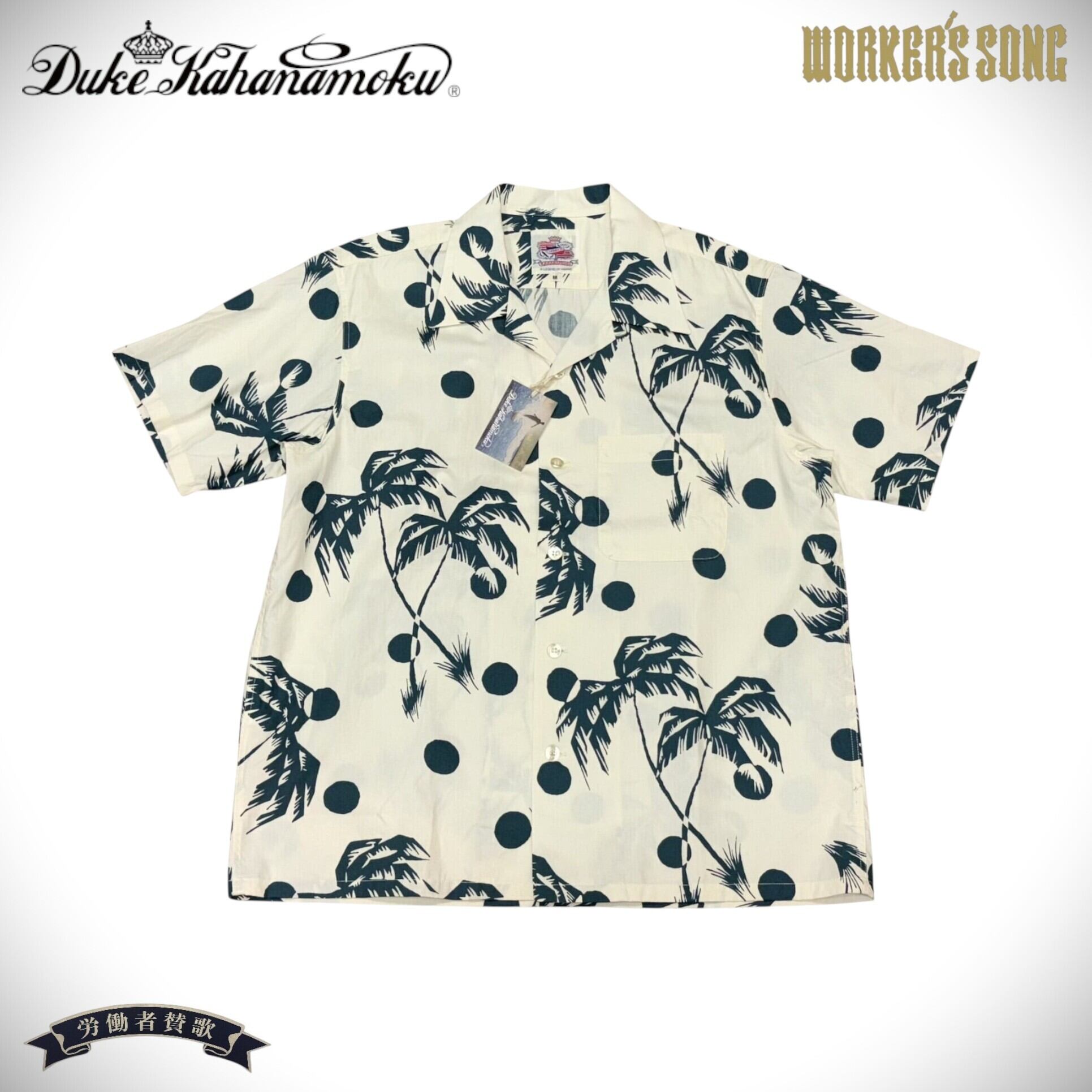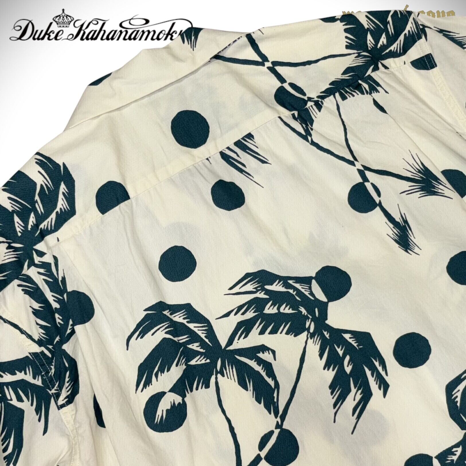 デューク カハナモク コットン ハワイアンシャツ パームツリー ドット柄 アメカジ アロハ DK39451 150)クリーム