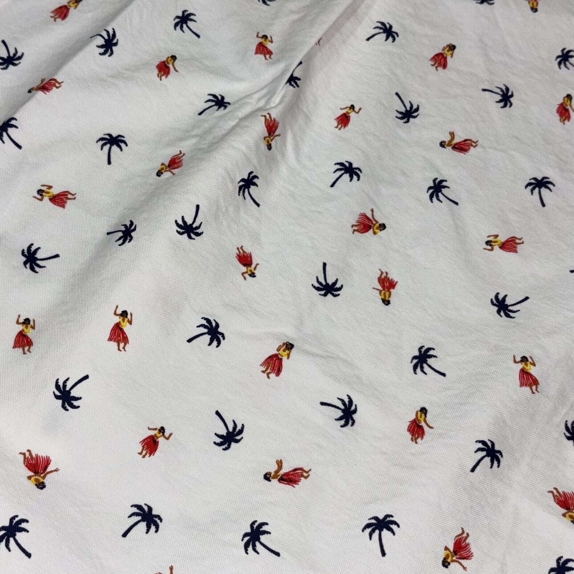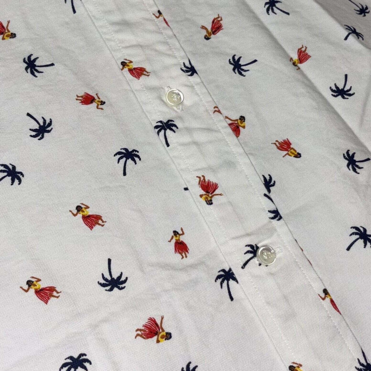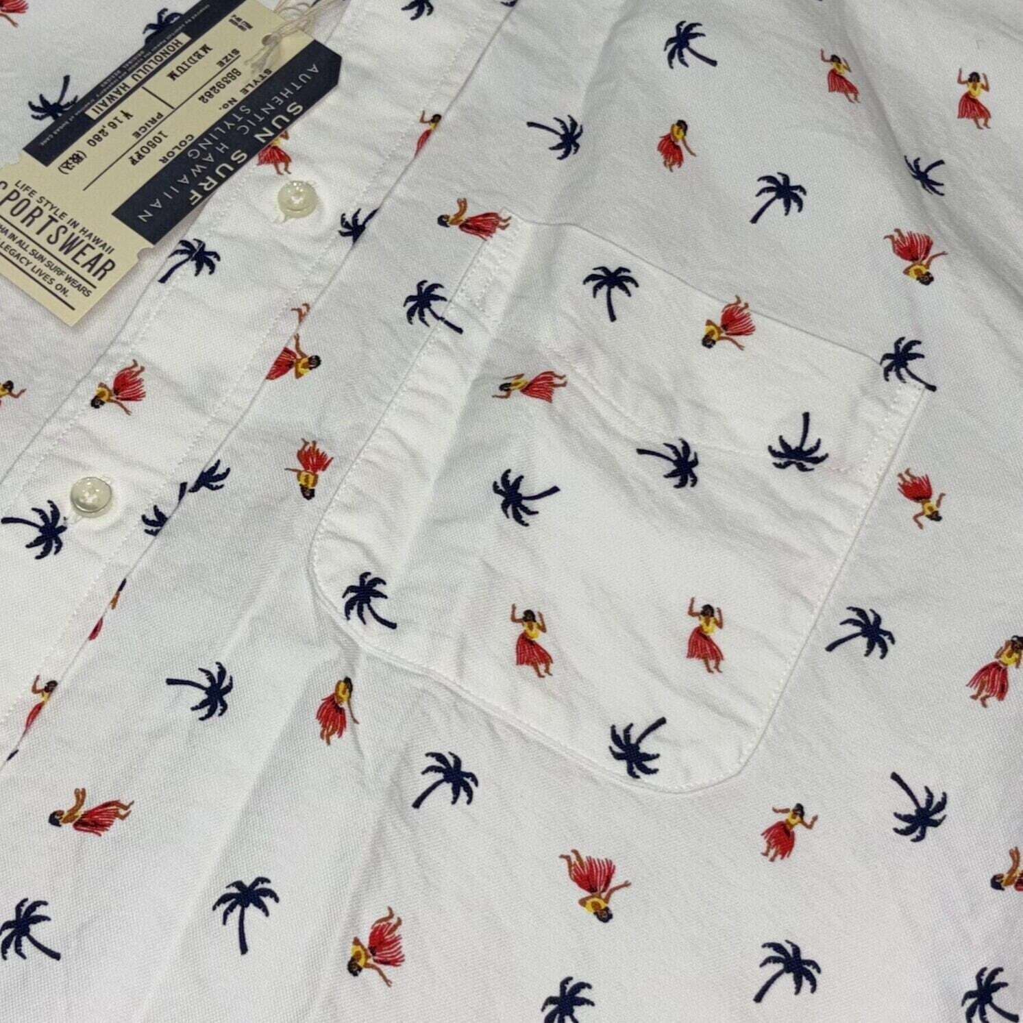 2本針巻き縫い仕様で裾のサイドにスリットの入った1960年代のボタンダウンシャツをベースに、楽園ハワイを象徴する「フラダンサー」と「パームツリー」をプリント。厚いシェル素材のトリプルホールボタンを使用するなど、ヴィンテージを意識したスタンダードな作りゆえ、流行に左右されず長年愛用できるシャツに仕上がっている。
