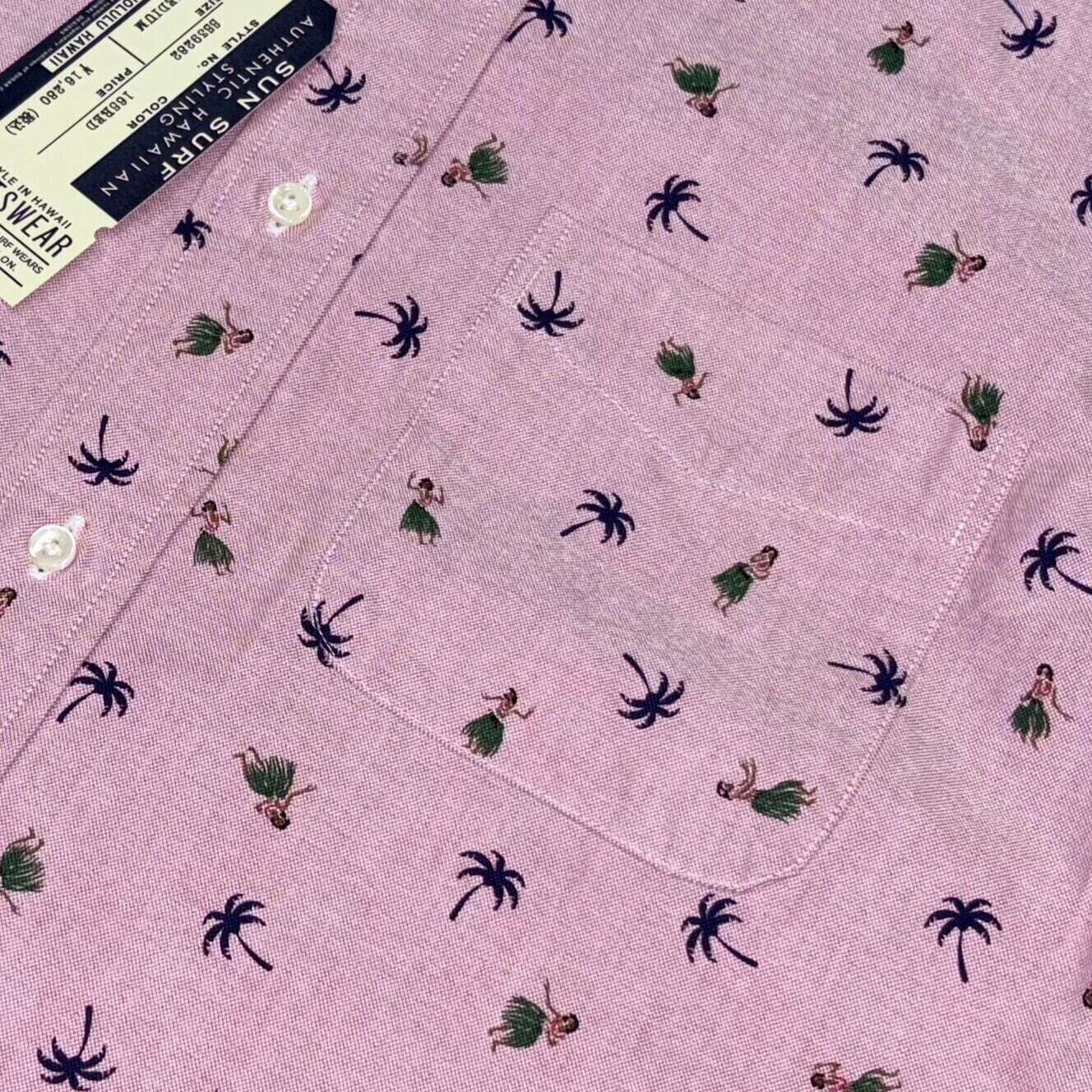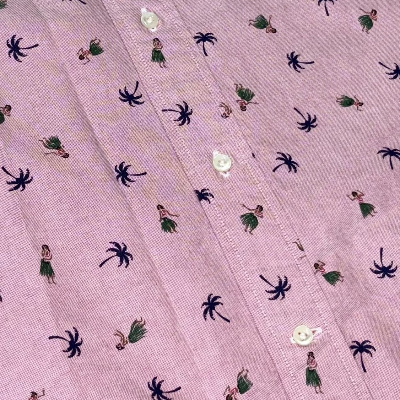 2本針巻き縫い仕様で裾のサイドにスリットの入った1960年代のボタンダウンシャツをベースに、楽園ハワイを象徴する「フラダンサー」と「パームツリー」をプリント。厚いシェル素材のトリプルホールボタンを使用するなど、ヴィンテージを意識したスタンダードな作りゆえ、流行に左右されず長年愛用できるシャツに仕上がっている。