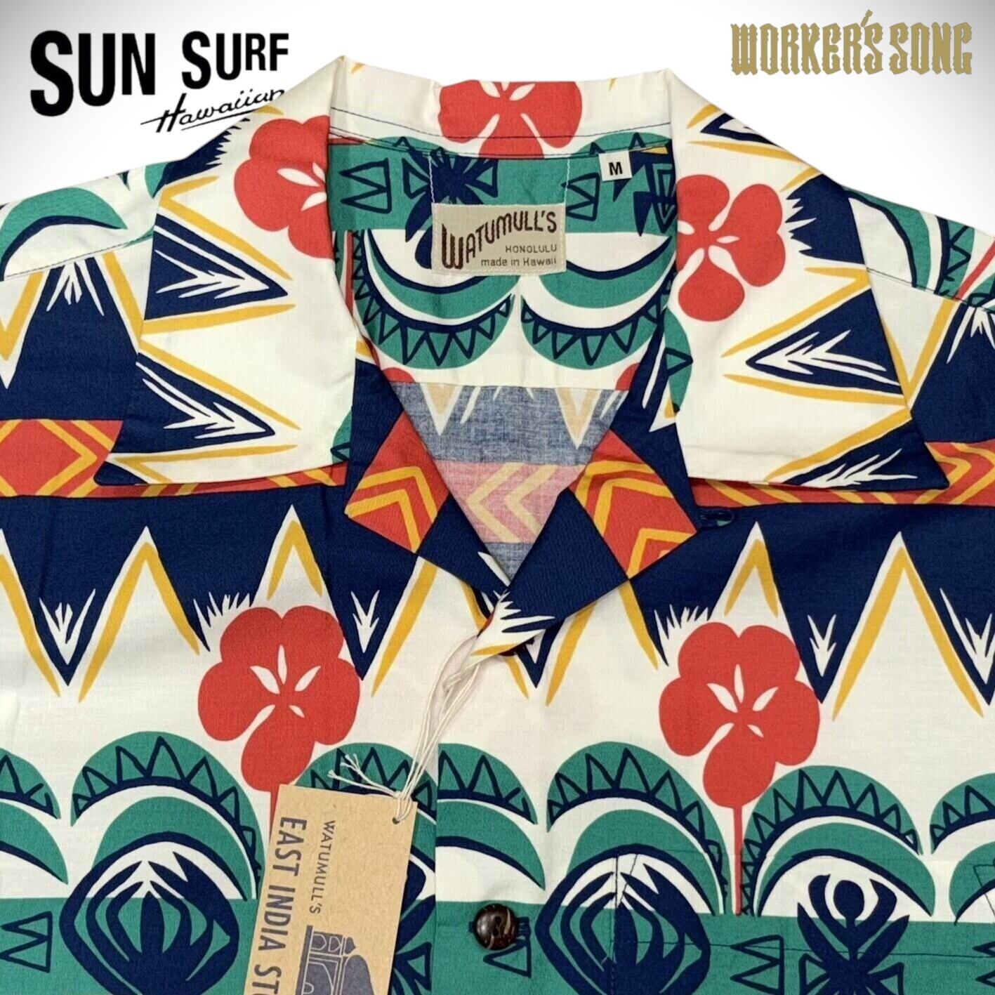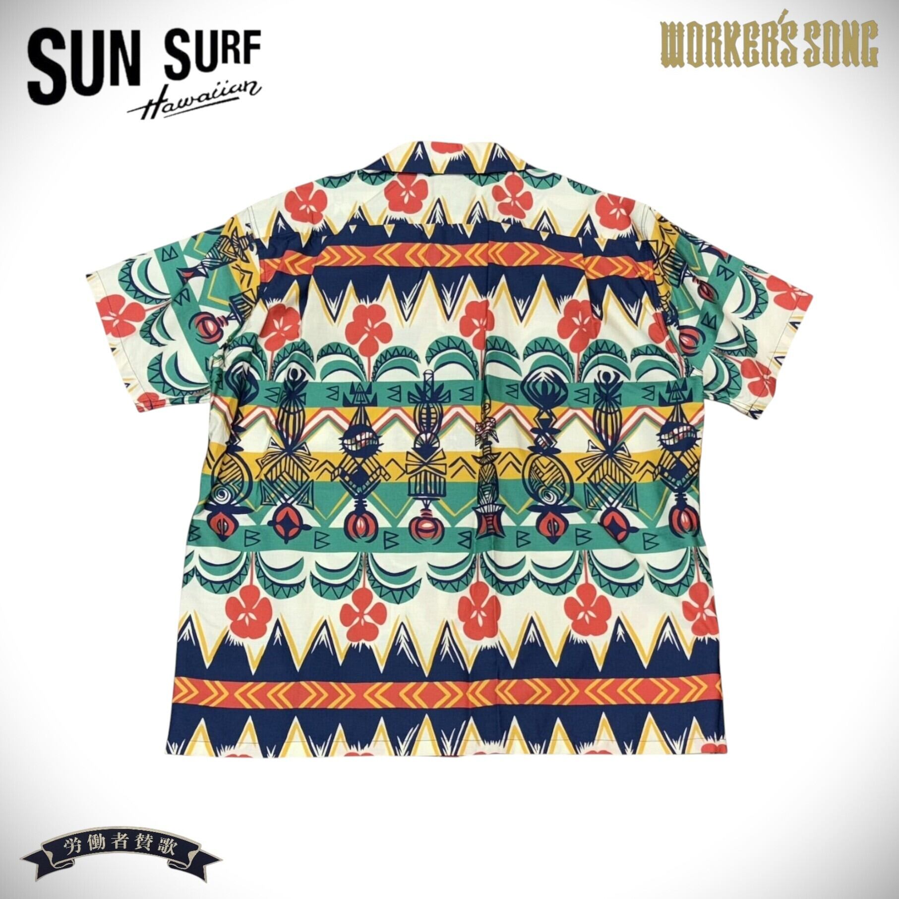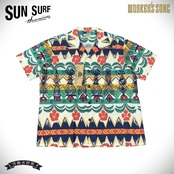 SUN SURF(サンサーフ)はアロハシャツの黄金期とされる1930年代から1950年代にかけて作られた、いわゆる「ヴィンテージ」と呼ばれるレーヨン製アロハシャツを中心に展開するブランド。1970年代に誕生し、創業から資料として収集し続けた数千着にも及ぶヴィンテージのアロハシャツを分析。「アートを着る」と言ってもいいほどプリントのデザインが主役となるアロハシャツにおいて、最大の特徴である鮮やかな発色と深みのある色合いを表現するため、抜染(ばっせん)やオーバープリントといった当時の捺染手法を再現。いまや貴重で入手困難なヴィンテージアロハシャツの魅力をより多くの人々に楽しんでいただけるよう、サンサーフでは各部のディテールにこだわり、数多くの名作を現代に甦らせている。
