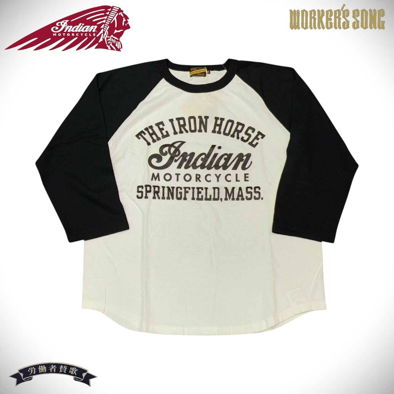 インディアンモーターサイクル ベースボール 七分袖 Tシャツ アメカジ IM69552 101)ホワイト