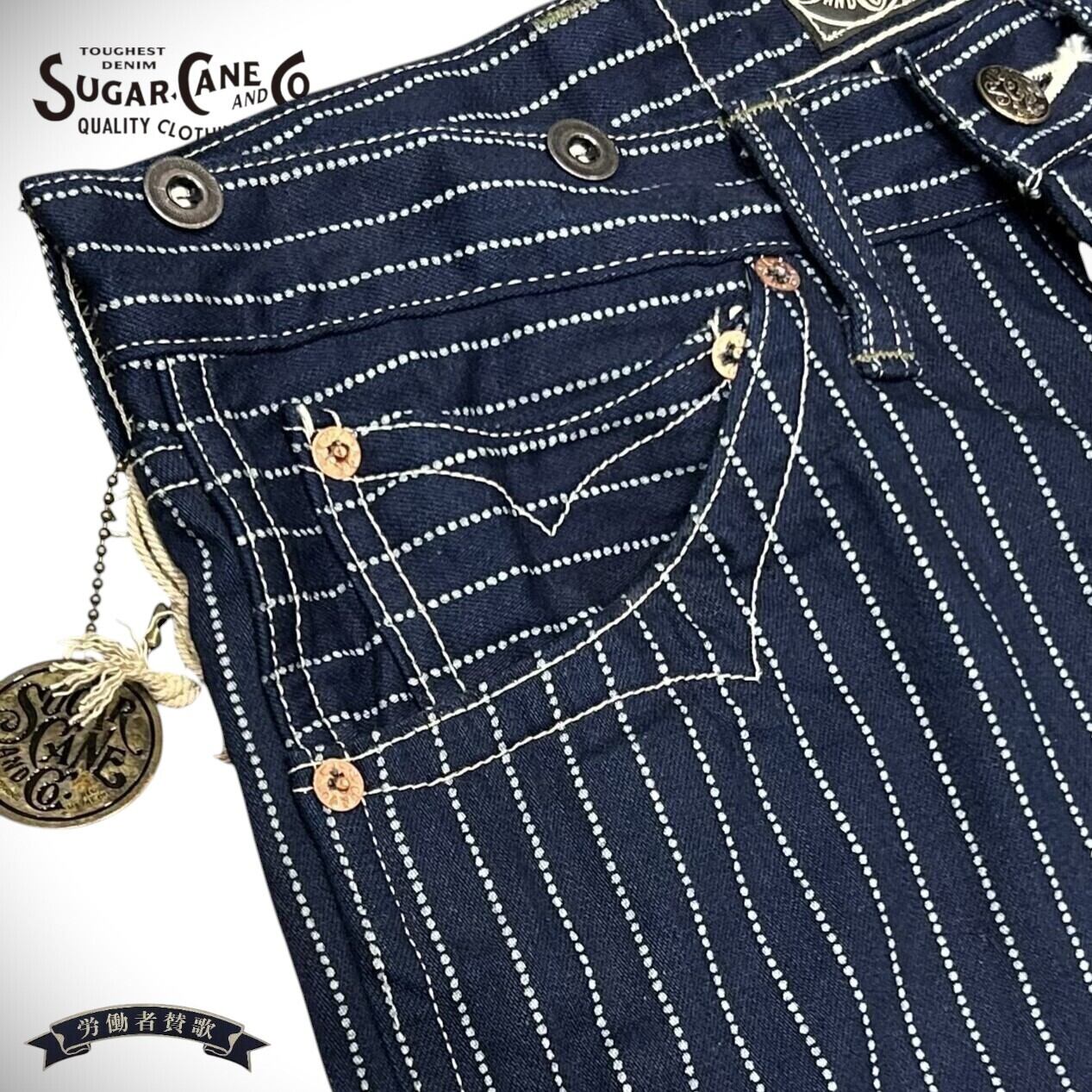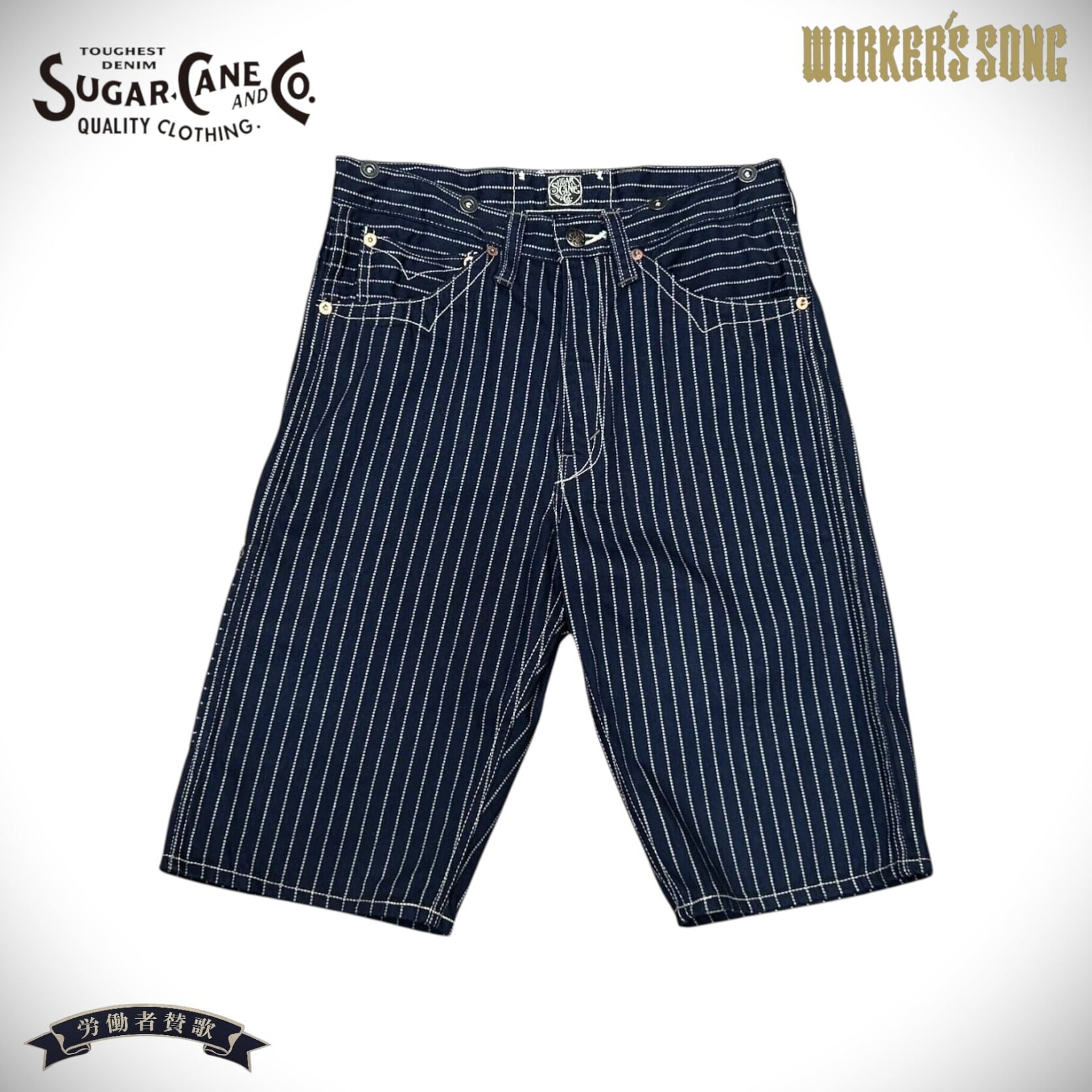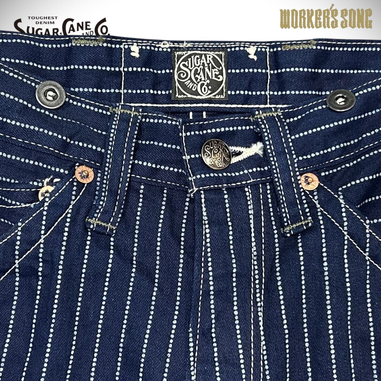 シュガーケーン ウォバッシュストライプ ワーク ショーツ アメカジ ハーフパンツ SC51443 421)ネイビー W28