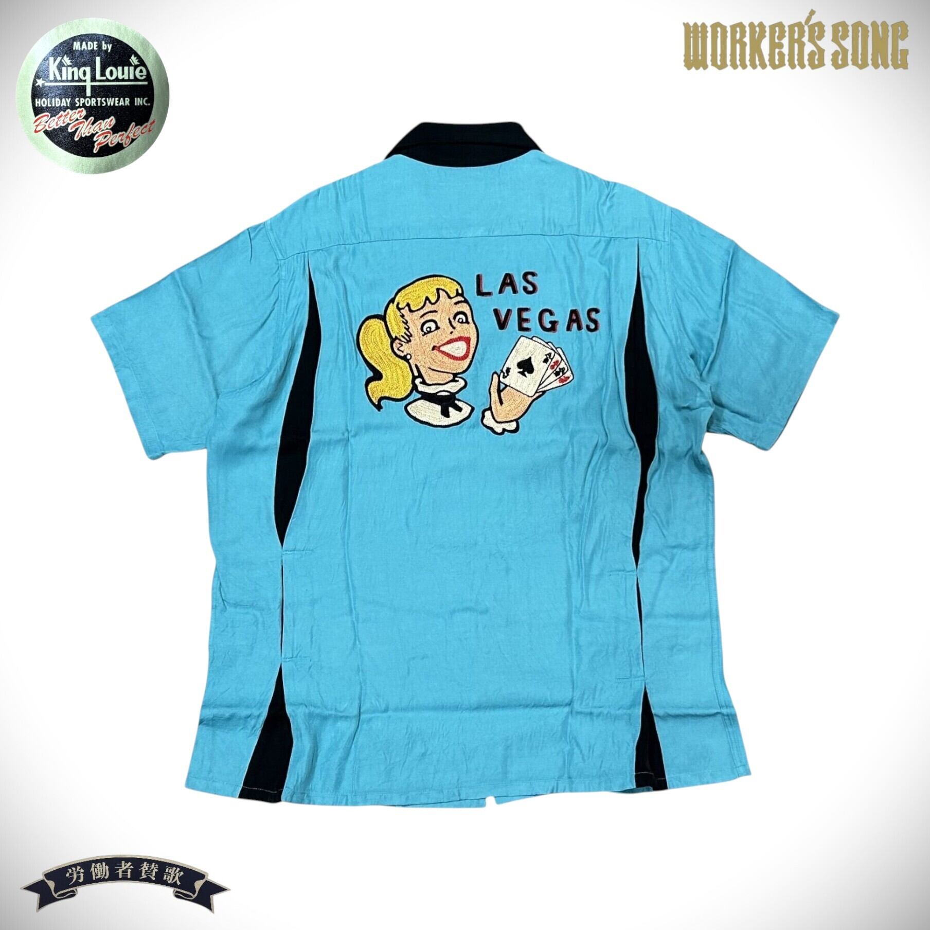 キングルイ バイ ホリデイ 半袖 ボウリングシャツ アメカジ ラスベガス KL37833 123)ターコイズ Sサイズ