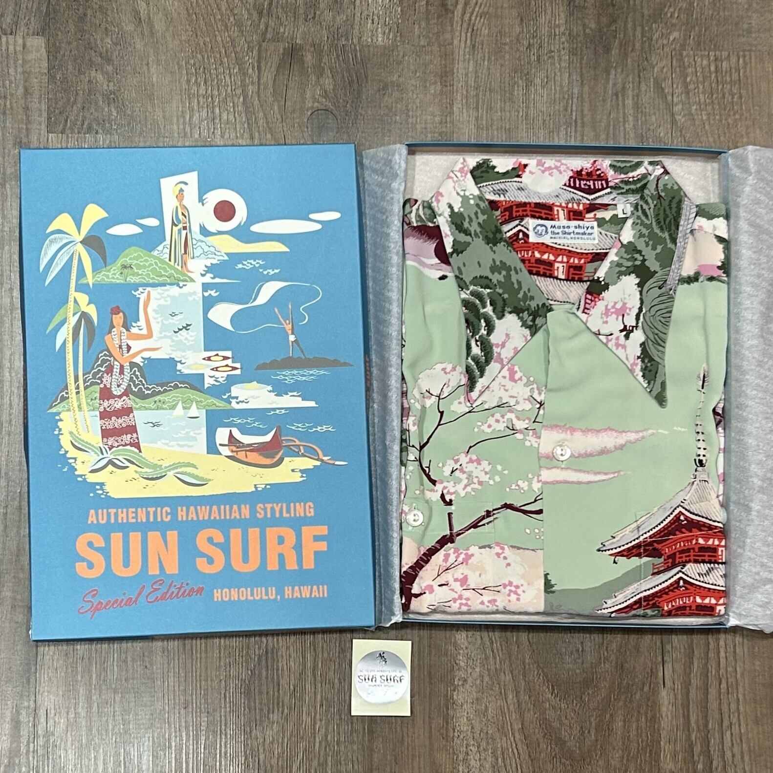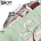 サンサーフはアロハシャツの黄金期とされる1930年代から1950年代にかけて作られた、いわゆる「ヴィンテージ」と呼ばれるレーヨン製アロハシャツを中心に展開するブランド。'70年代に誕生し、創業から資料として収集し続けた数千着にも及ぶヴィンテージのアロハシャツを分析。「アートを着る」と言ってもいいほどプリントのデザインが主役となるアロハシャツにおいて、最大の特徴である鮮やかな発色と深みのある色合いを表現するため、抜染(ばっせん)やオーバープリントといった当時の捺染手法を再現。いまや貴重で入手困難なヴィンテージアロハシャツの魅力をより多くの人々に楽しんでいただけるよう、サンサーフでは各部のディティールにこだわり、数多くの名作を現代に甦らせている。