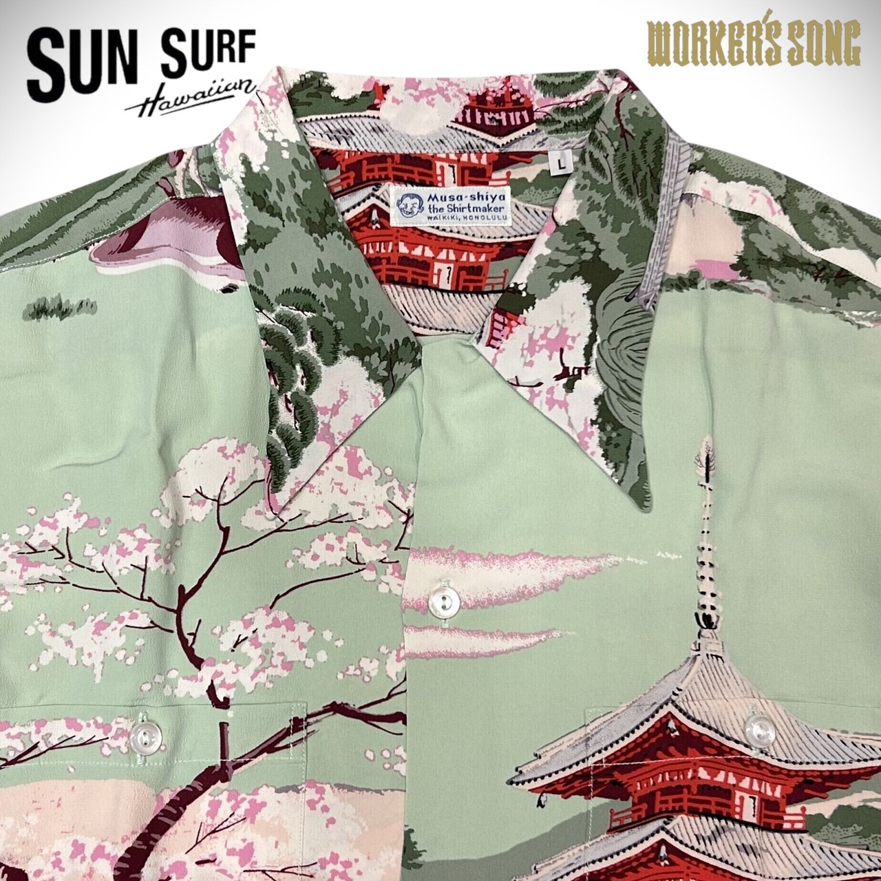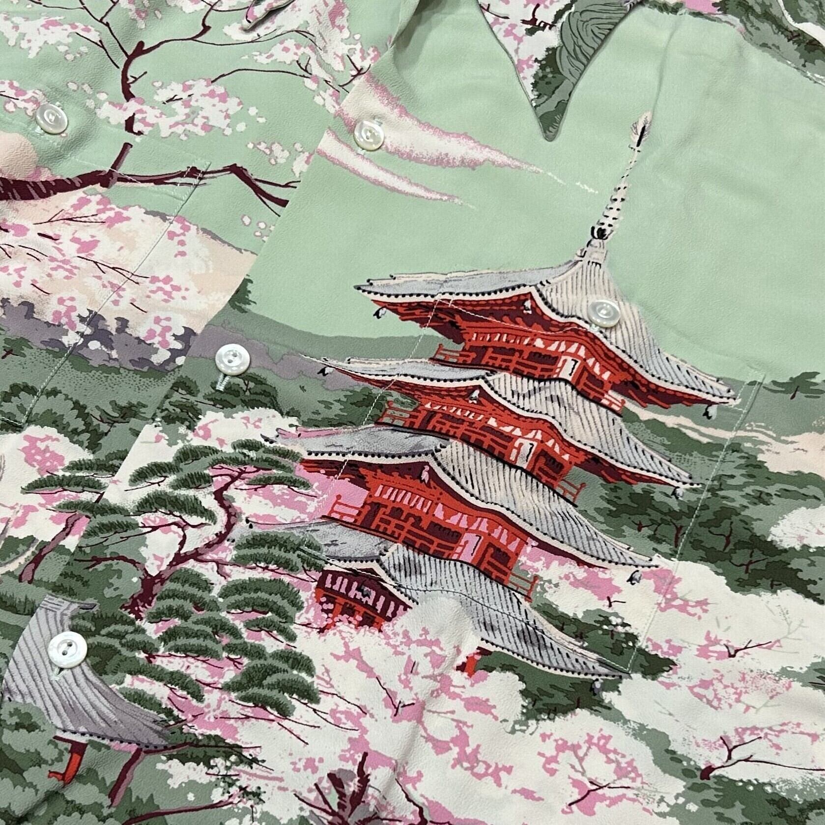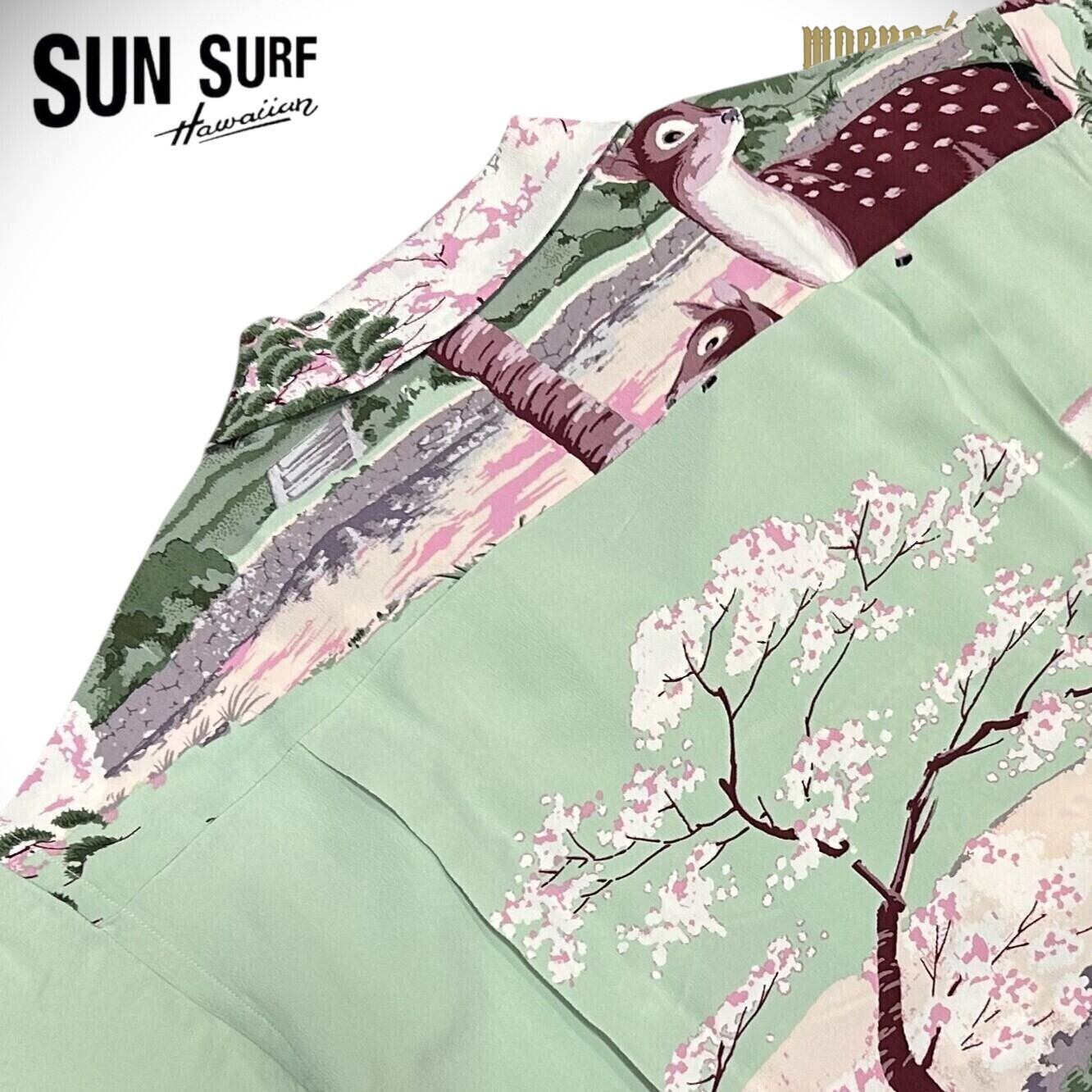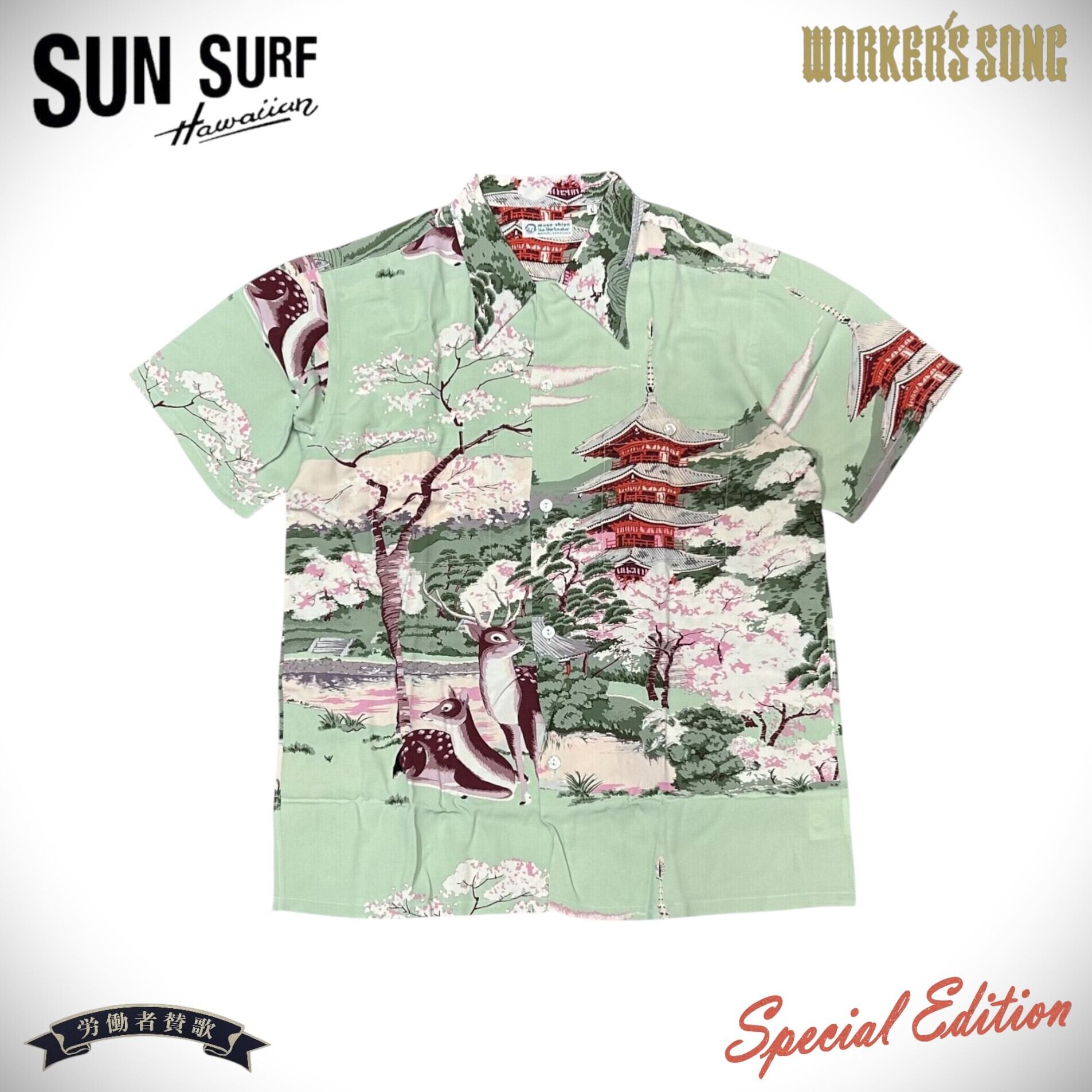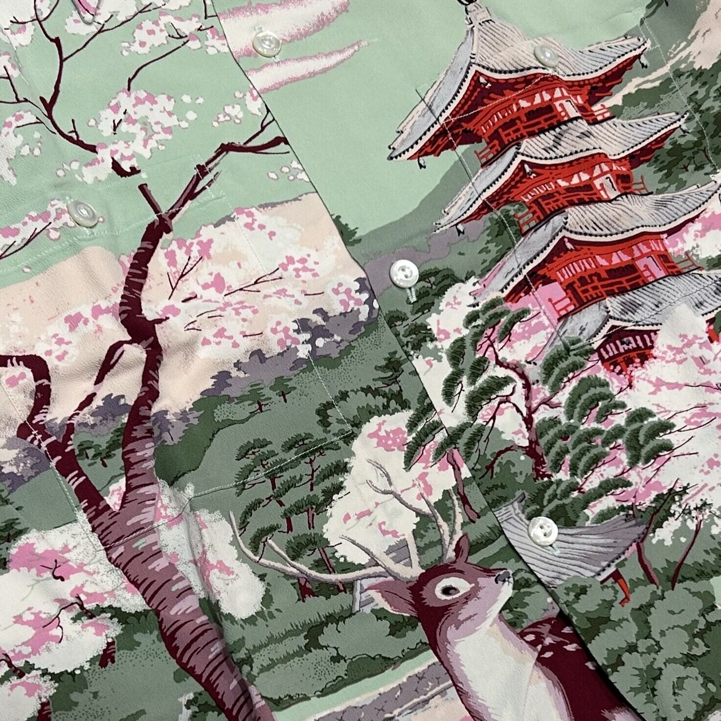 サンサーフ スペシャル 和柄アロハシャツ ムサシヤ 鹿 五重の塔 奈良 桜 SS37858 サックスブルー Lサイズ