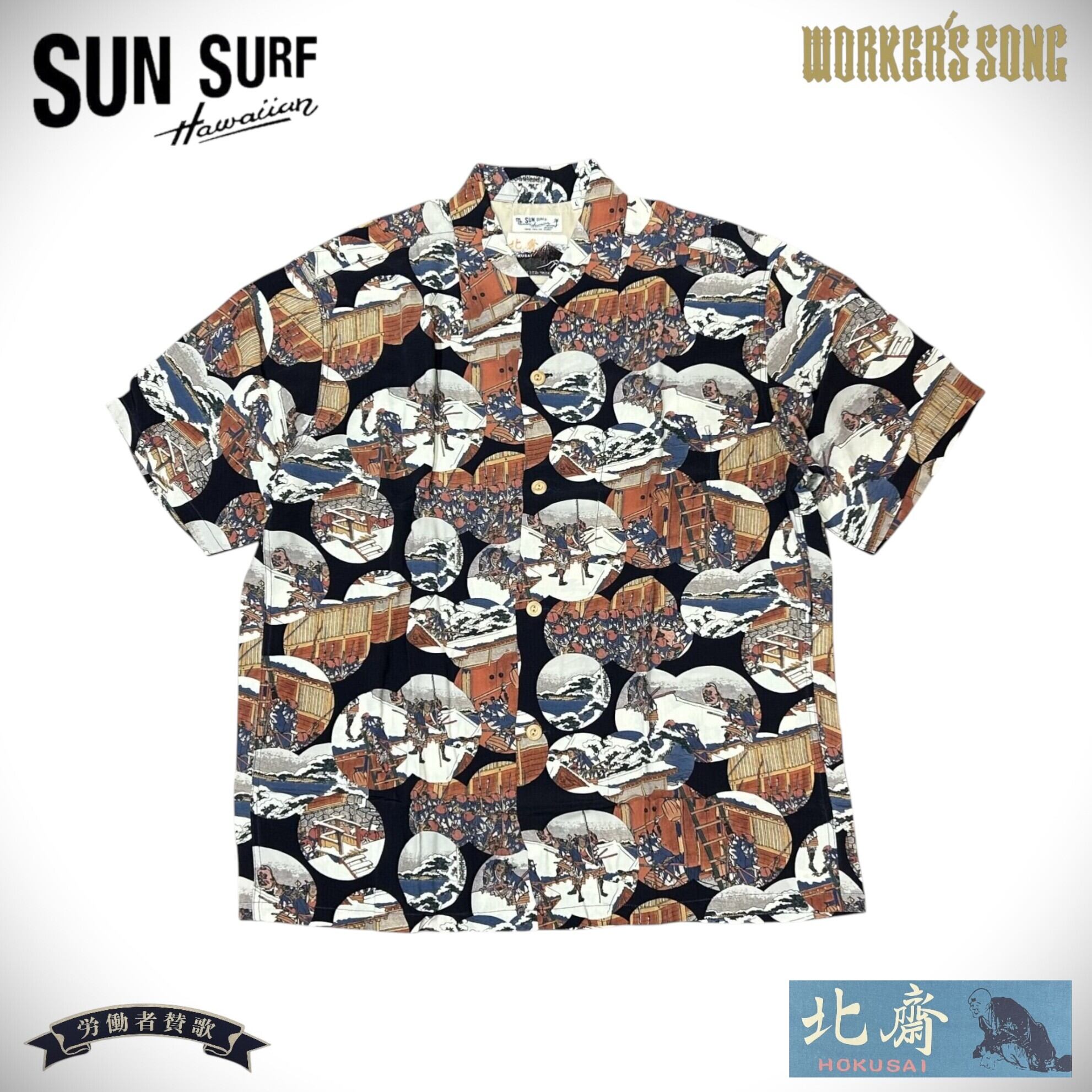サンサーフ 葛飾北斎 スペシャル 浮世絵 アロハシャツ 忠臣蔵討入 アメカジ ハワイアン SS37918 ネイビー Lサイズ