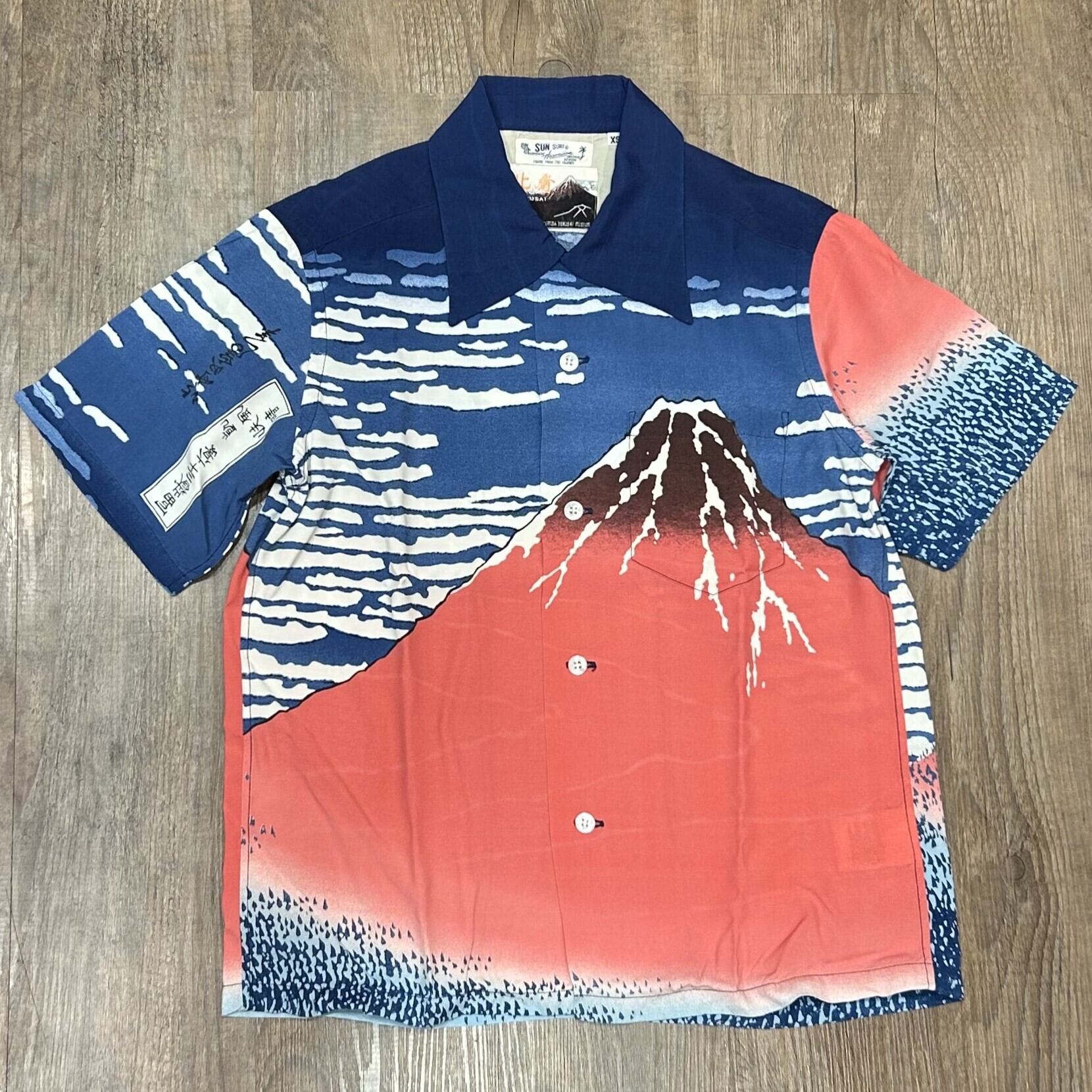 サンサーフ 葛飾北斎 スペシャル 浮世絵 アロハシャツ 凱風快晴 アメカジ ハワイアン 富士山 SS37917 ネイビー サイズXS