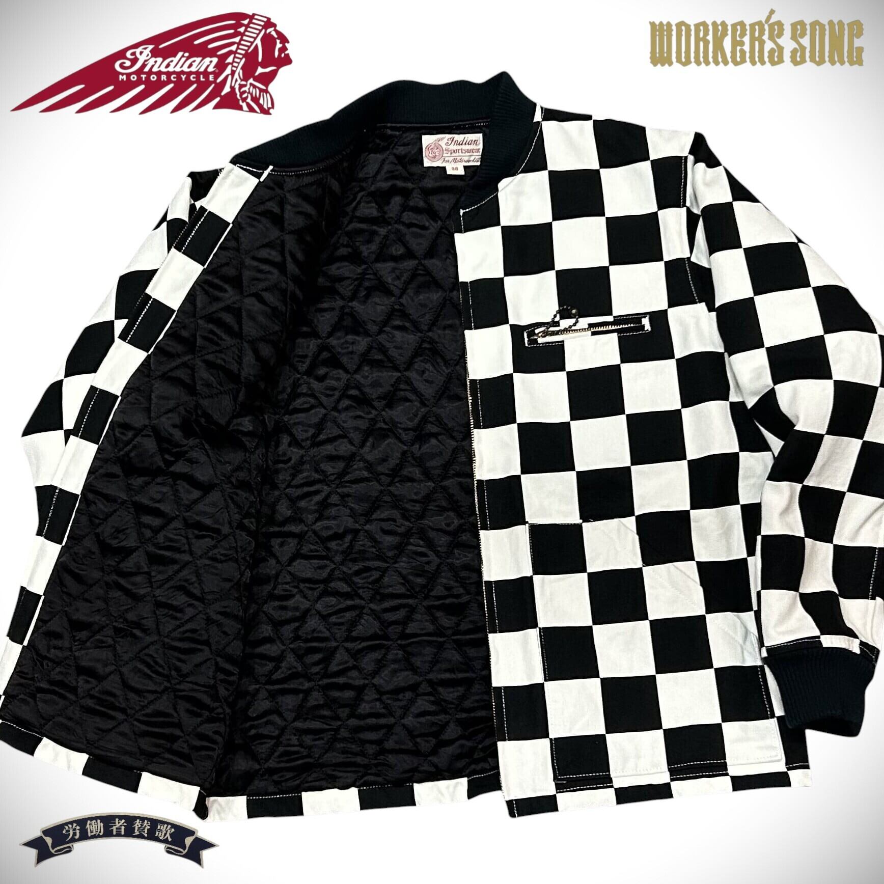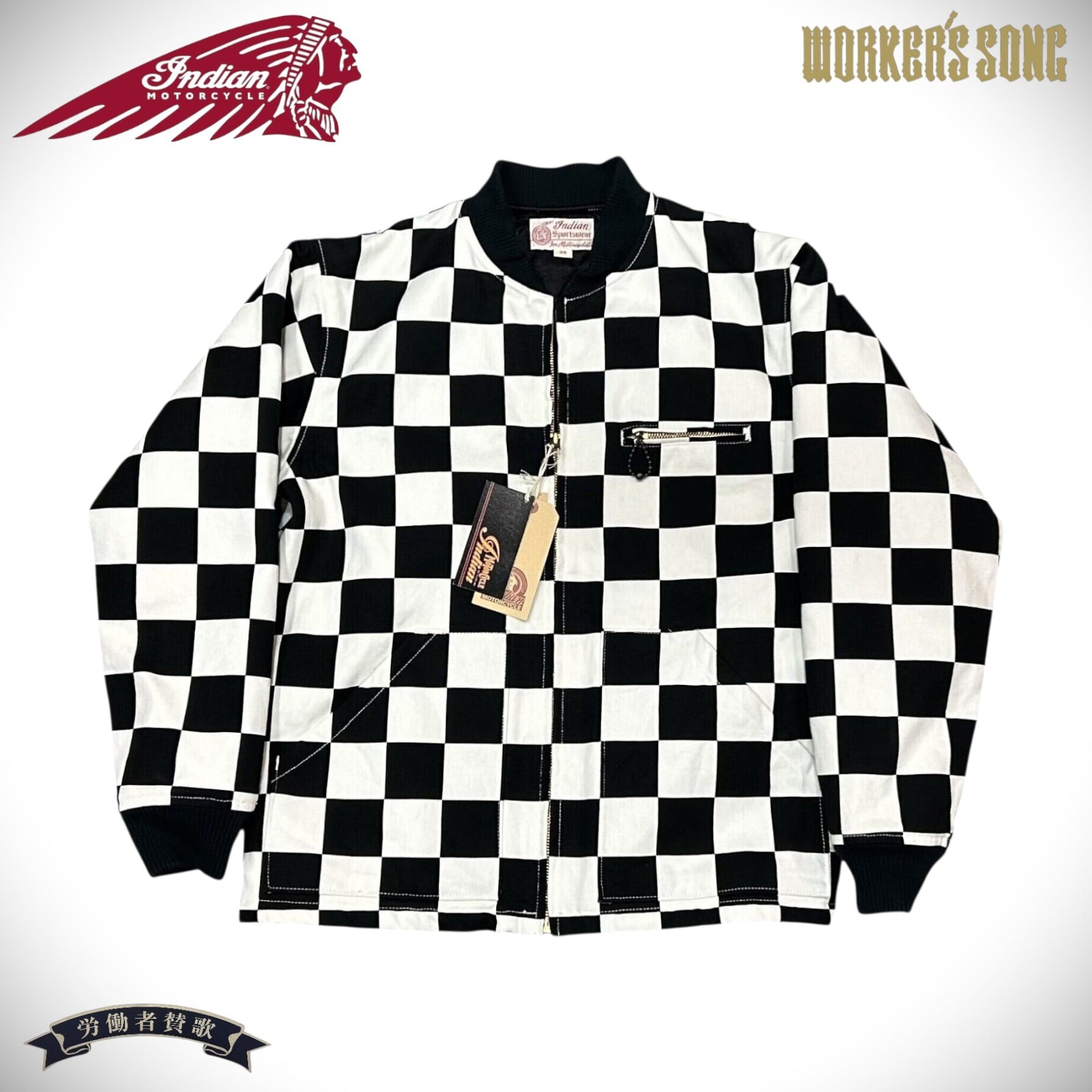 インディアンモーターサイクル チェッカー ワーク ジャケット アメカジ バイカー IM14279 オフホワイト 38(M)サイズ