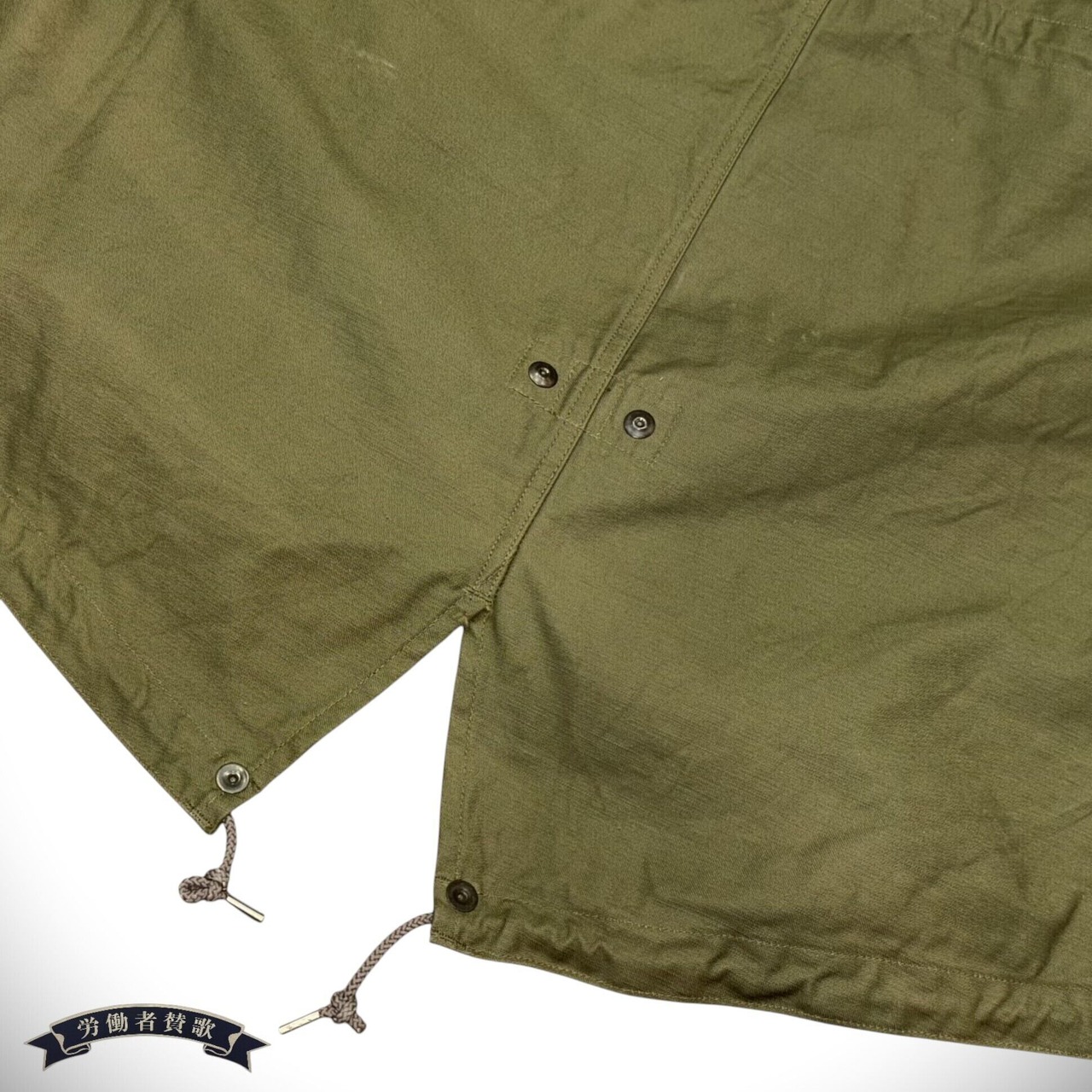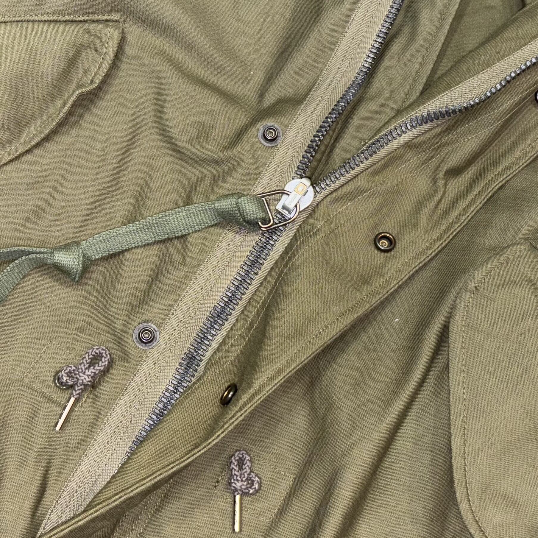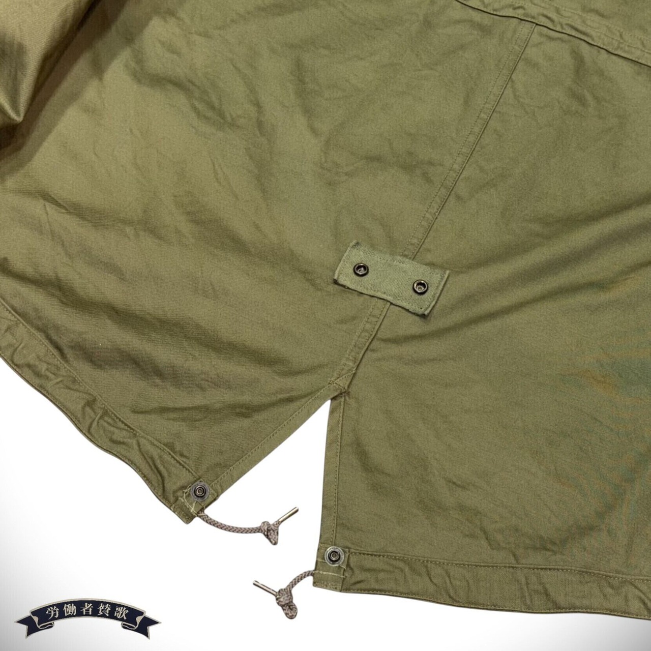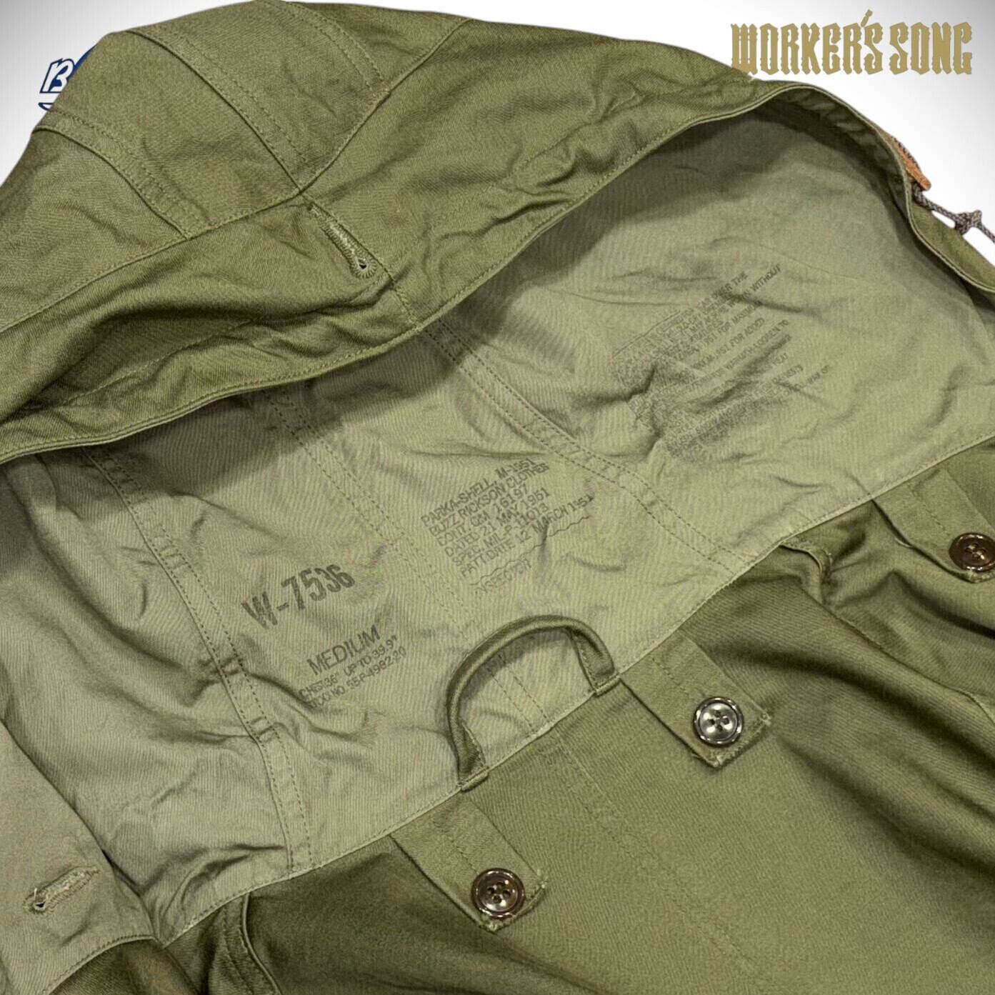 M-51パーカーは第二次大戦から発展してきたプルオーバー型のM-48パーカーを進化させたもので、朝鮮動乱の寒冷地において主に米陸軍章将兵に支給された。この戦地は米軍がかつて経験した事の無い寒冷地であることから、通常の装備の上から着用するレイヤー(重ね着)システムが採用された。最初期型(1951年)のシェルは厚手のコットンサテン地であったが、1952年以降のモデルでは、コストの見直しや軽量化を図って、コットンナイロンのオックスフォード地に変更されている。袖口は、密封性を高めるためのラバーストラップアジャスターベルトが内蔵され、ポケットの袋地には保温性のあるウール素材が使用されている。