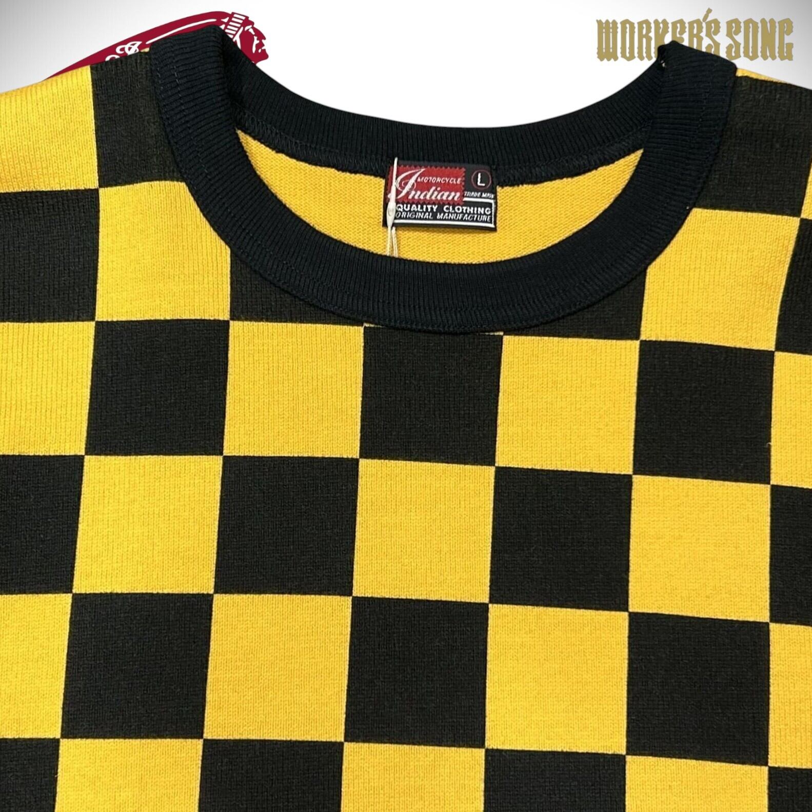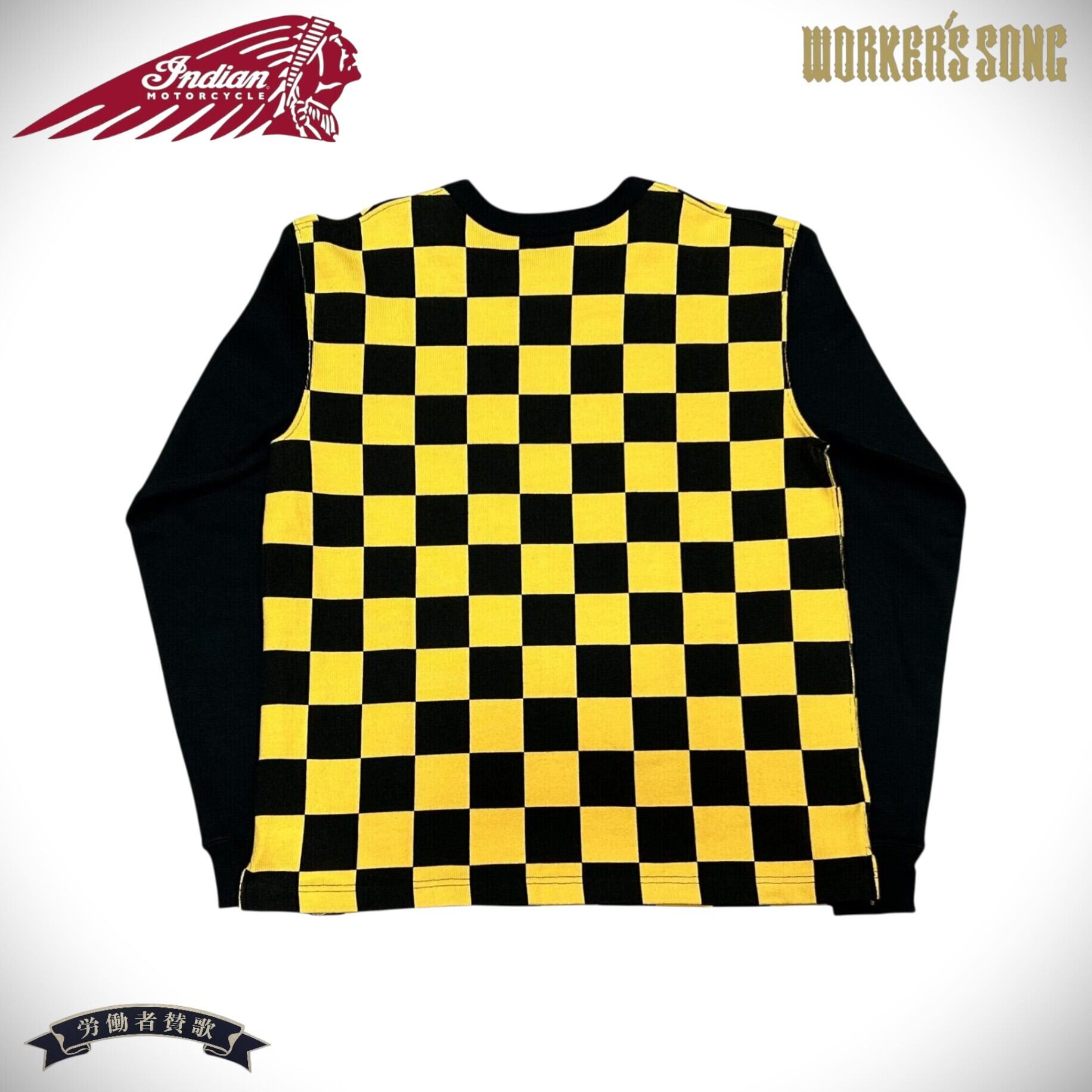 インディアンモーターサイクル ヘビーチェッカー 長袖 Tシャツ アメカジ バイカー IM68221 155)イエロー サイズL