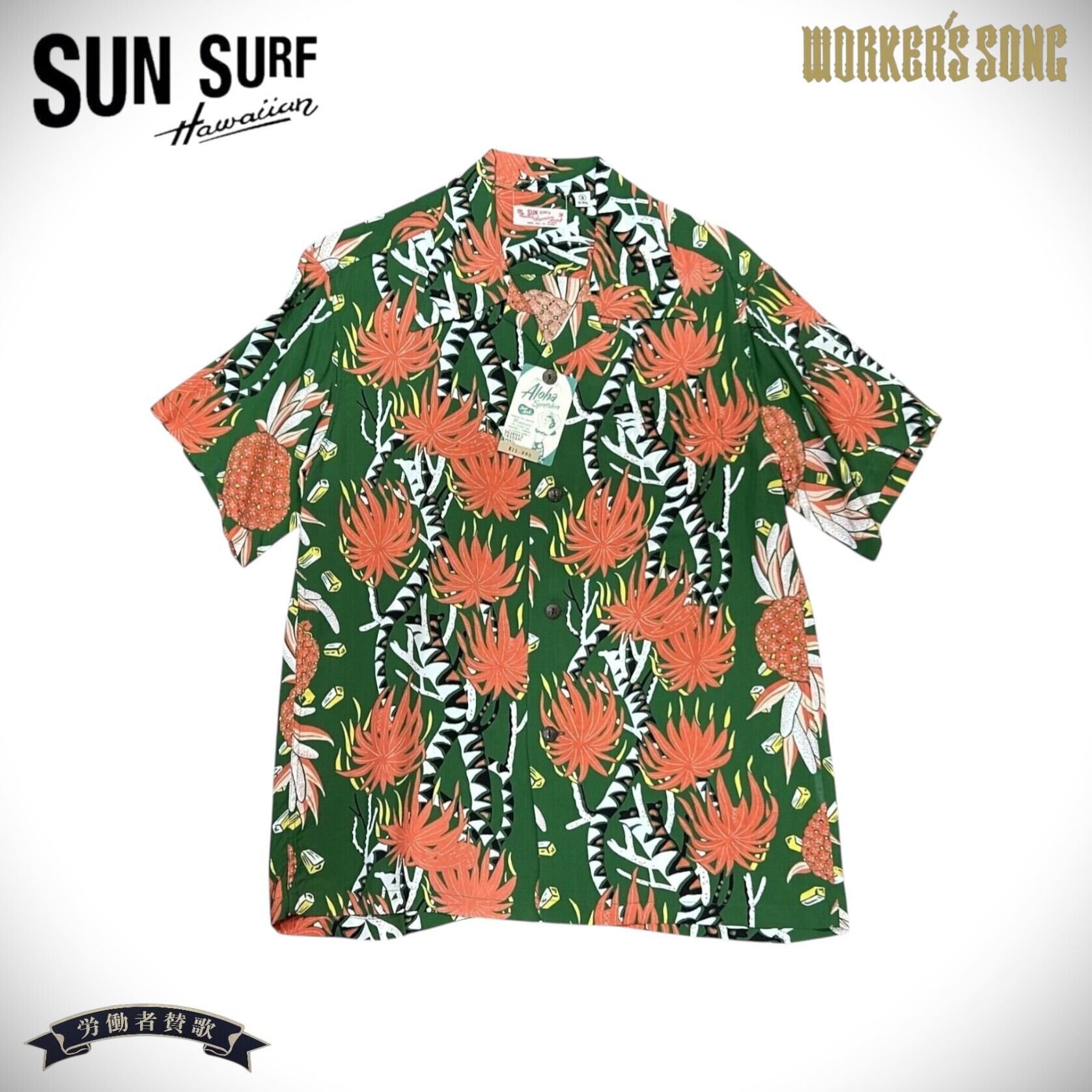 サンサーフ 半袖 アロハシャツ パイナップル アメカジ ハワイアン SS38042 145)グリーン Sサイズ