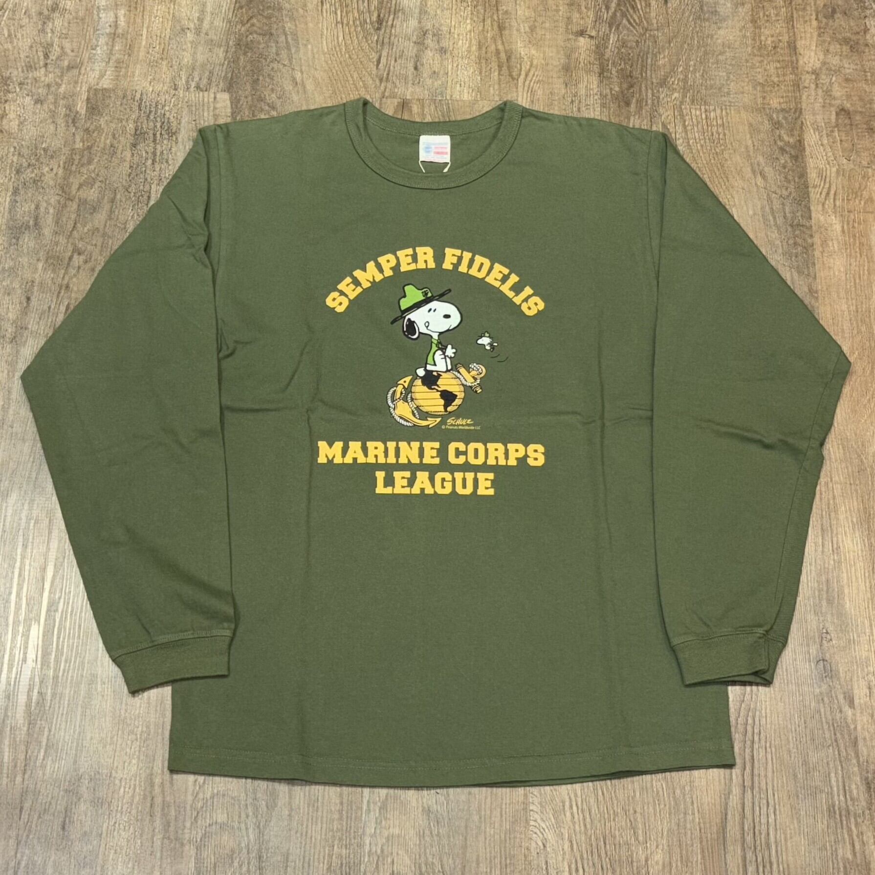 バズリクソンズ ピーナッツ スヌーピー 長袖 Tシャツ アメカジミリタリー BR68358 149)オリーブ XLサイズ