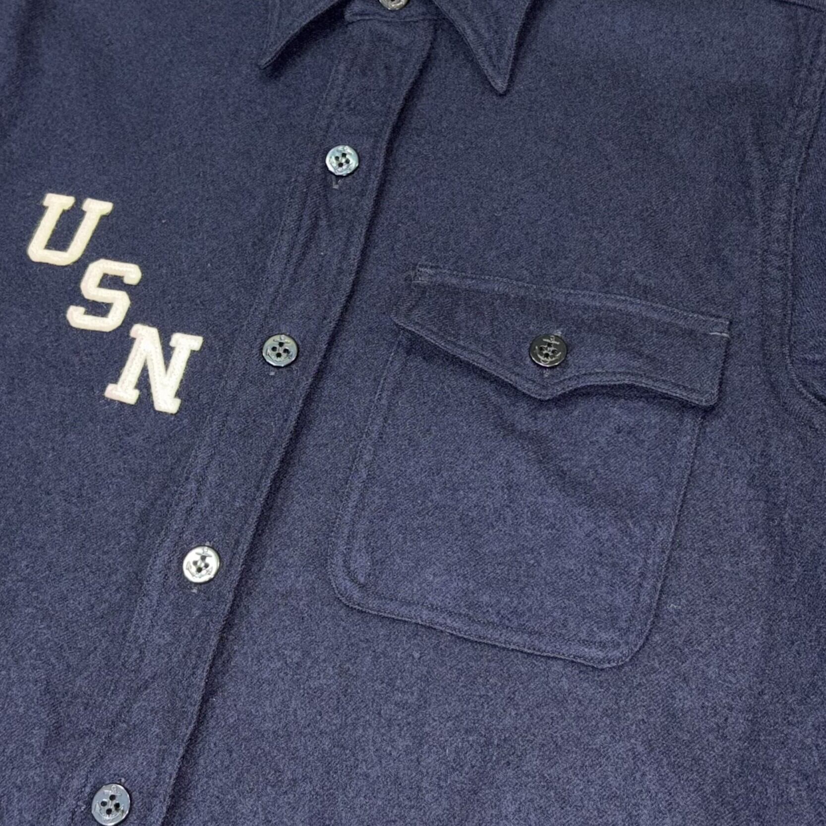 バズリクソンズ C.P.O ウールシャツ フェルトレタリング カスタム アメカジ ミリタリー 軍物 BR28220 ネイビー 38(M)