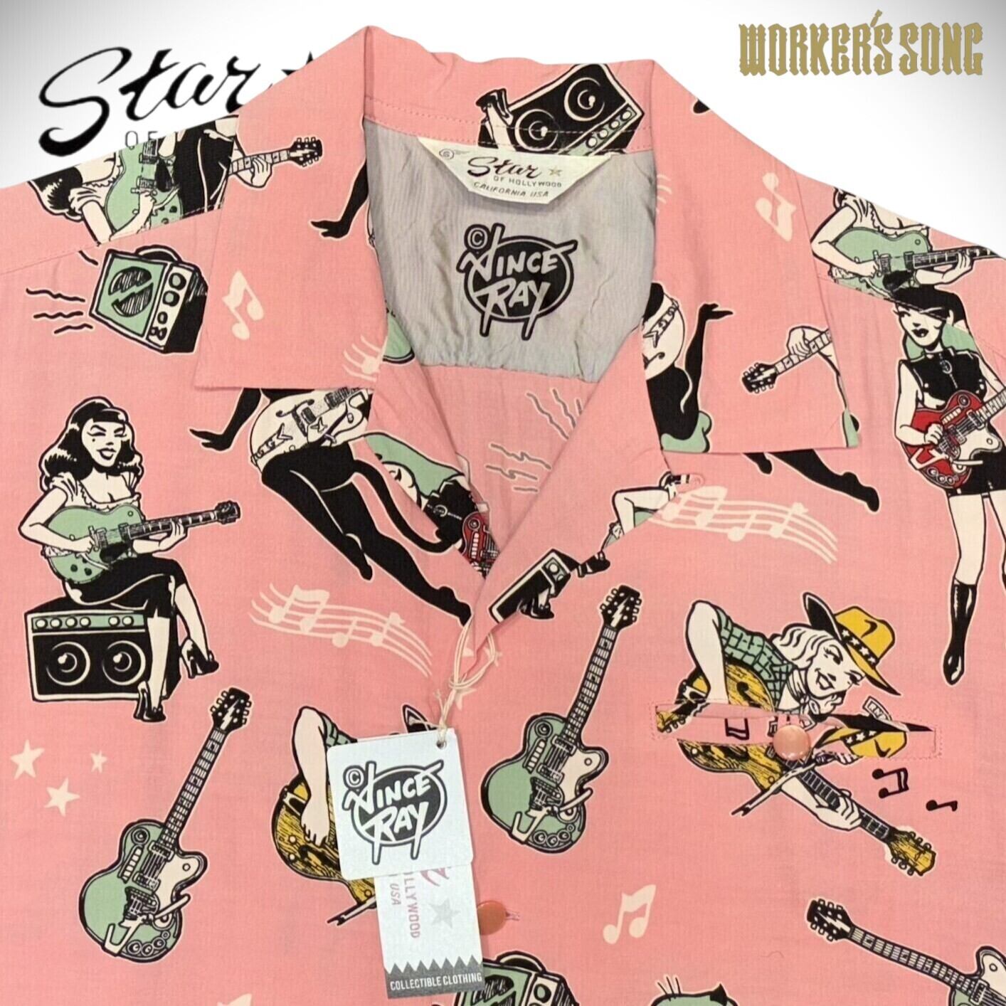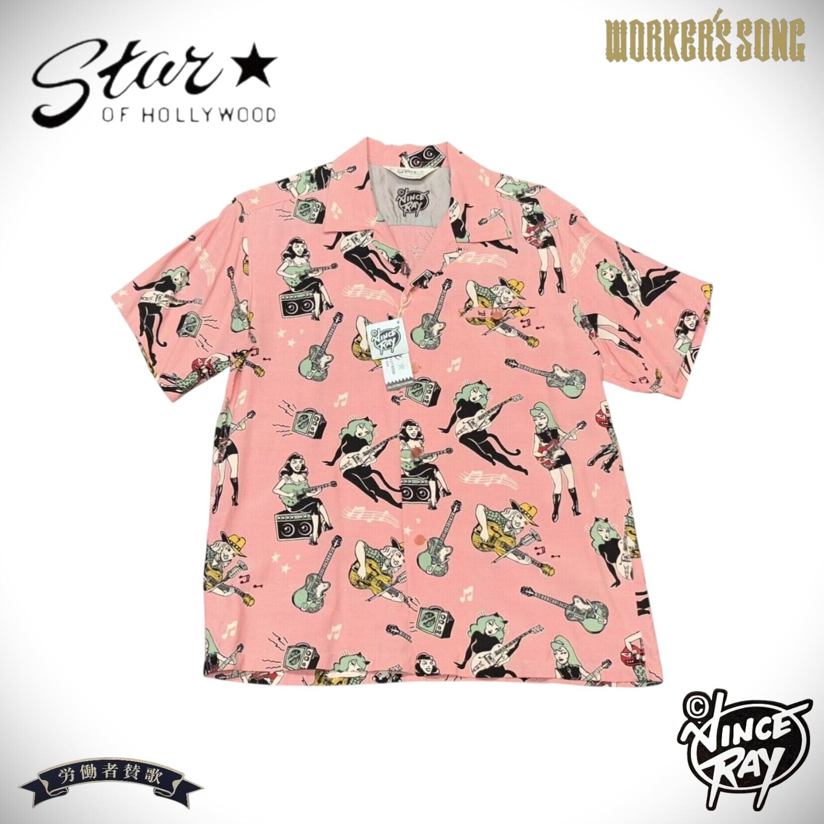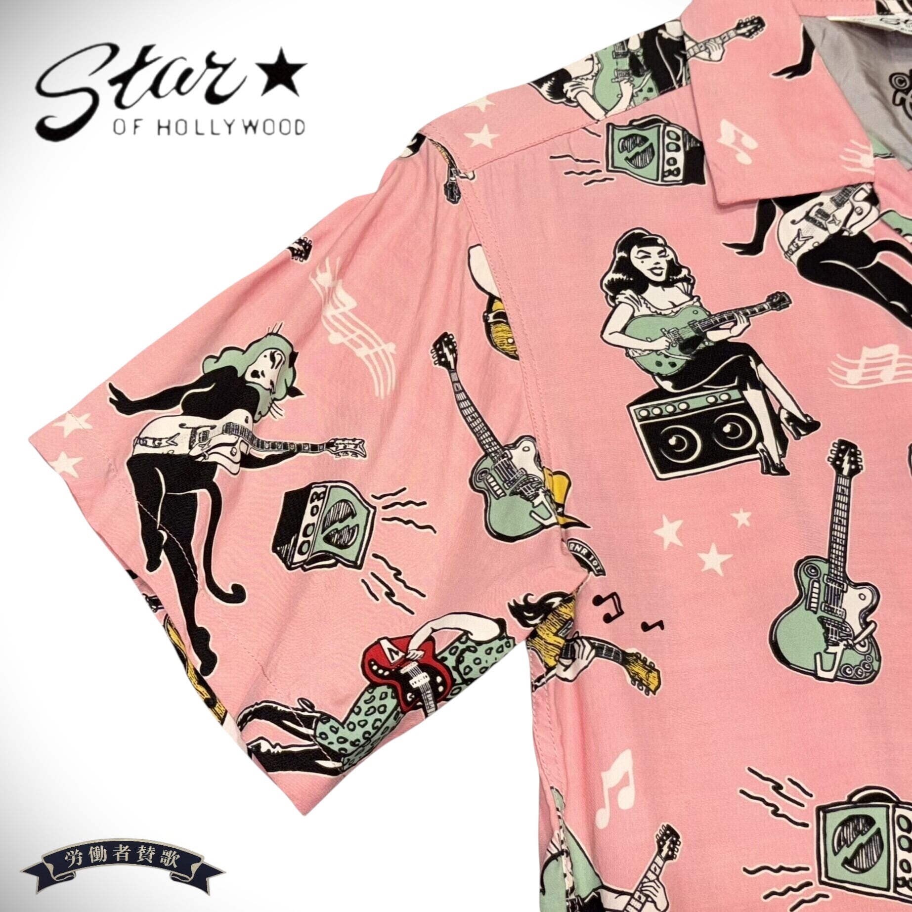 スター オブ ハリウッド ヴィンスレイ レーヨンオープンシャツ ガール ズギター アメカジ SH38375 162)ピンク Sサイズ