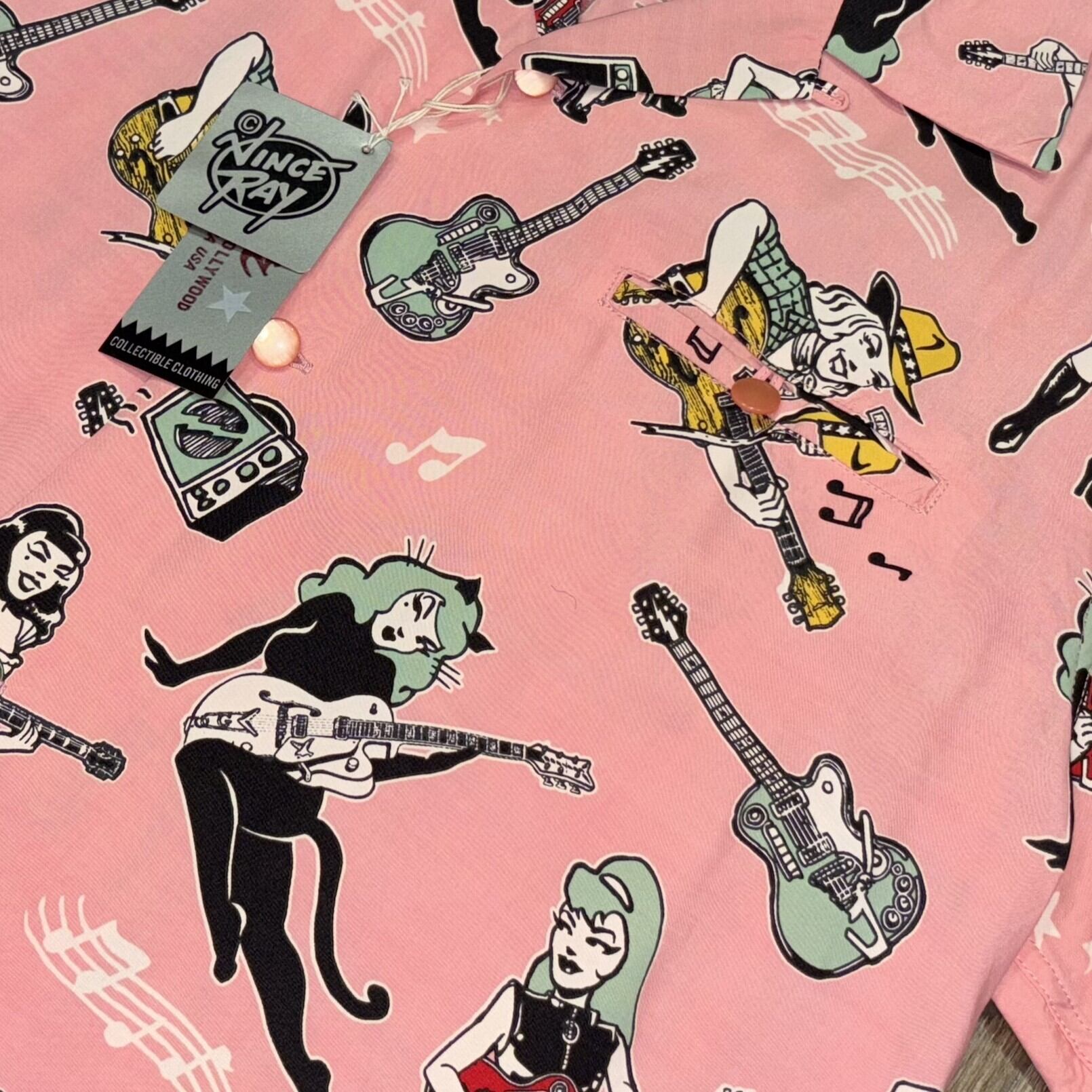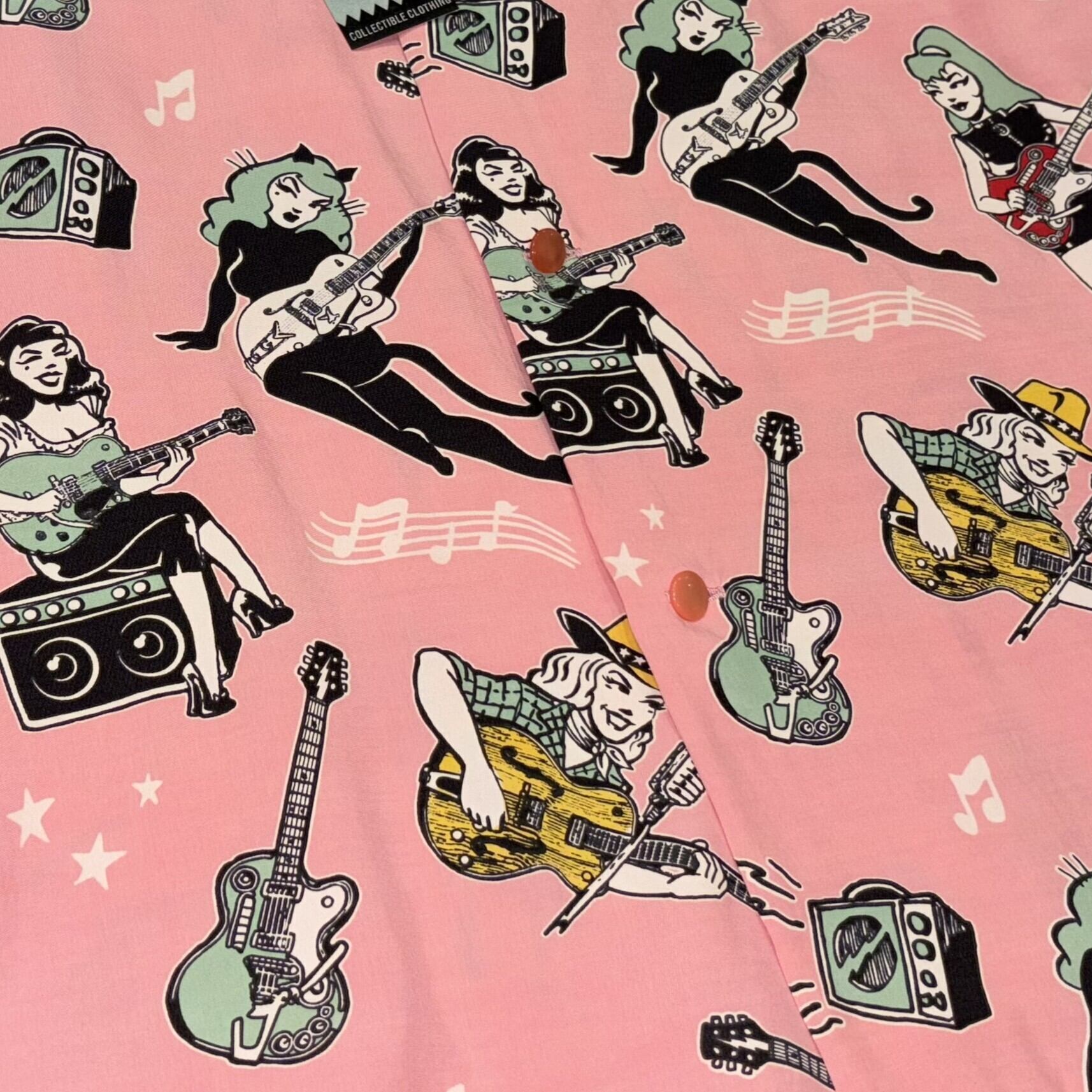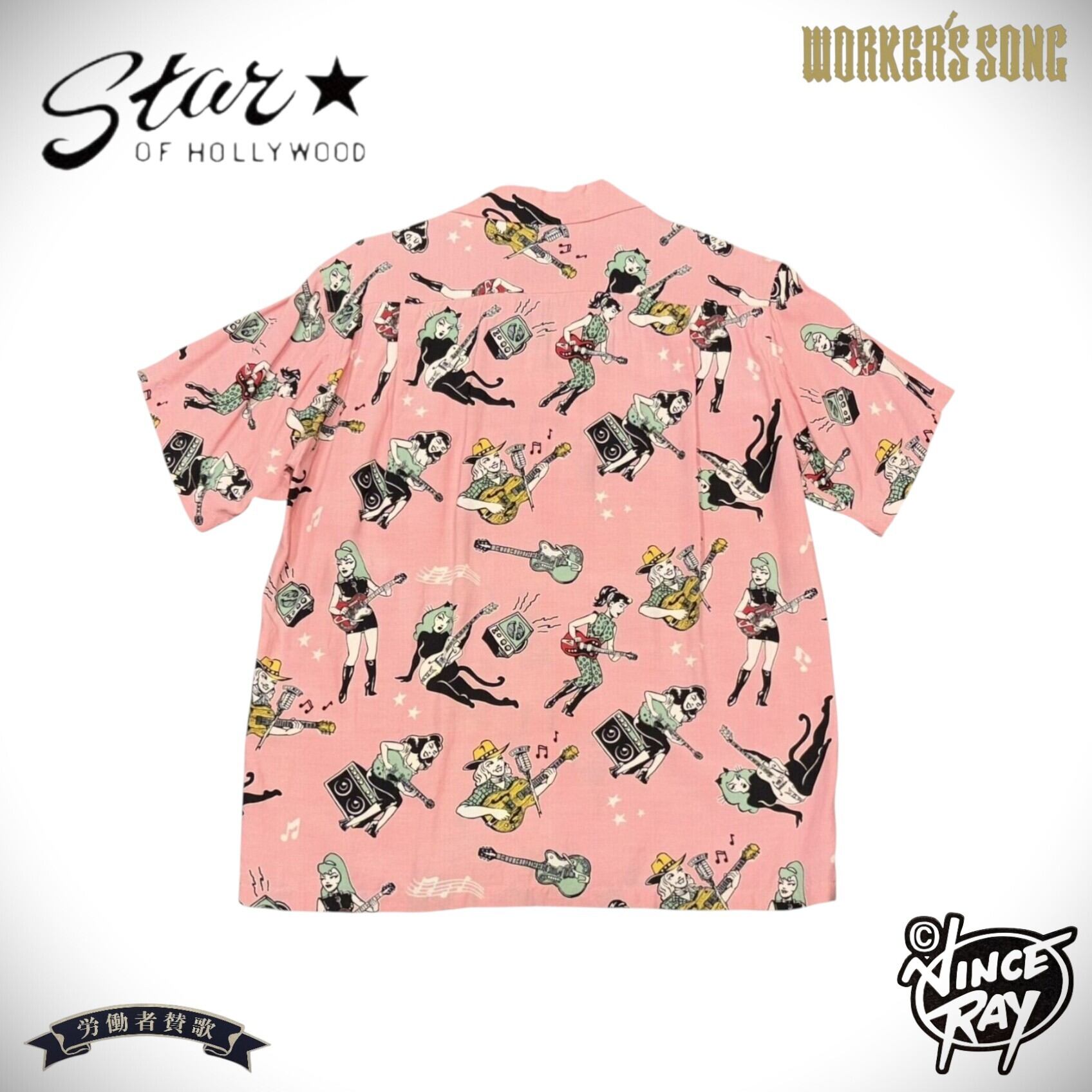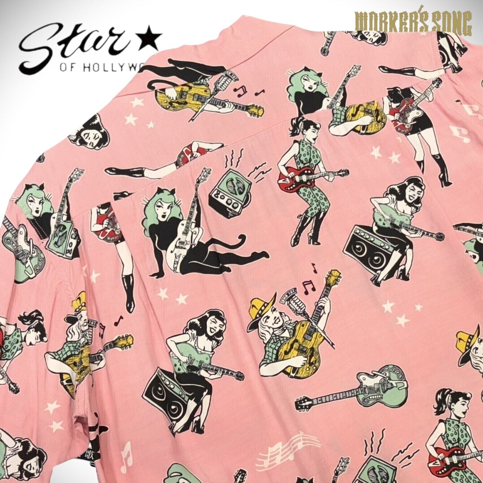 スター オブ ハリウッド ヴィンスレイ レーヨンオープンシャツ ガール ズギター アメカジ SH38375 162)ピンク Sサイズ