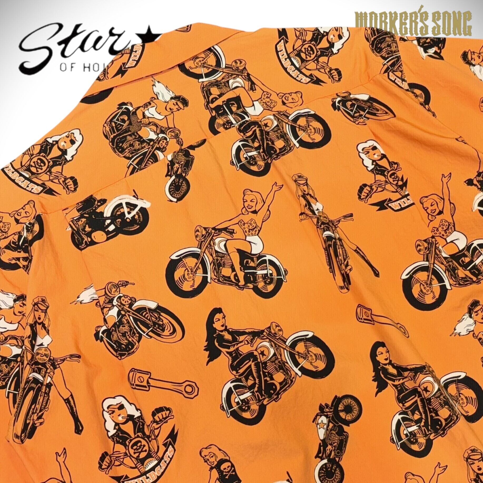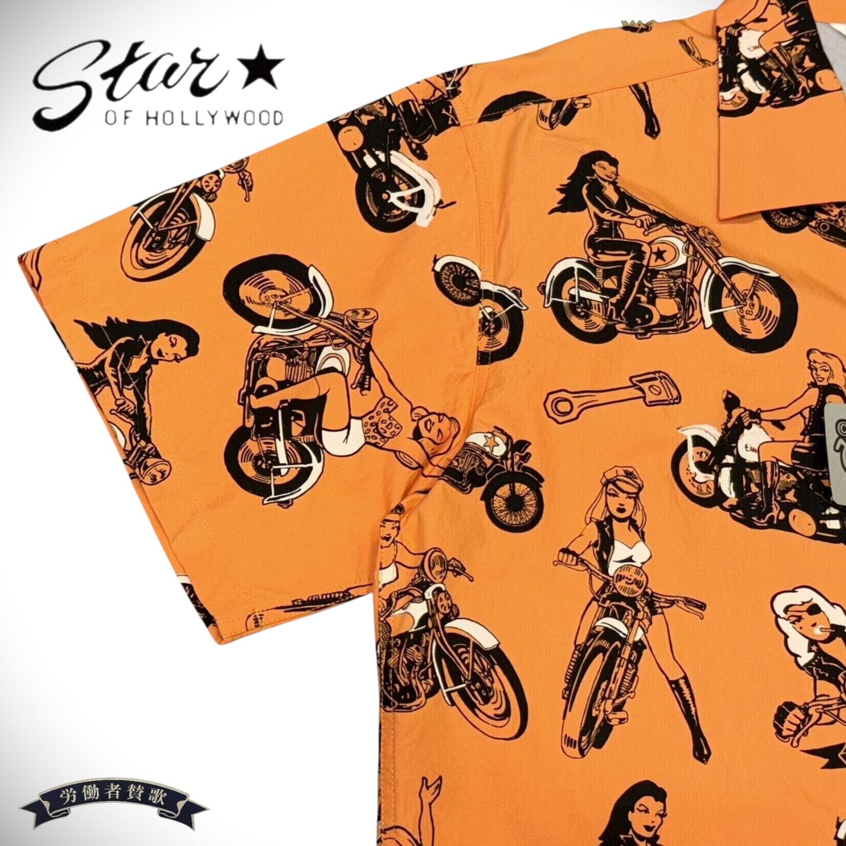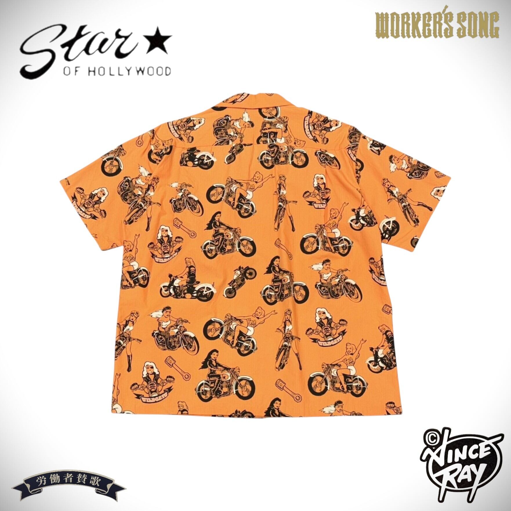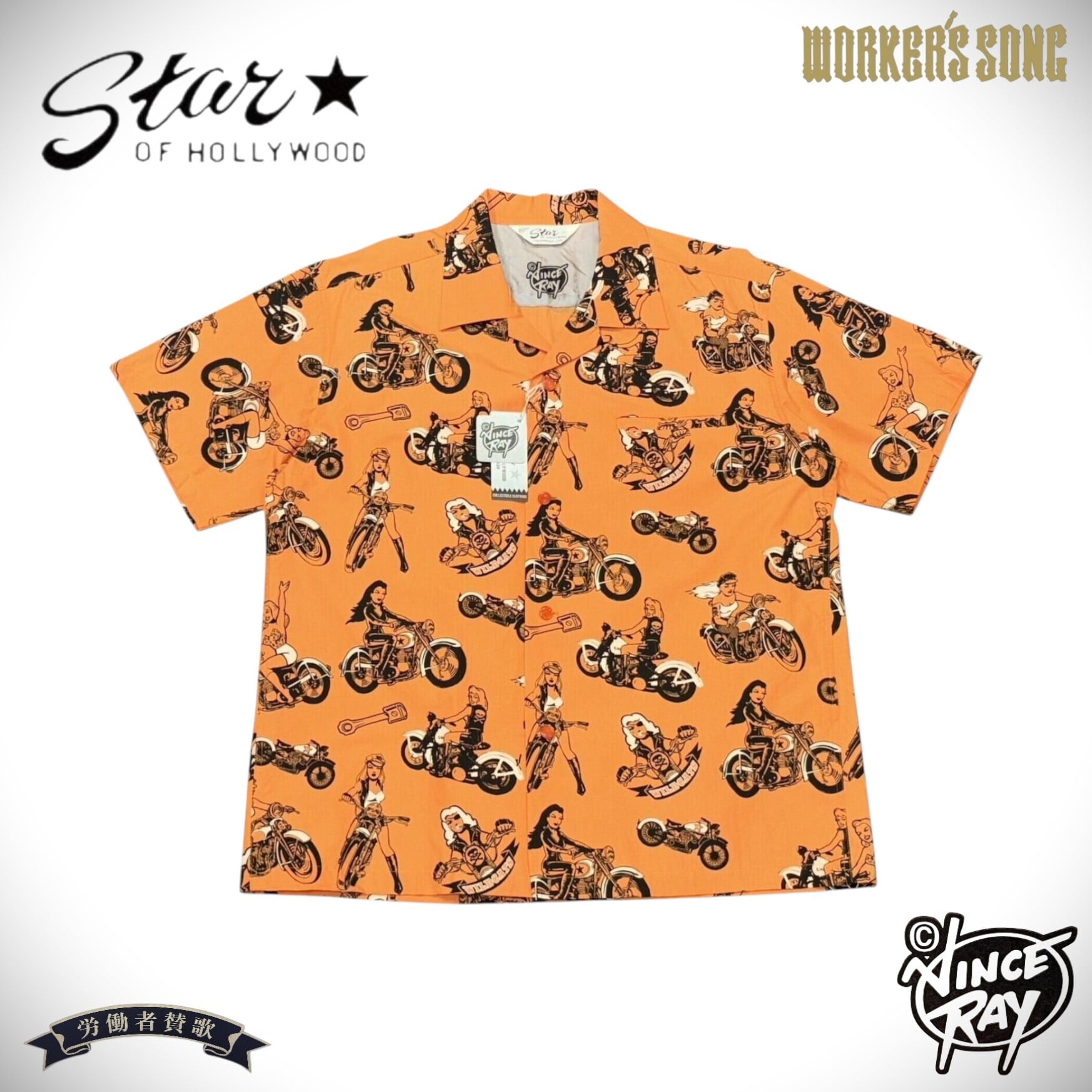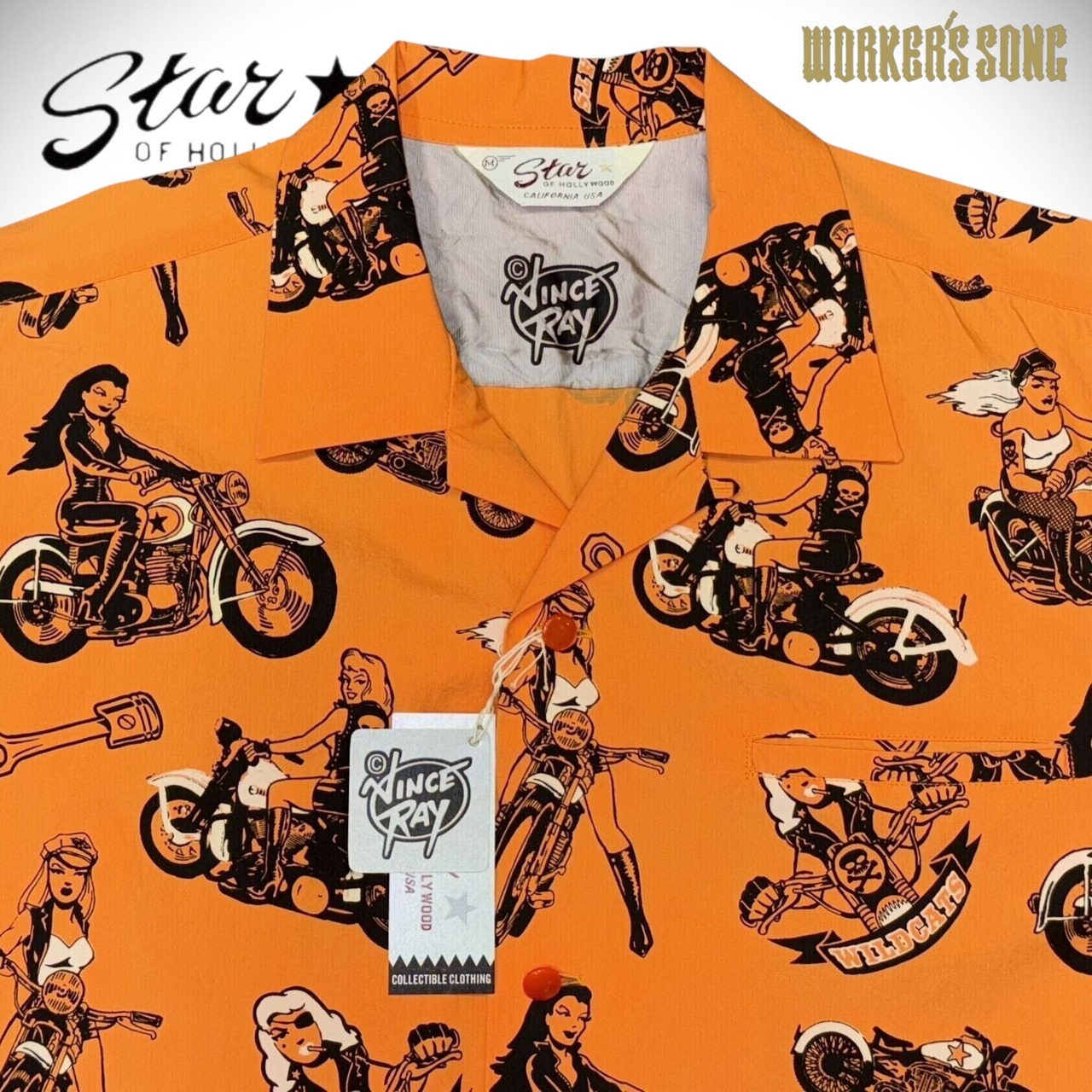 スター オブ ハリウッド ヴィンスレイ コットン オープンシャツ ワイルドキャット アメカジ SH38376 159)オレンジ Mサイズ