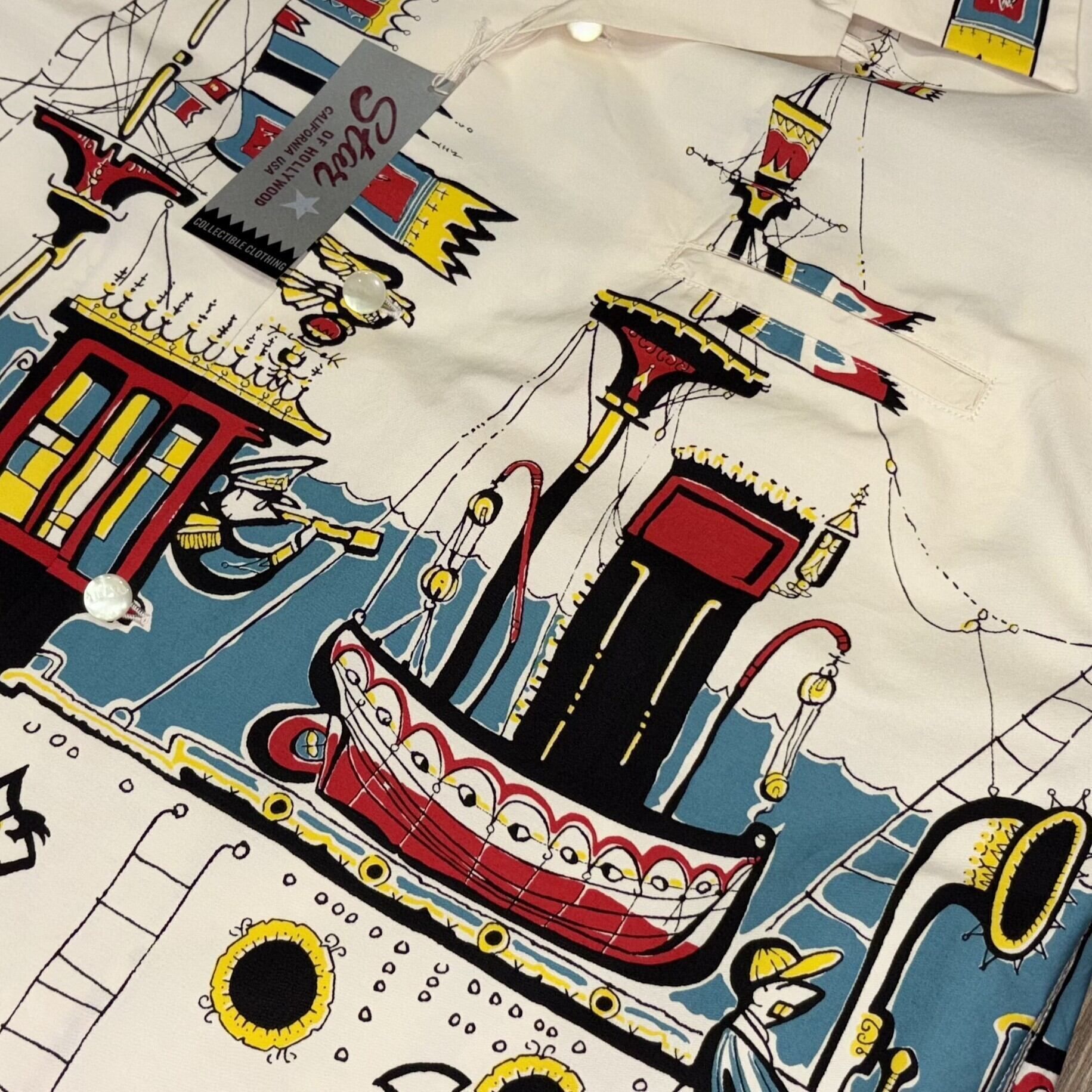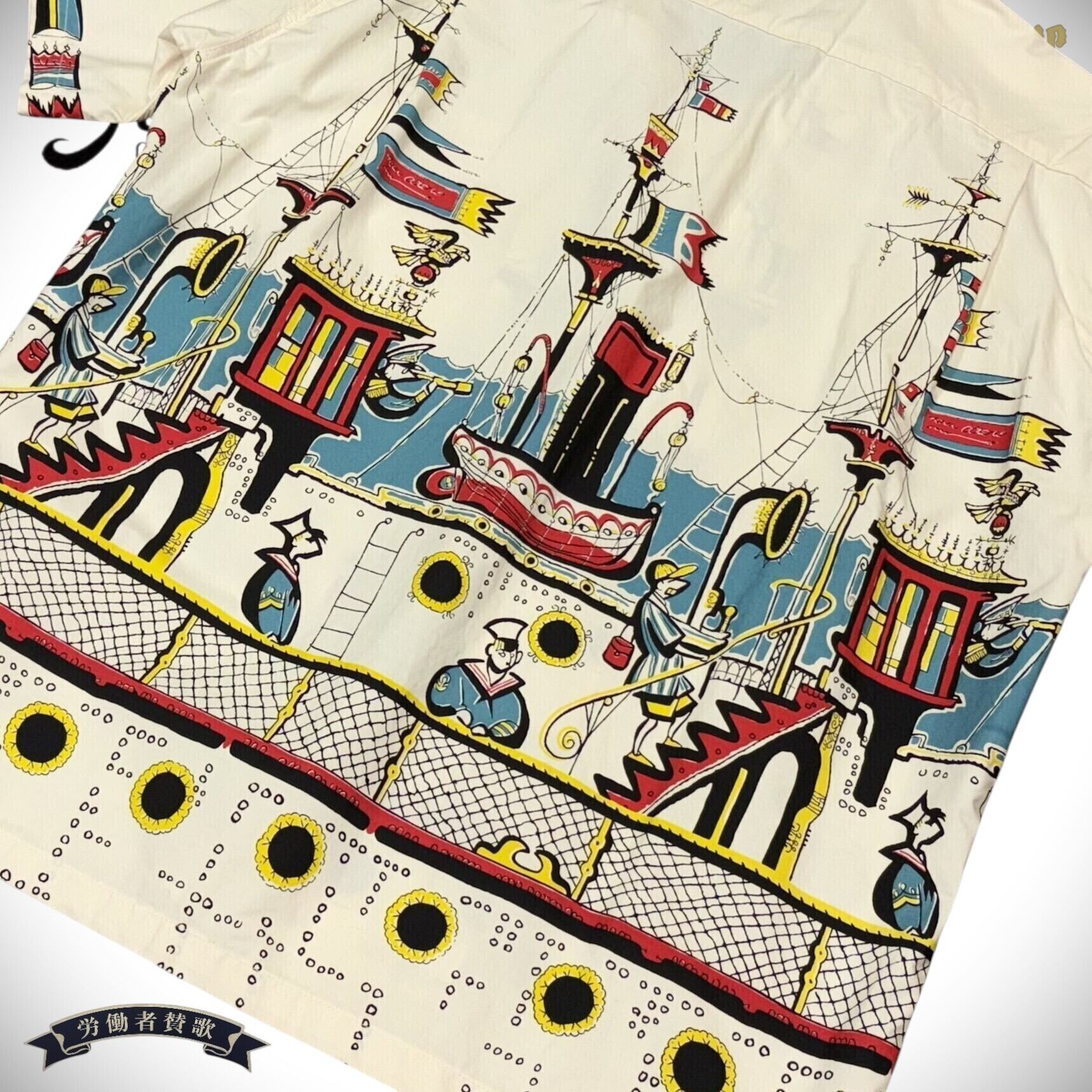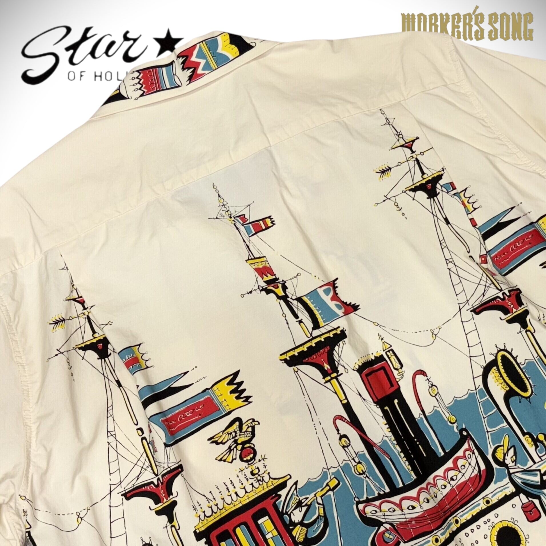 50年代の航海シーンを描いたオフホワイトのオープンシャツ。