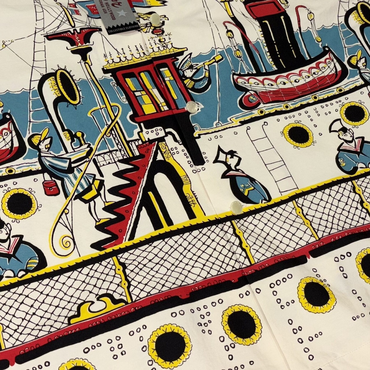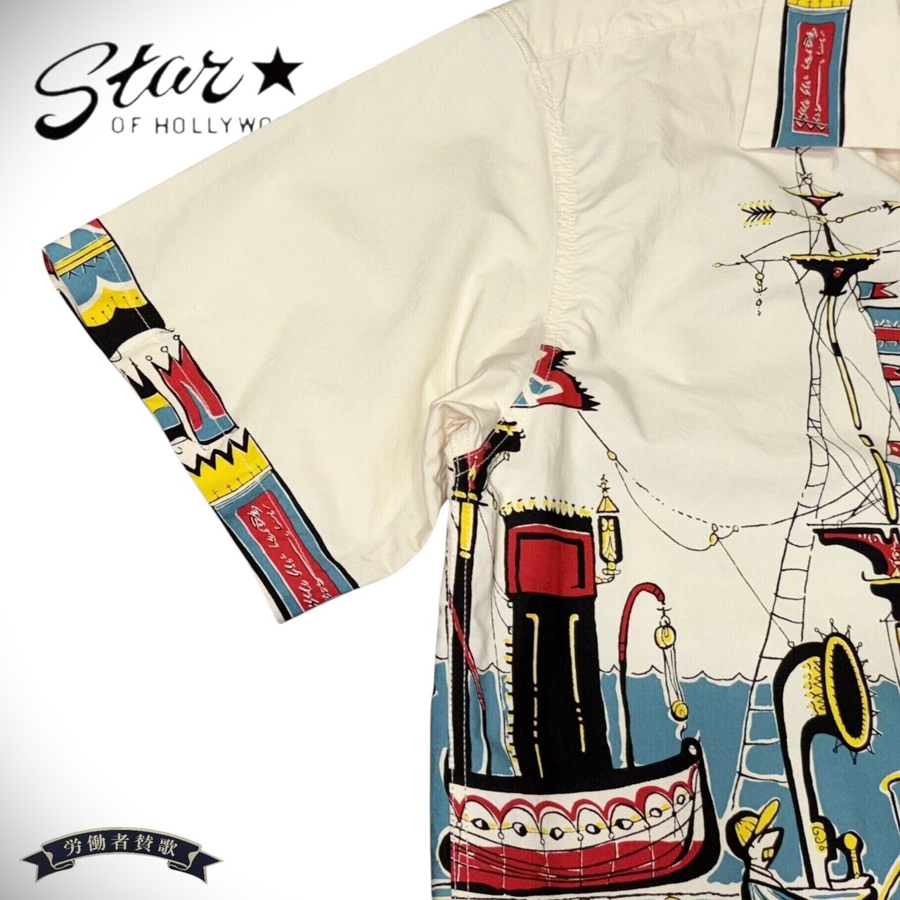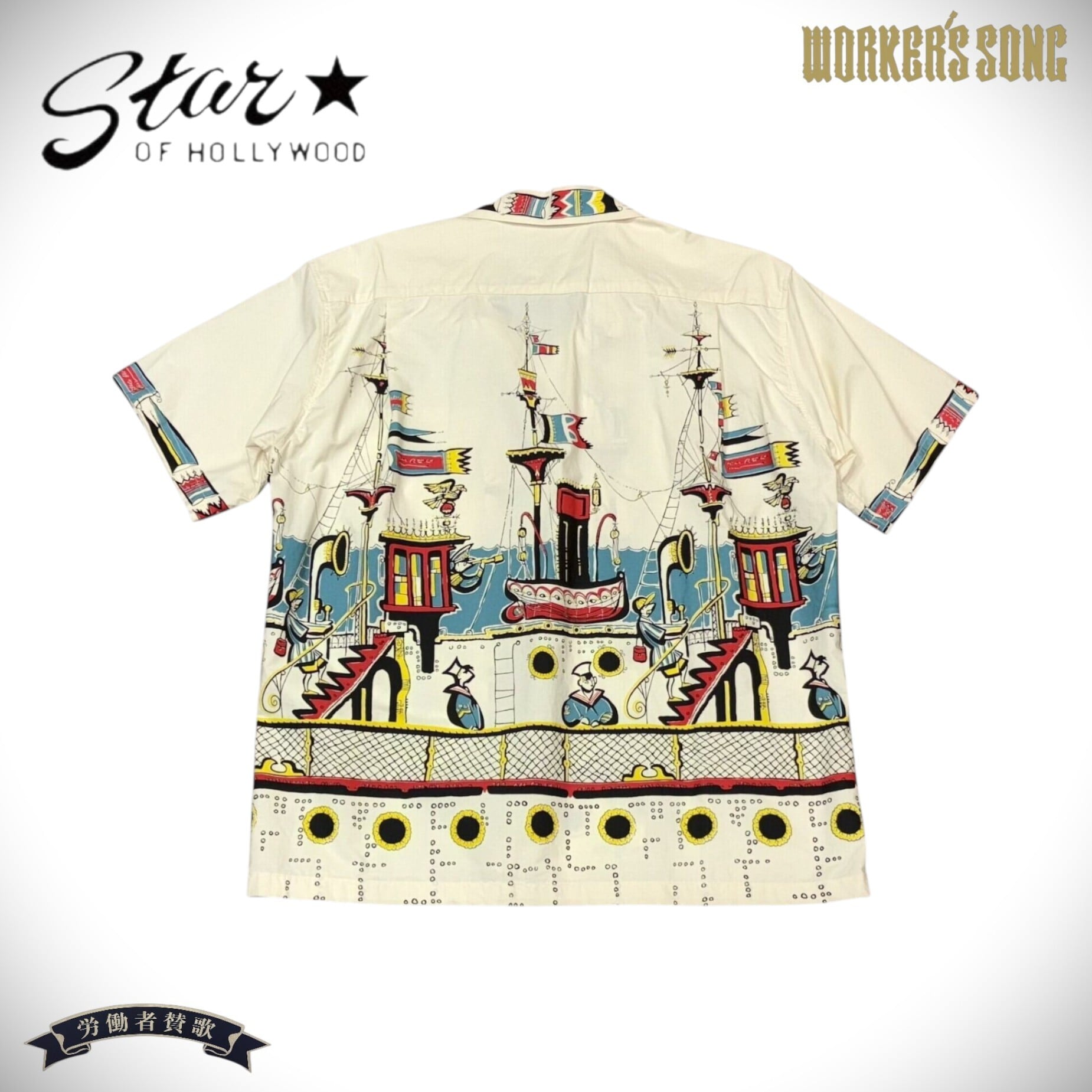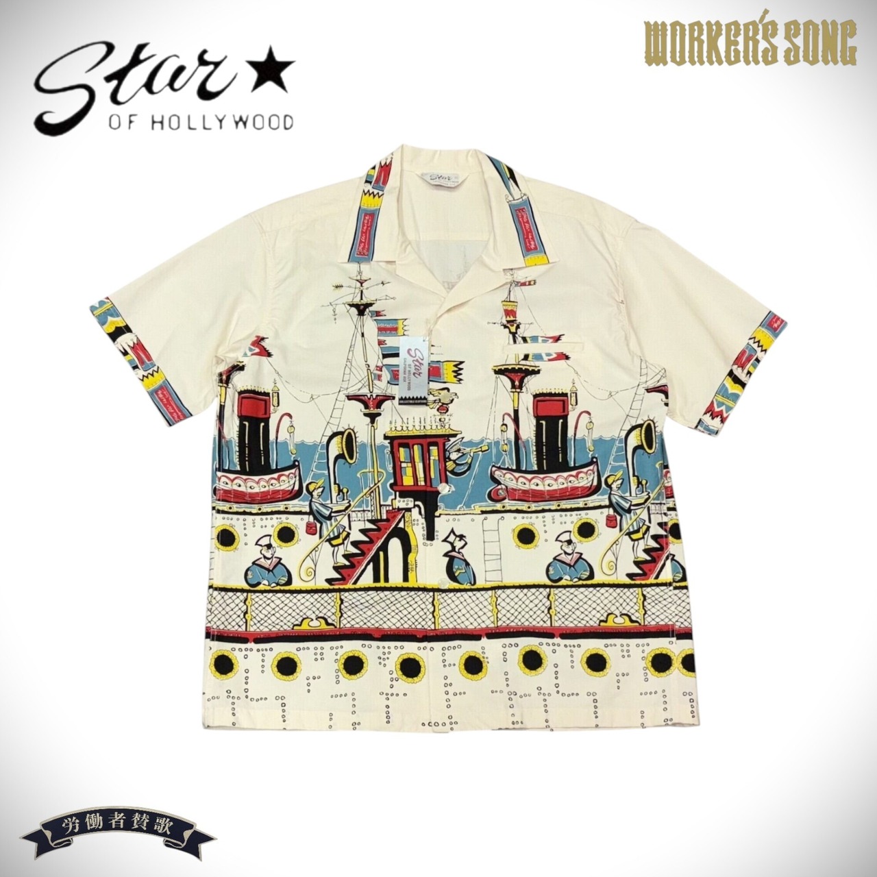 50年代の航海シーンを描いたオフホワイトのオープンシャツ。