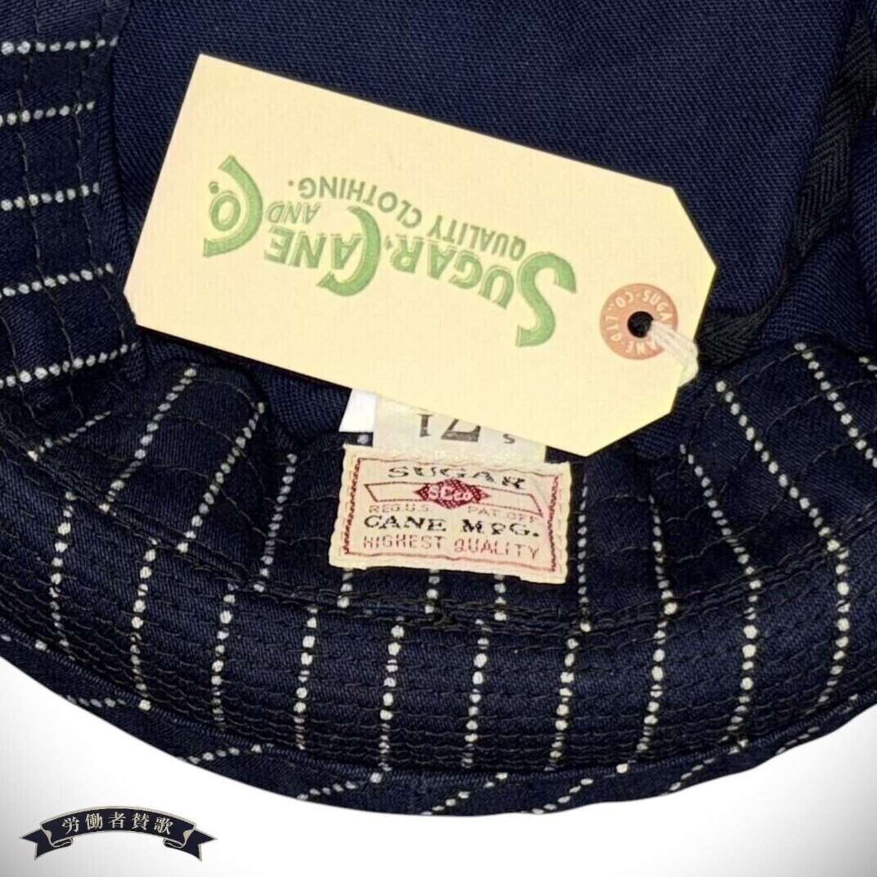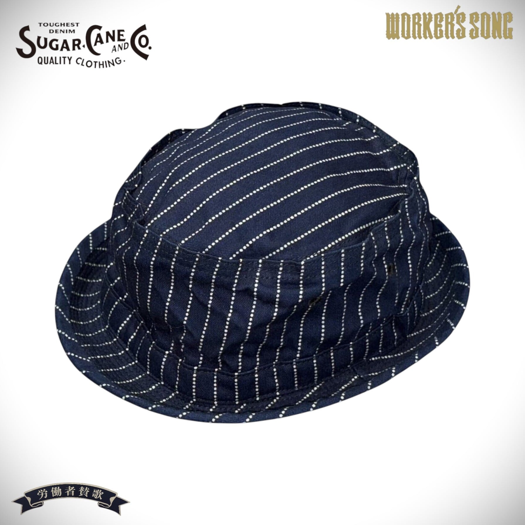 「PORKPIE HAT」とは、その名の通りクラウンの部分が「ポークパイ」のような円筒形でブリムがカールアップしたハット。シュガーケーンのワークウェアと相性の良いウォバッシュストライプ生地で仕立てている。