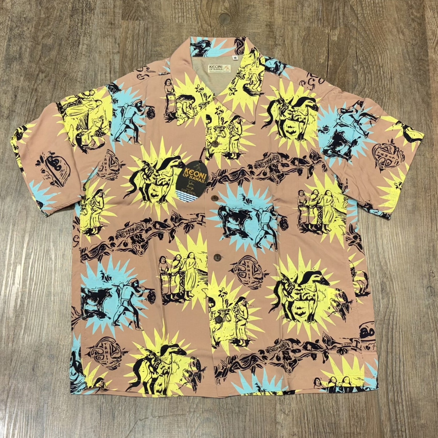 ケオニ オブ ハワイ サンサーフ ゴーギャン ウッドカットIII アロハシャツ アメカジ ハワイアン SS38466 133)ベージュ Mサイズ