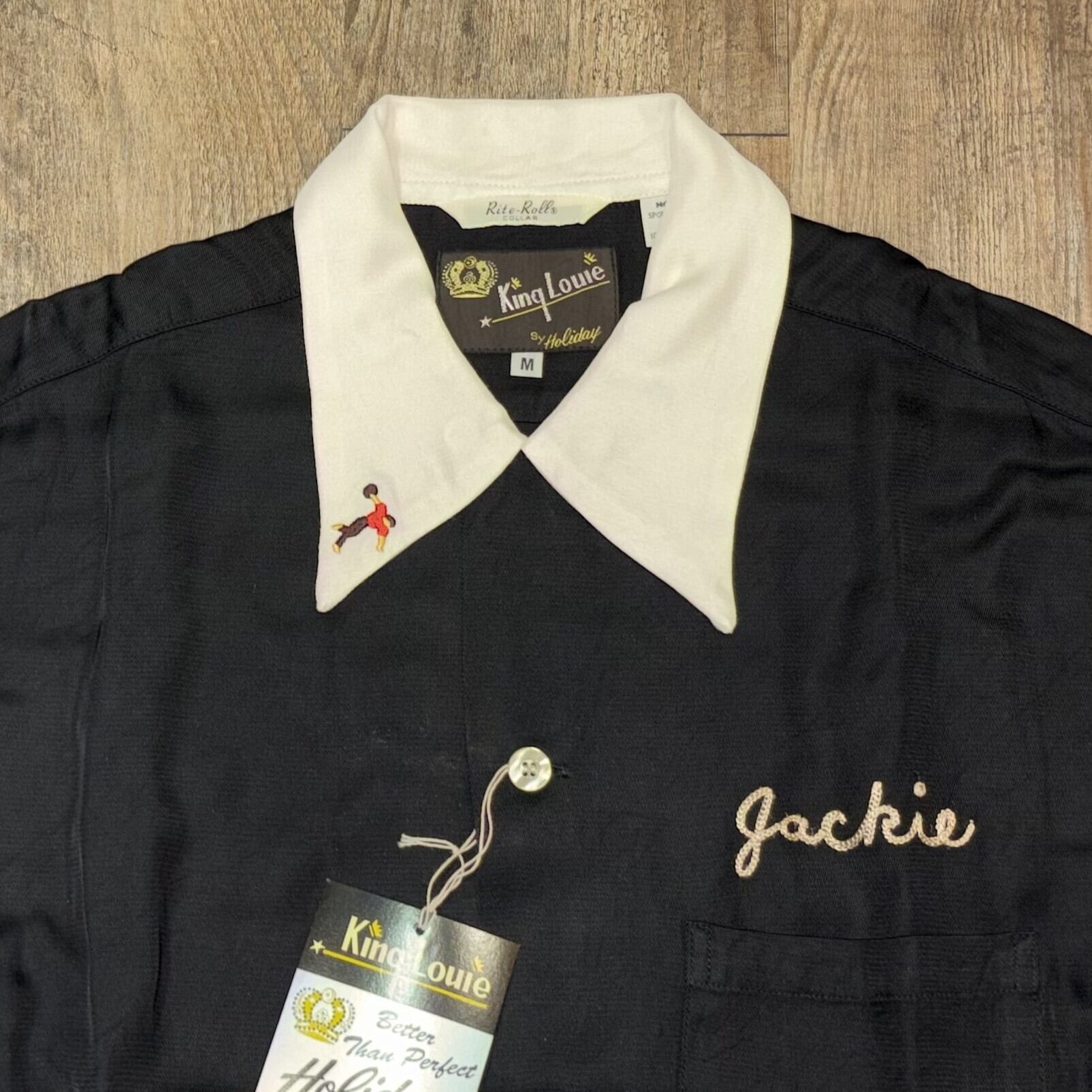 滑らかな生地と存在感のある刺繍が、50年代アメリカのボウリングカルチャーの空気感を現代に再現。