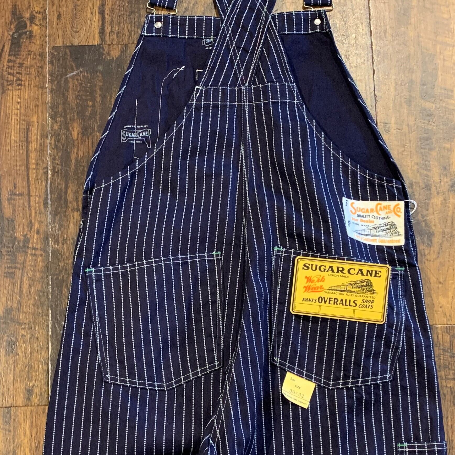 シュガーケーン 9oz.ウォバッシュストライプ オーバーオール SC41960 421)ネイビー