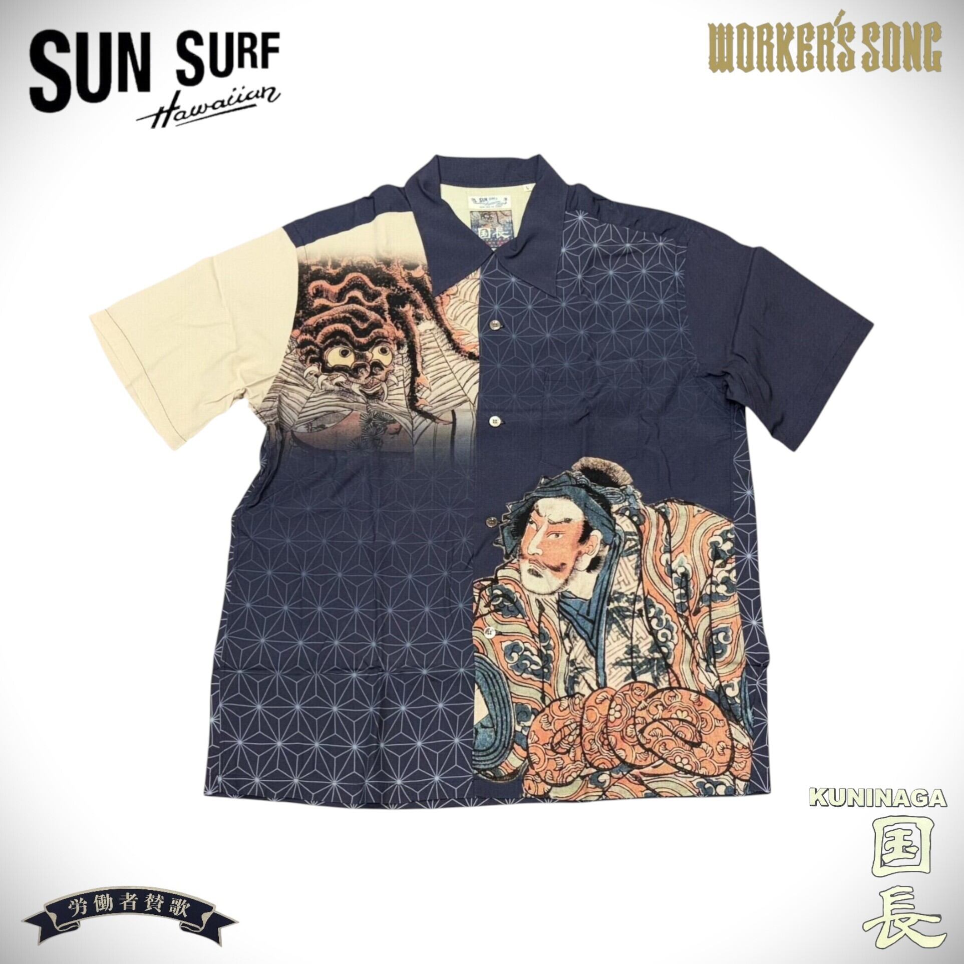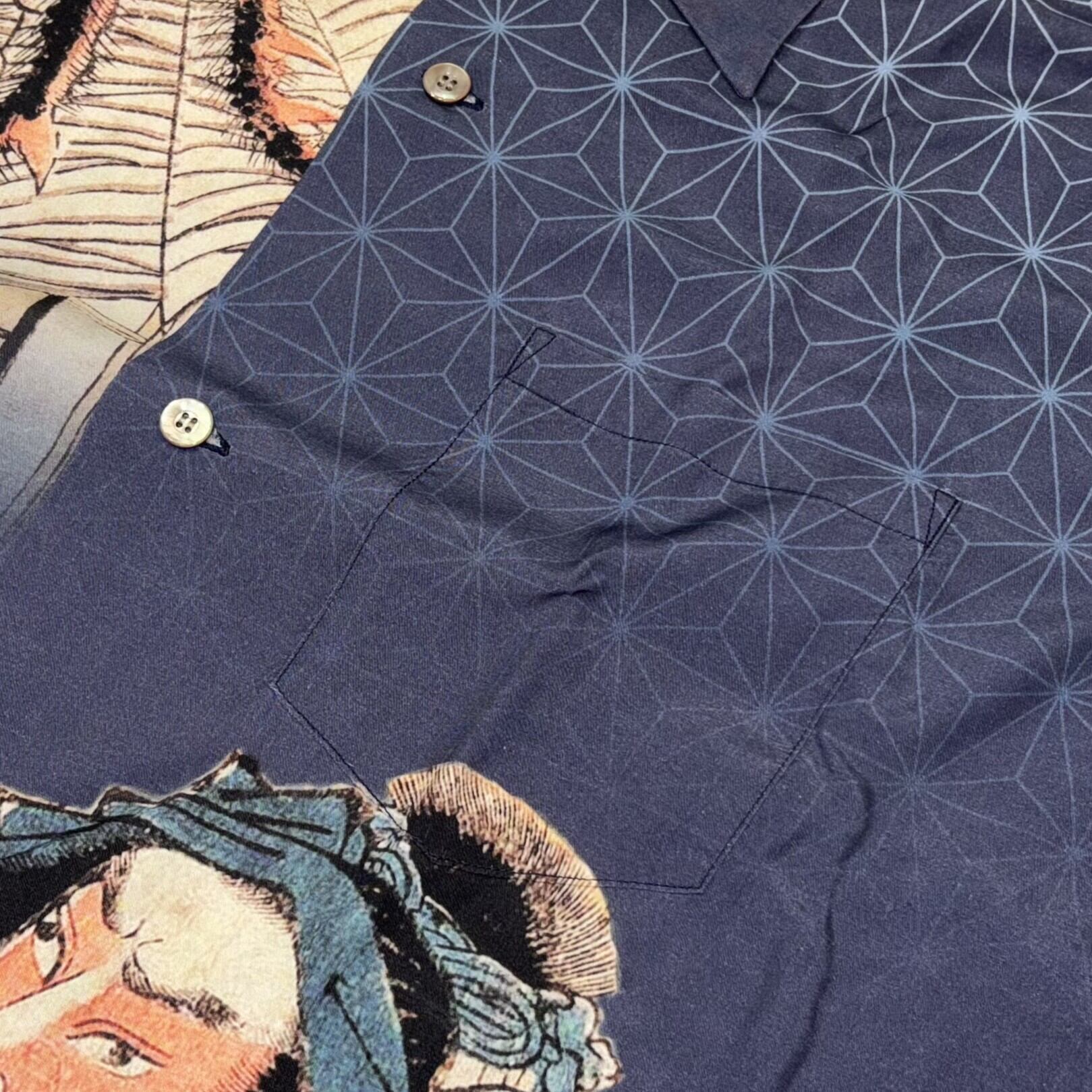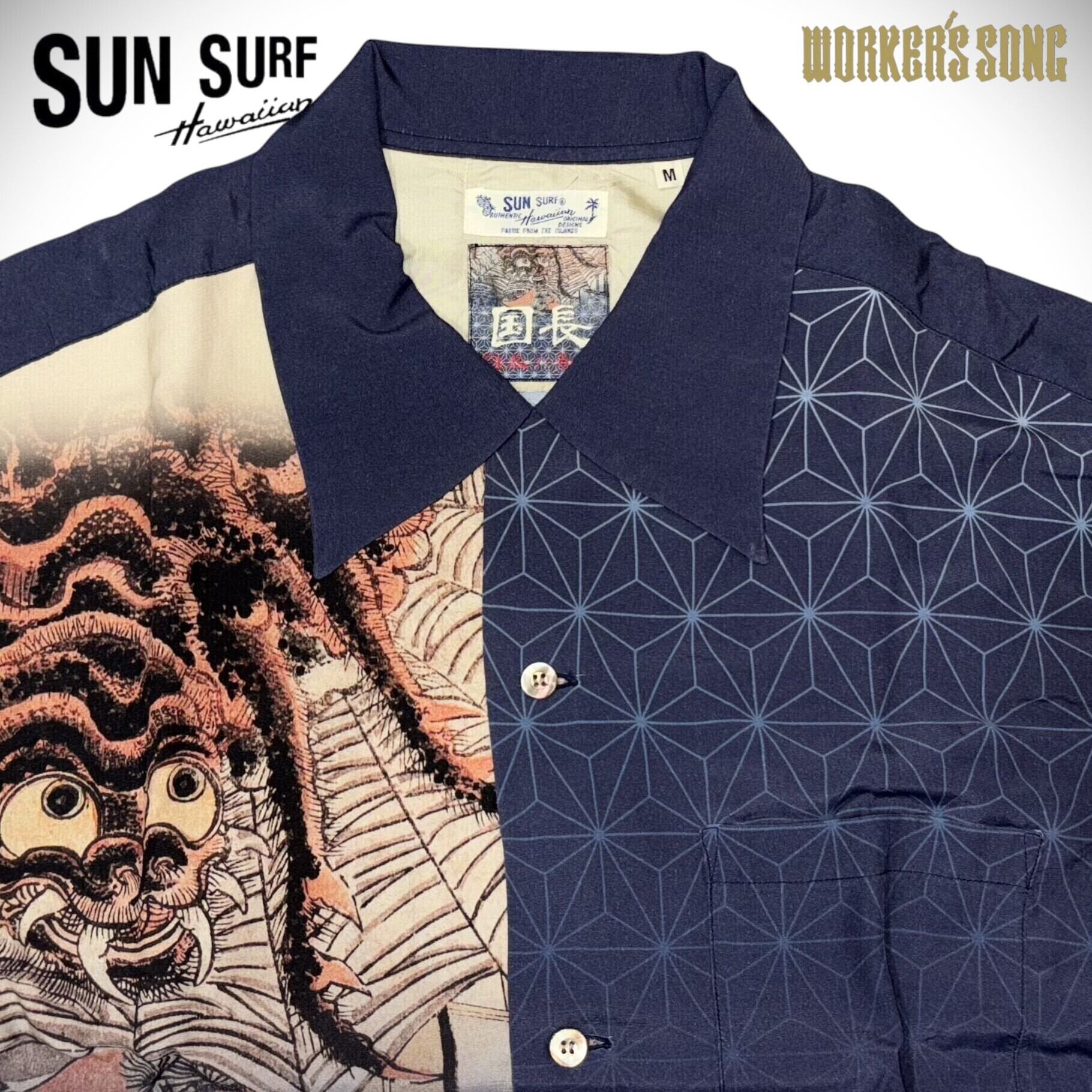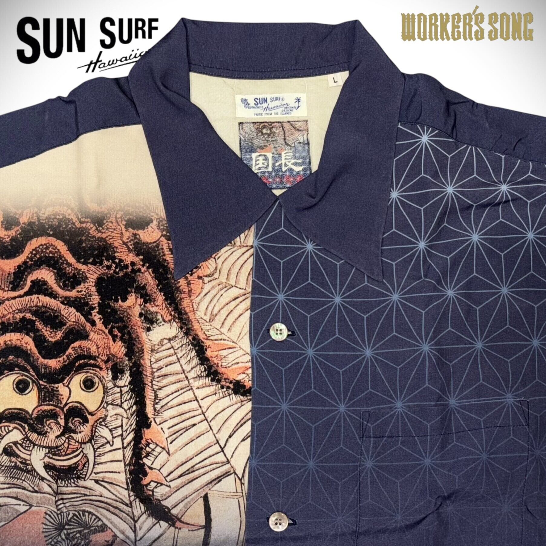 サンサーフ 歌川国長 スペシャル 浮世絵 アロハシャツ 源頼光土蜘蛛退治 アメカジ ハワイアン SS38714 128)ネイビー