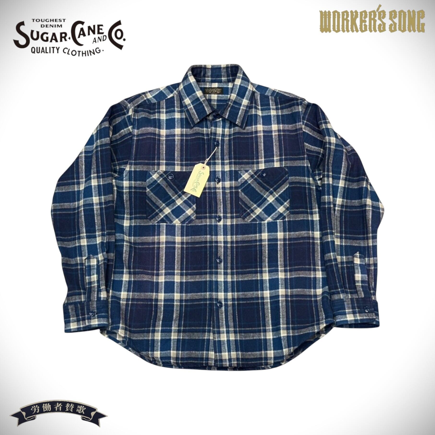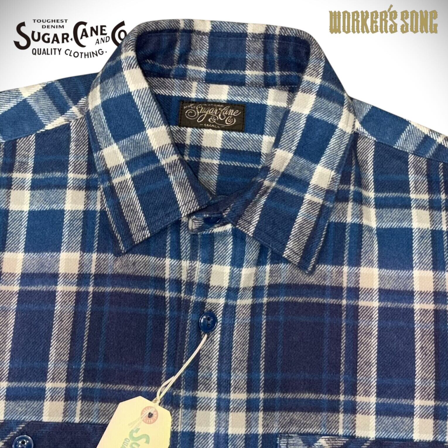 シュガーケーン ヘヴィフランネル チェック ワークシャツ アメカジ ネルシャツ SC28761 125)ブルー Sサイズ