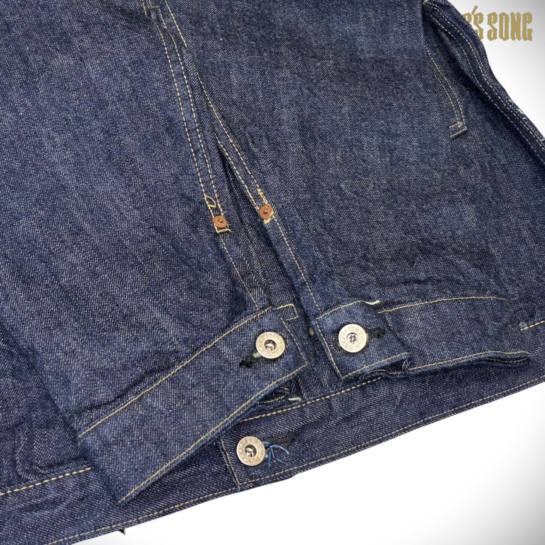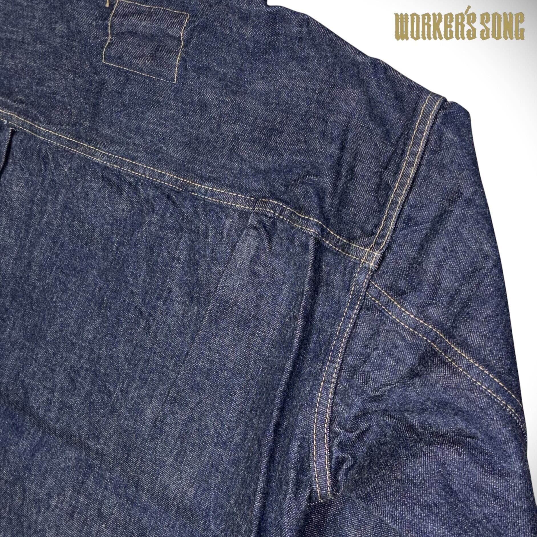 第二次世界大戦の戦時下において物資不足を解消するために統制を受けて誕生したデニムブラウス。それまでのモデルで付いていたポケットフラップは省略され、フロントボタンも5個から4個に変更された。