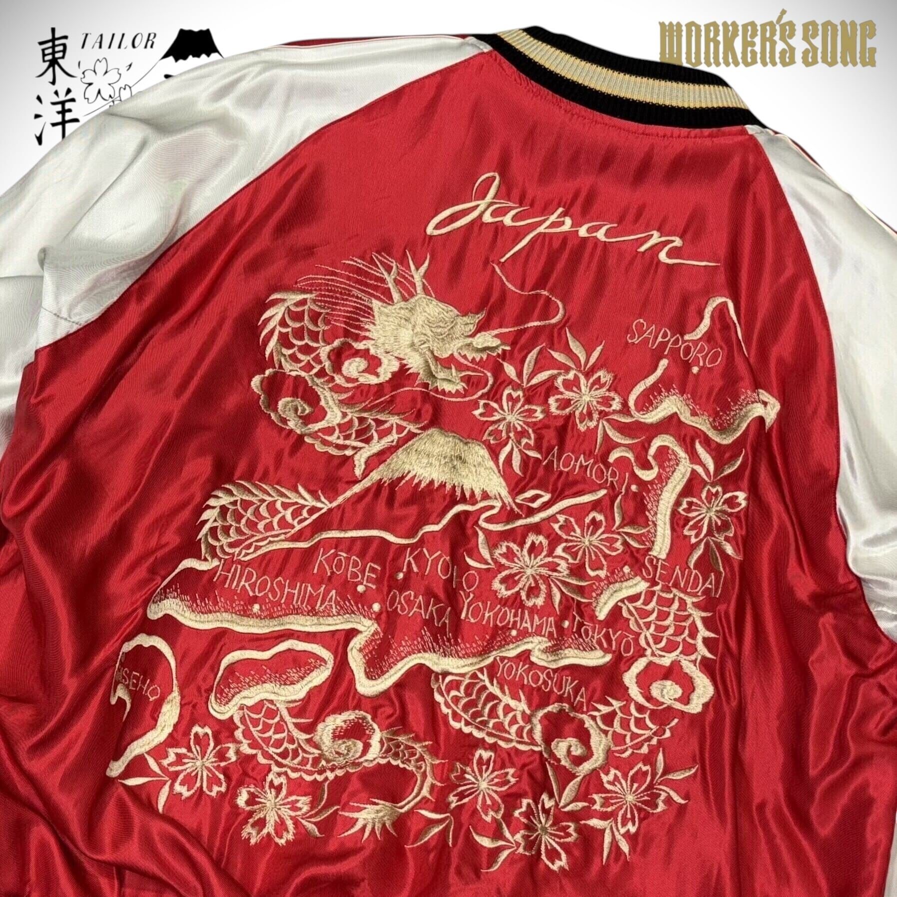 スーベニアジャケット(スカジャン)とは戦後間もない頃、米兵が日本駐留の記念としてオリエンタルな柄(鷲・虎・龍)や所属していた部隊、基地名などを自分たちのジャケットに刺繍したのが始まりである。それらは土産物として商品化され、各地のPX(Post Exchangeの略で米軍基地内の売店の通称)で販売されるようになった。当時、このスーベニアジャケットをはじめとした衣料品を米軍基地へ納入していたのが、テーラー東洋(東洋エンタープライズ)の前身の会社「港商商会」であり、スーベニアジャケットの生産が全盛期となった1950年代には納入シェアの95パーセントを占めるほどであった。港商から始まり半世紀以上スーベニアジャケットを作り続けてきたTAILOR TOYO(テーラー東洋)。一過性のブームではなく、スカジャンを文化として継承し続けているこのブランドこそが、スカジャンのオリジナルである。