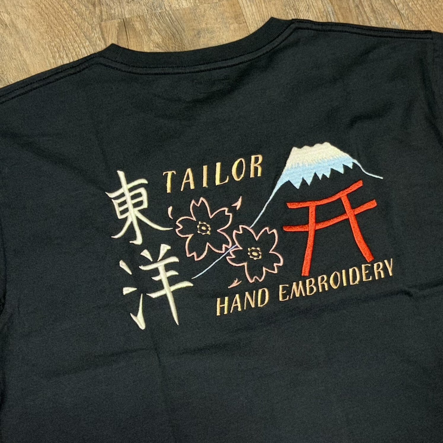 テーラー東洋 ロゴ スカジャン刺繍 Tシャツ アメカジ 富士山 鳥居 TT79213 119)ブラック