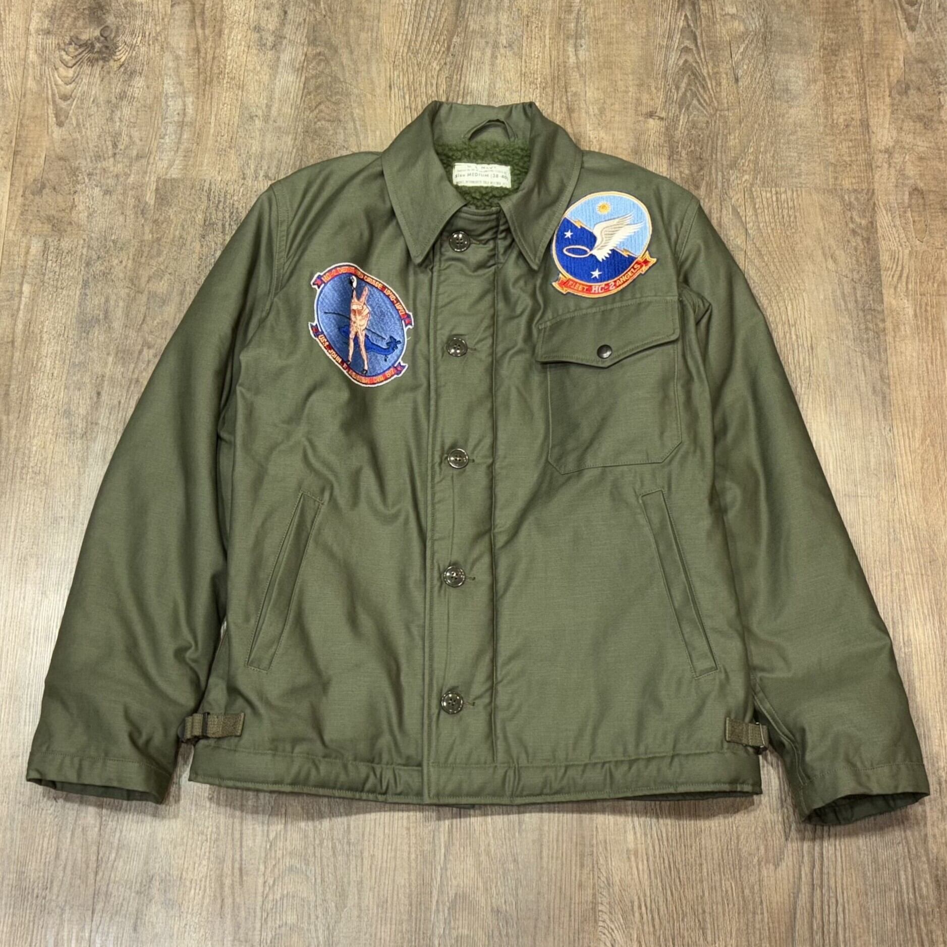 バズリクソンズ A-2 デッキジャケット アメカジ ミリタリー スコードロンパッチ ハンドペイント 軍物 BR15156 01)オリーブドラブ Mサイズ