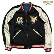 テーラー東洋のコレクションの中でも特に厳選した逸品をディテールにこだわり再現するのが、このスペシャルエディション。横振り刺繍で緻密に描かれた図案はもとより、アセテート生地の打ち込みを調整してヴィンテージと遜色なく仕上げ、ウールリブも旧式の横編み機を使用して1着ずつ編み上げている。リバーシブル仕様のファスナーについても50年以上前のファスニング機械を再稼働させ、当時と同じ手曲げのものを再現。テーラー東洋の前身である港商(こうしょう)商会のラベルを使い、ヴィンテージスカジャンの最盛期を彷彿とさせる仕上がりとなっている。