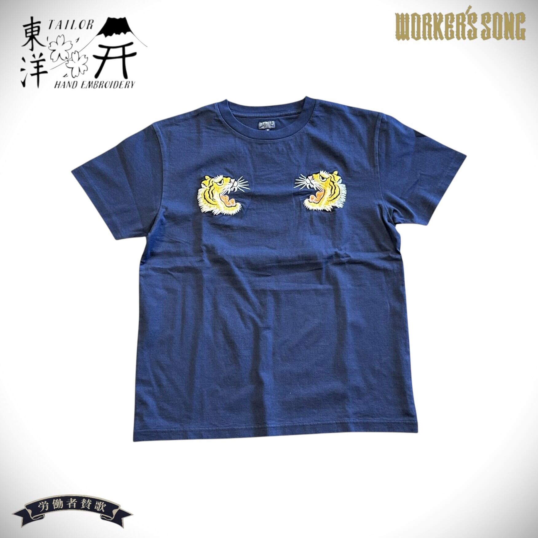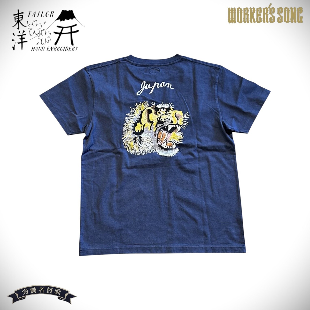 テーラー東洋 スカジャン刺繍 半袖Tシャツ 虎 アメカジ TT79391 128)ネイビー